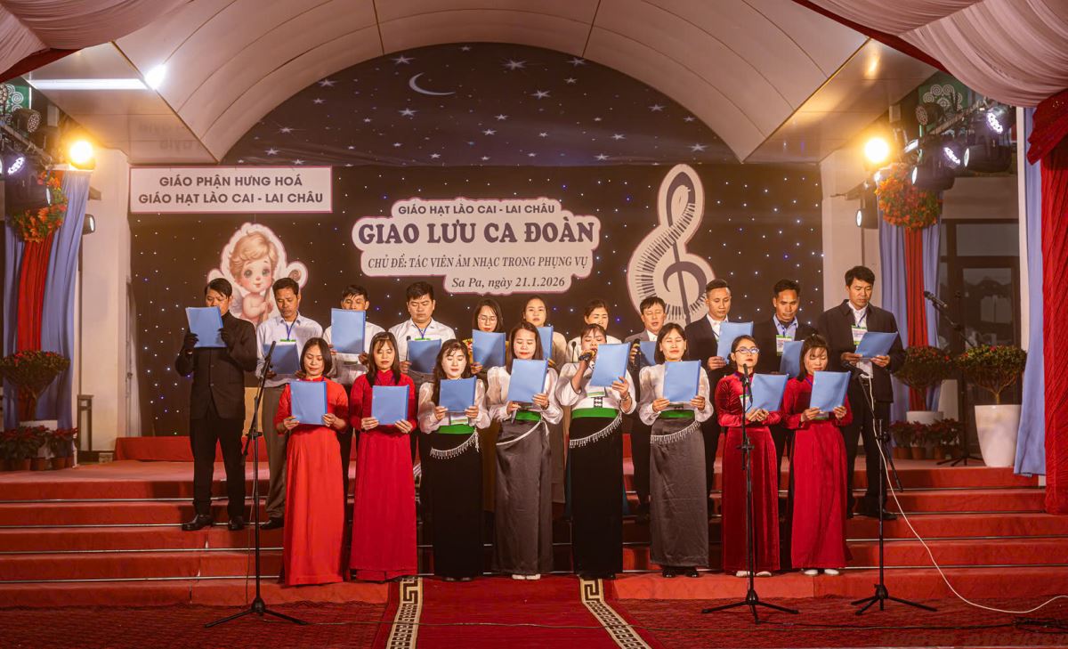 WGPHH - Trong thời tiết se lạnh đặc trưng của vùng núi Tây Bắc, buổi giao lưu ca đoàn Giáo hạt Lào Cai – Lai Châu đã được long trọng tổ chức vào ngày 21/01/2026 tại nhà thờ Sa Pa. Buổi giao lưu ca đoàn hôm nay không chỉ là dịp gặp gỡ, học hỏi về thánh nhạc mà còn là ngày hội ngộ của tình hiệp thông, yêu thương và phục vụ trong đời sống phụng vụ của Giáo Hội.