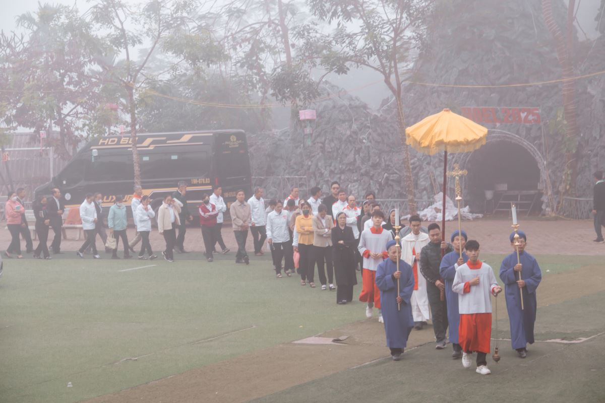 Ngay từ sáng sớm, các đoàn xe từ nhiều địa phương đã lần lượt tập trung tại Nhà thờ Yên Tập mang theo tinh thần hân hoan và hy vọng để đúng 8 giờ, cộng đoàn tụ họp trước sảnh nhà giáo lý tham dự nghi thức khởi sự hành hương do Cha Tôma Aquinô Trần Văn Miền chủ sự.