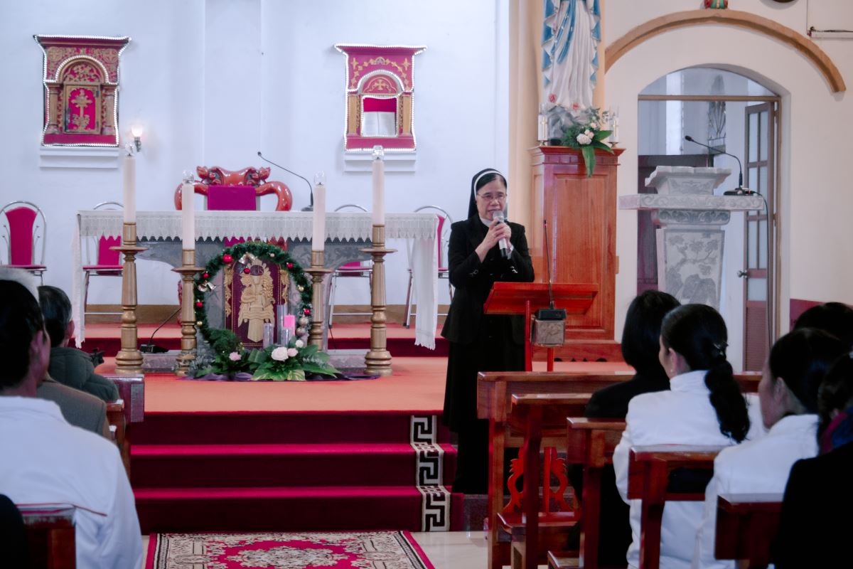 Dì Têrêsa Đỗ Thị Hồng Hải hướng dẫn cộng đoàn tĩnh tâm, xét mình |