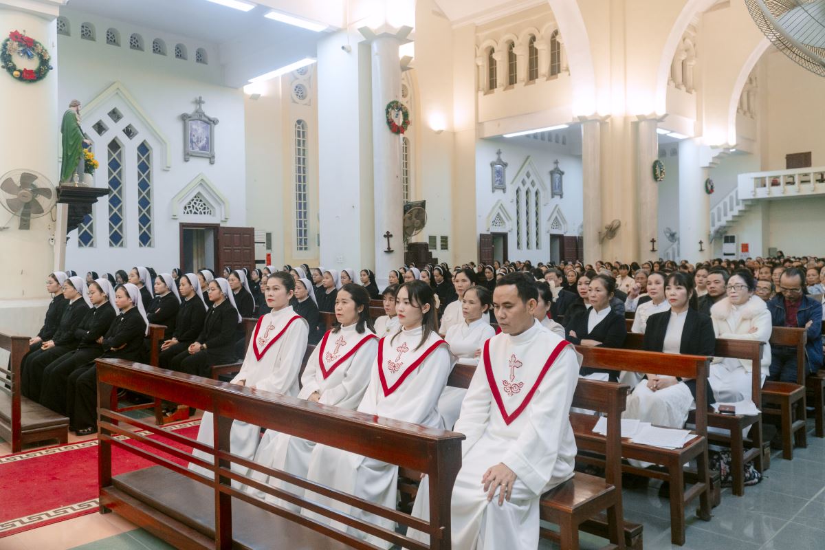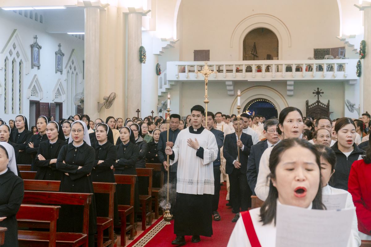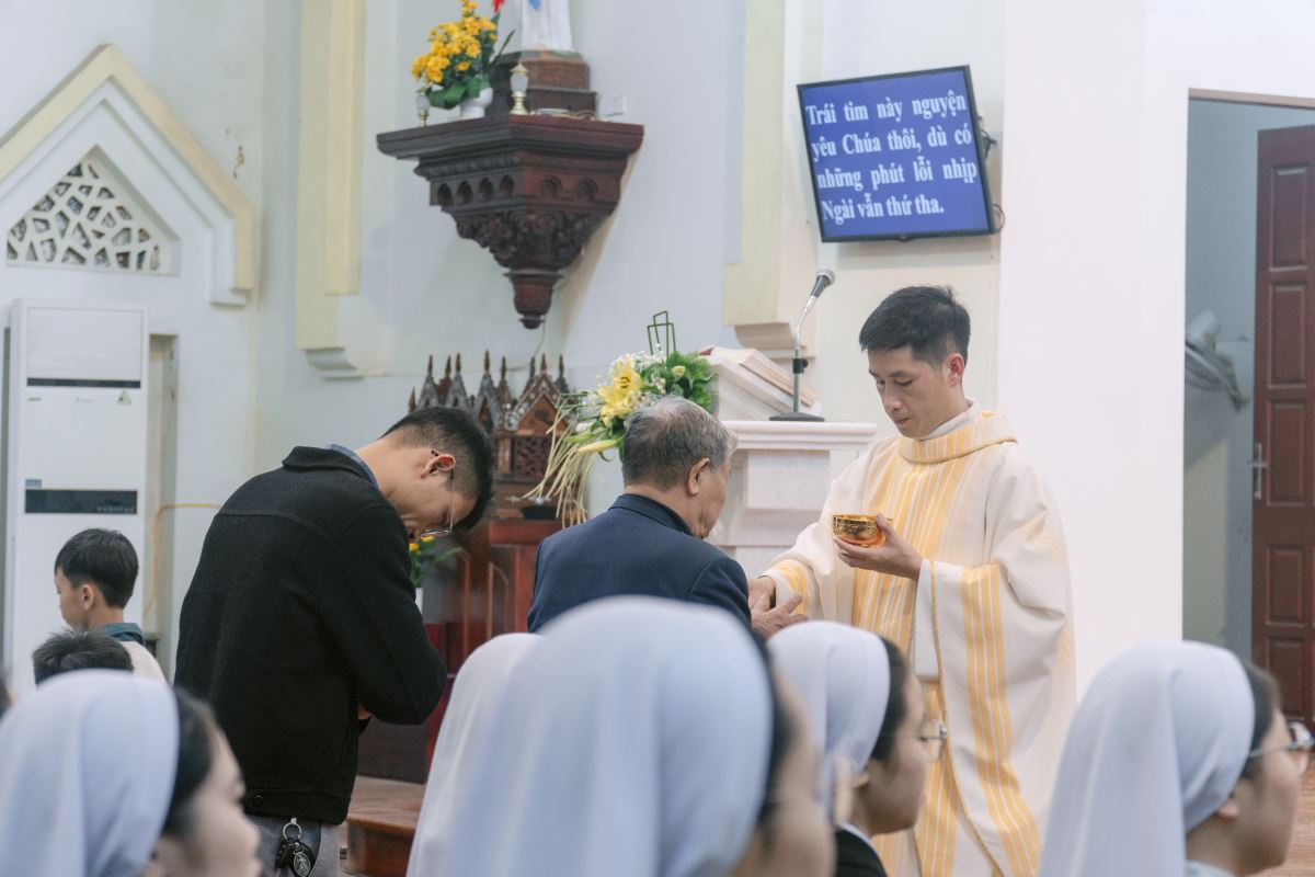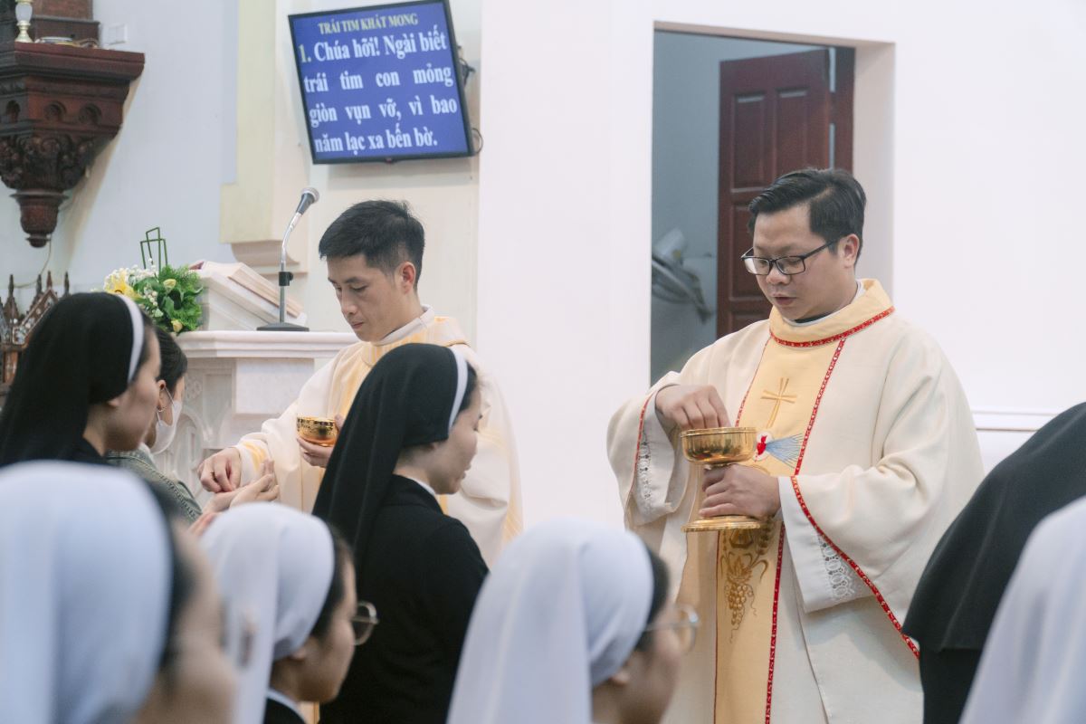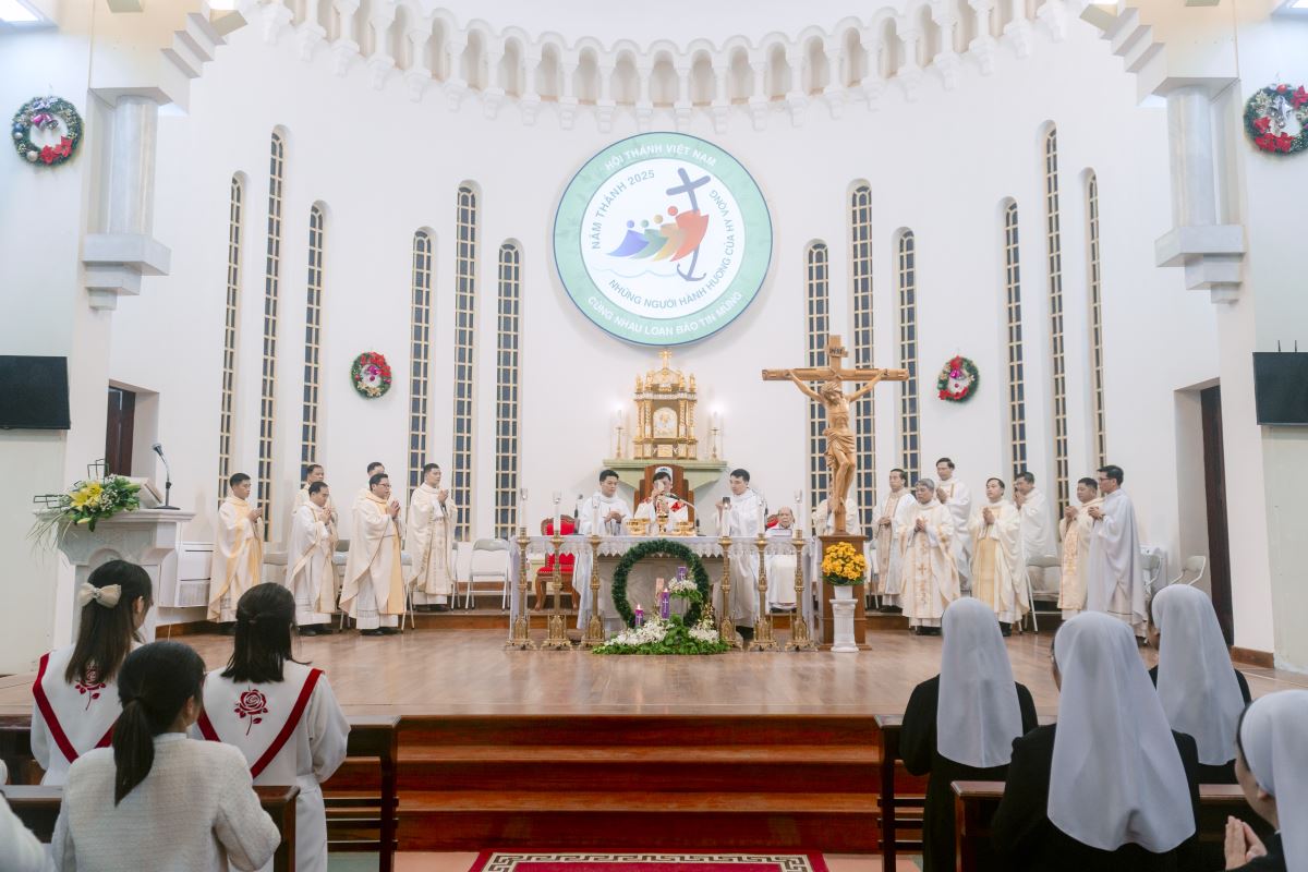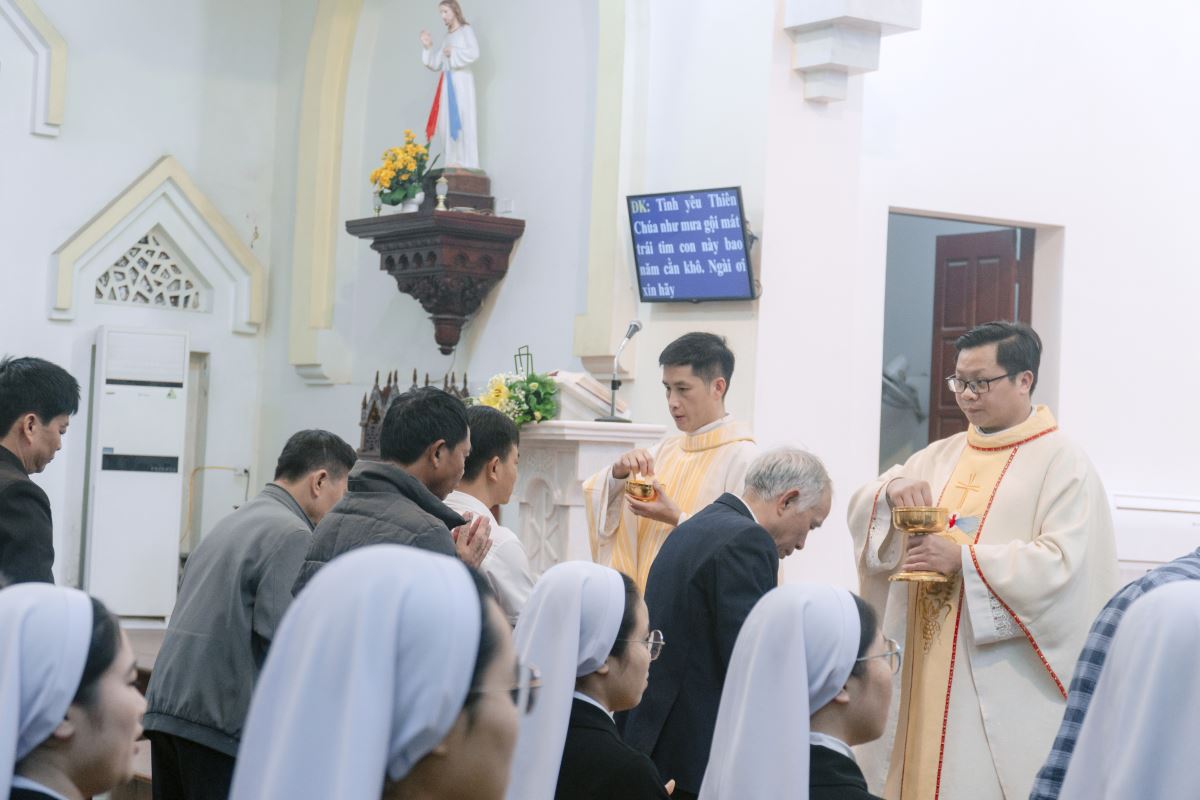 Thánh lễ do Đức cha Phaolô Nguyễn Quang Đĩnh – Giám mục Phụ tá Giáo phận chủ tế. Đồng tế với ngài có Đức cha Gioan Maria Vũ Tất – nguyên Giám mục Giáo phận, quý cha trong linh mục đoàn, cùng sự hiện diện của quý thầy, quý dì và cộng đoàn dân Chúa.