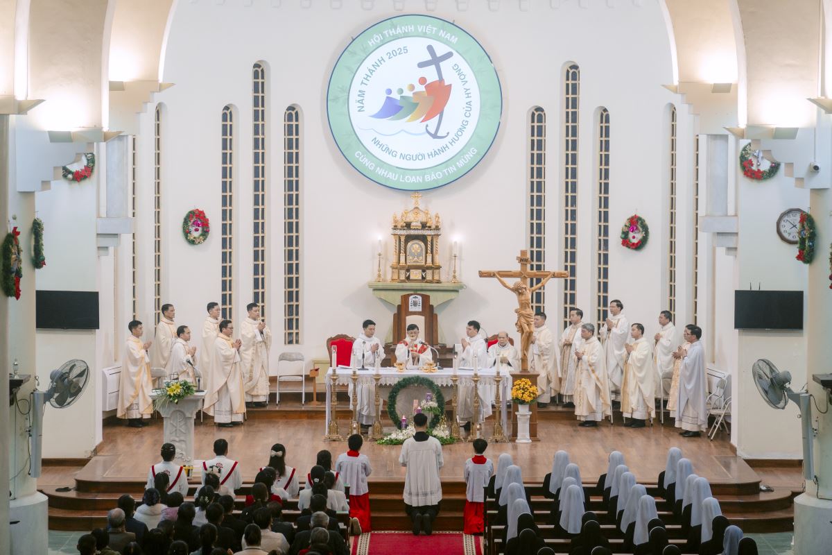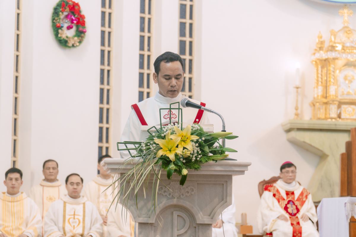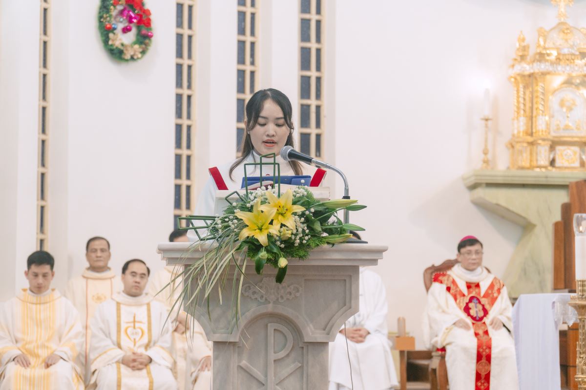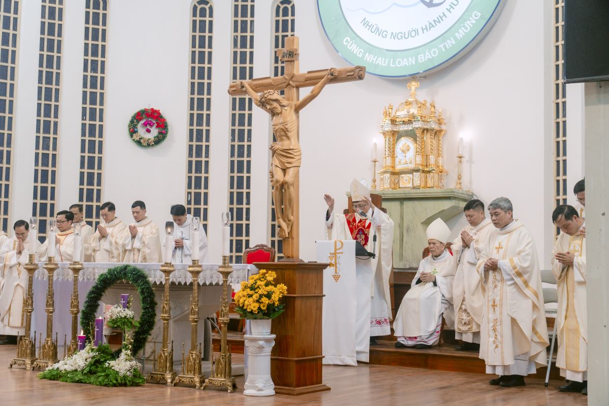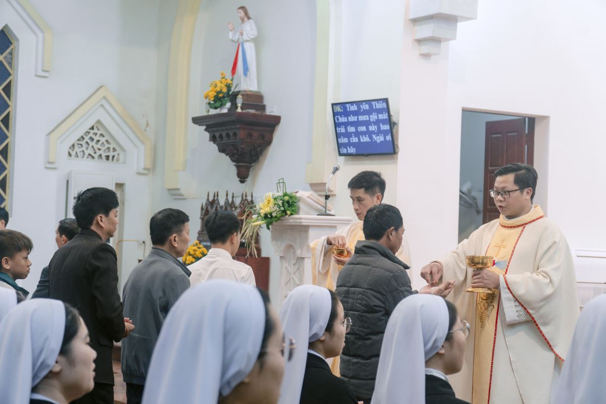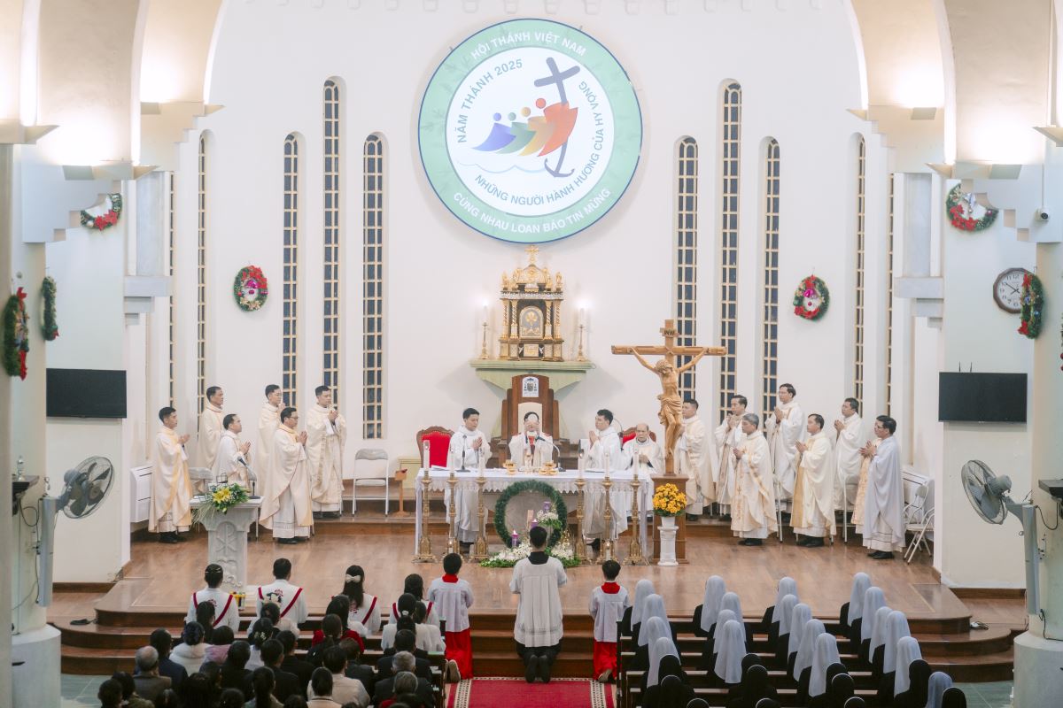 Thánh lễ do Đức cha Phaolô Nguyễn Quang Đĩnh – Giám mục Phụ tá Giáo phận chủ tế. Đồng tế với ngài có Đức cha Gioan Maria Vũ Tất – nguyên Giám mục Giáo phận, quý cha trong linh mục đoàn, cùng sự hiện diện của quý thầy, quý dì và cộng đoàn dân Chúa.