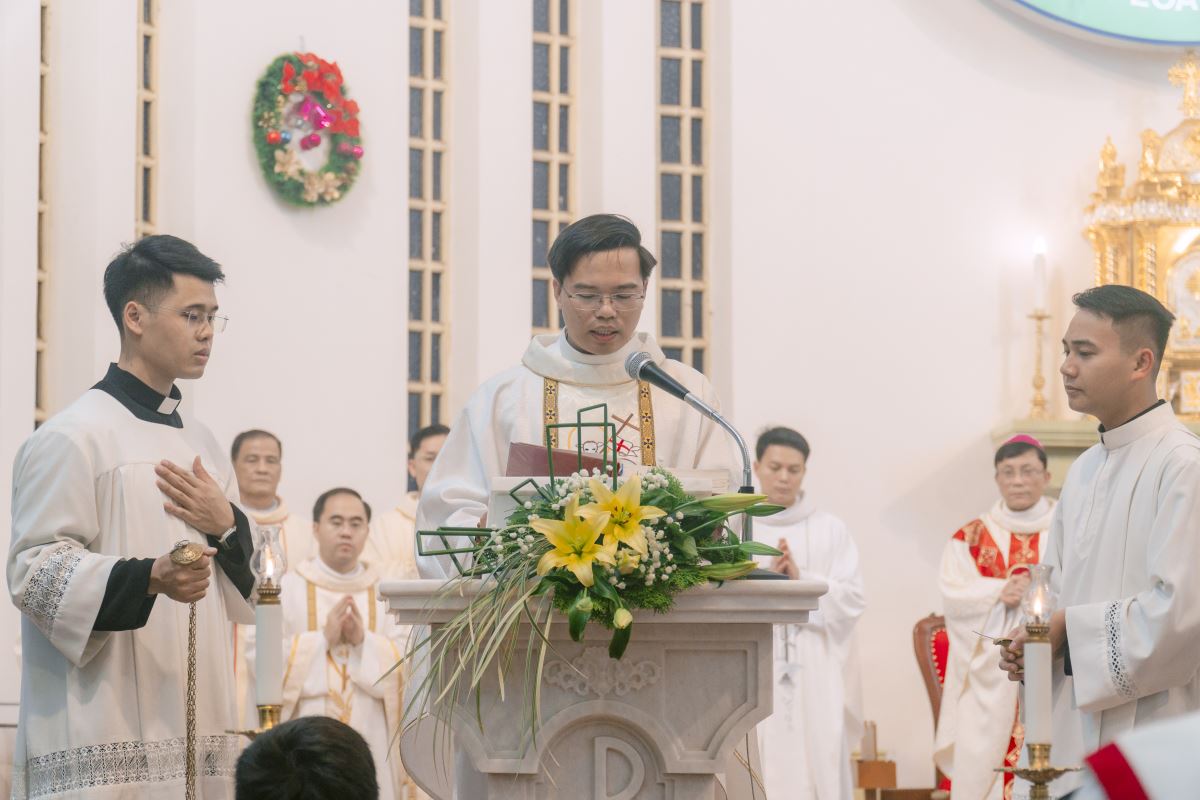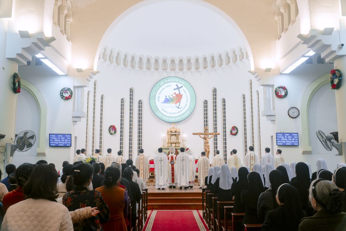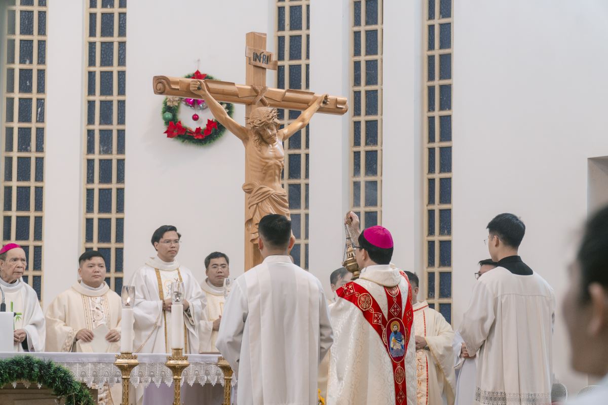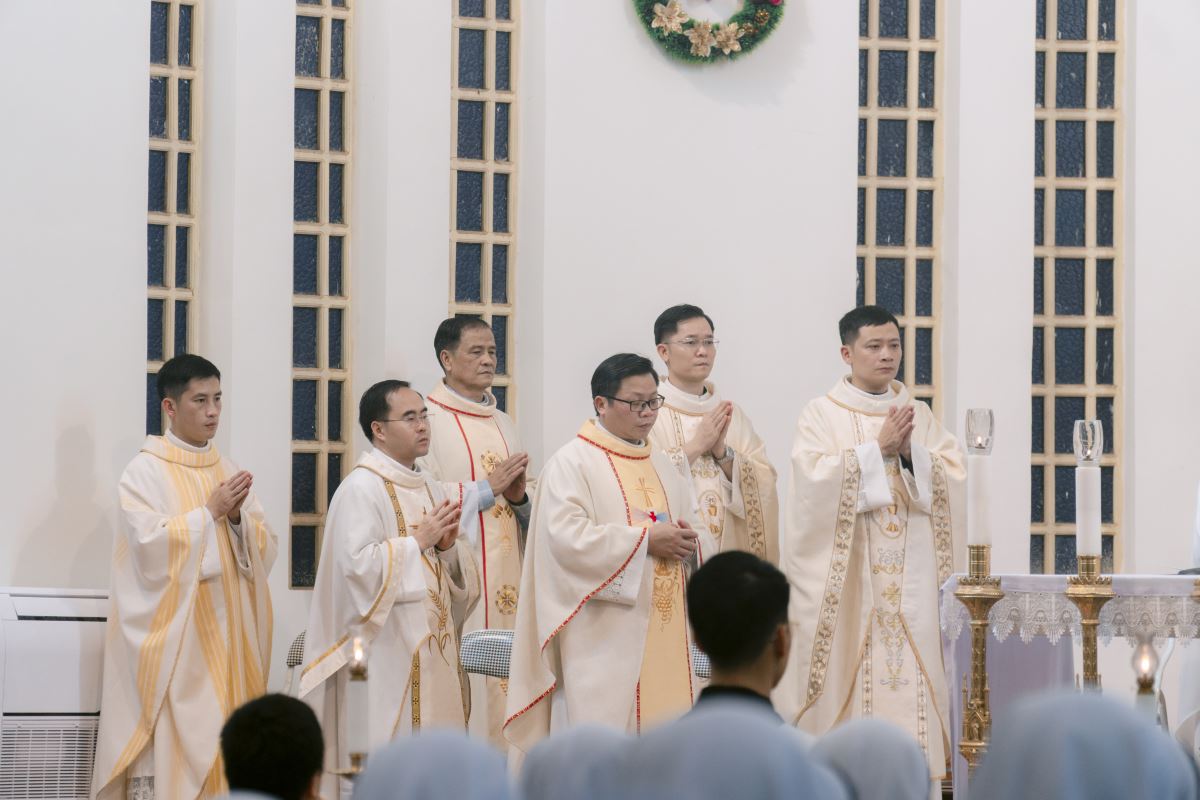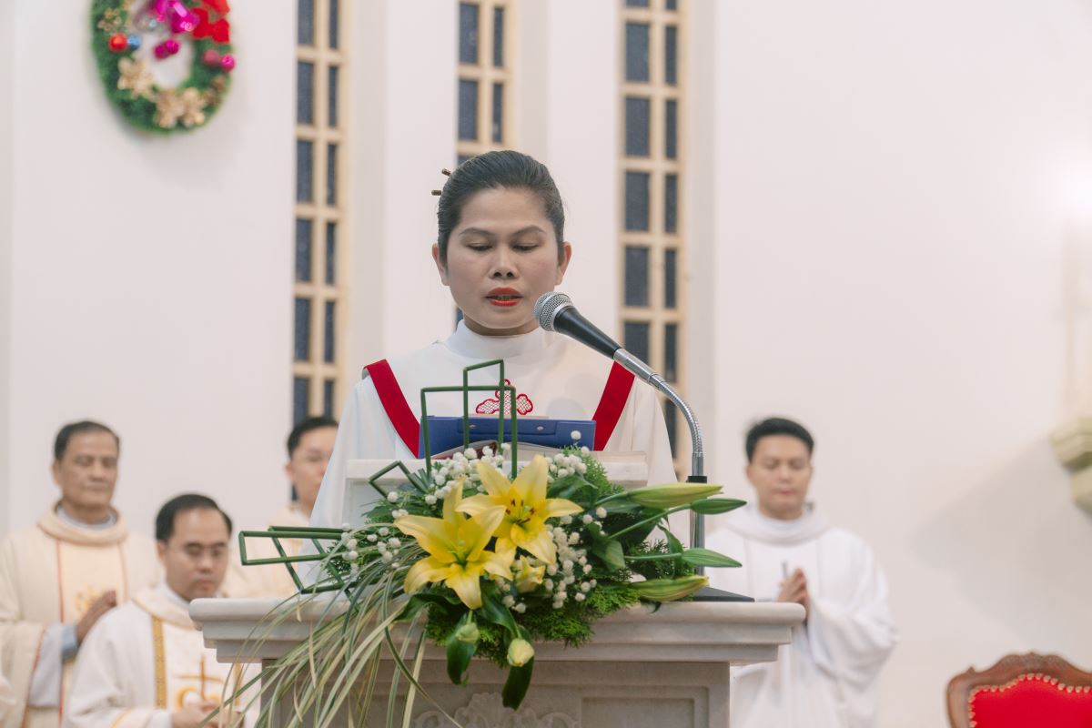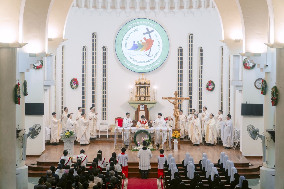 Thánh lễ do Đức cha Phaolô Nguyễn Quang Đĩnh – Giám mục Phụ tá Giáo phận chủ tế. Đồng tế với ngài có Đức cha Gioan Maria Vũ Tất – nguyên Giám mục Giáo phận, quý cha trong linh mục đoàn, cùng sự hiện diện của quý thầy, quý dì và cộng đoàn dân Chúa.