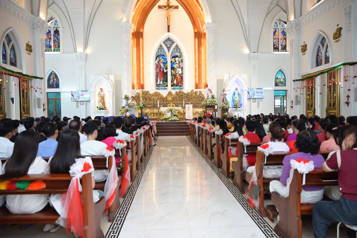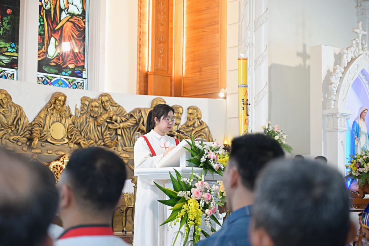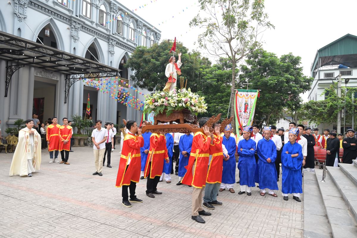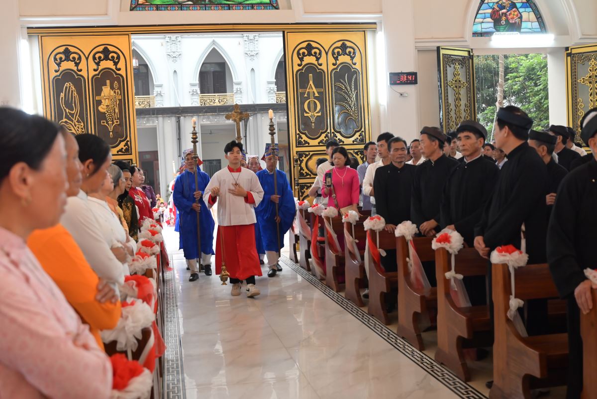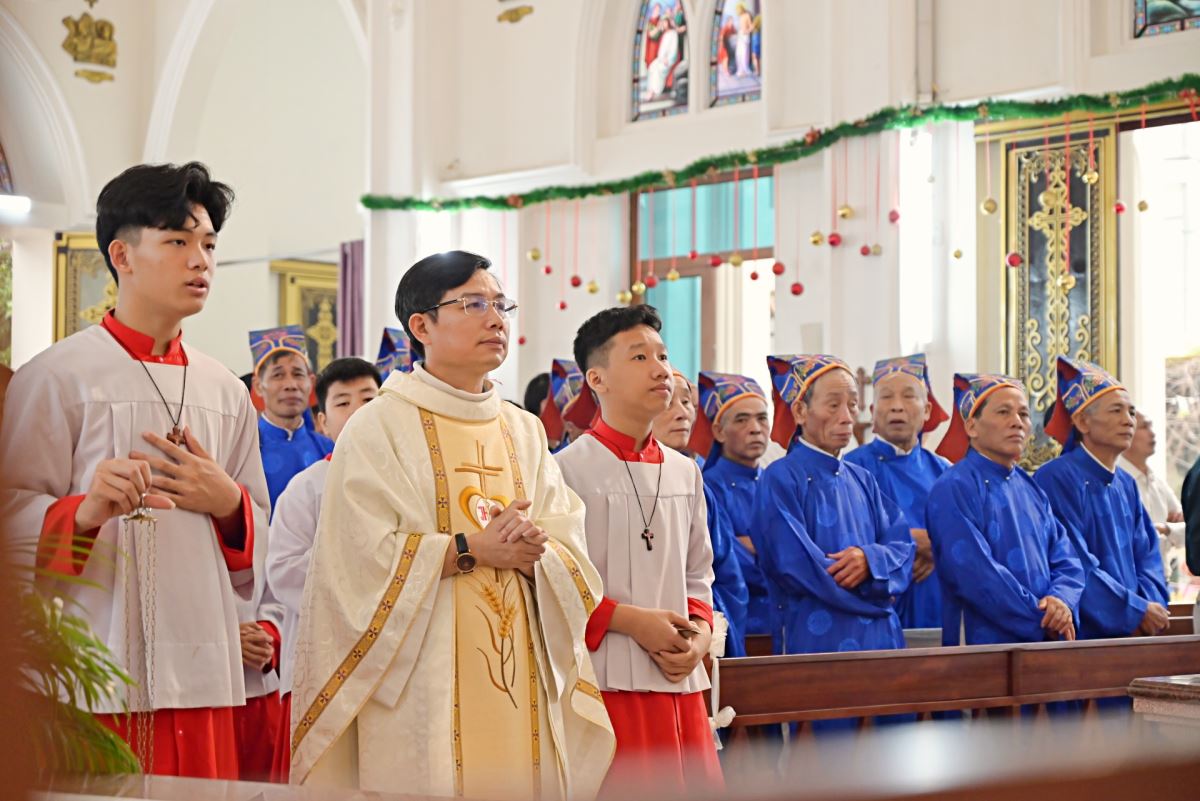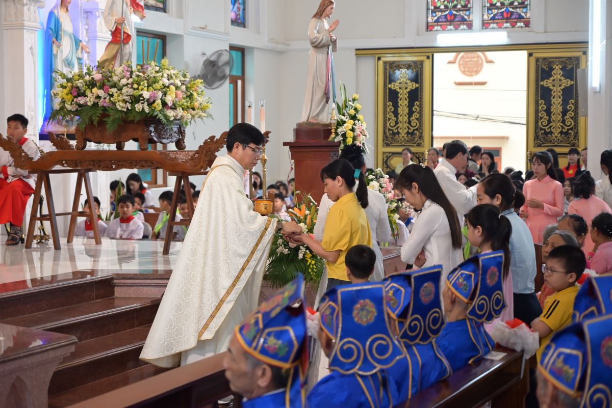 Sau cuộc rước là Thánh lễ mừng Chúa Phục Sinh. Mở đầu Thánh lễ cha Giuse Nguyễn Minh Hoàng, OP gửi lời chúc mừng Chúa Phục Sinh đến toàn thể cộng đoàn. Tiếp đến cha Giuse làm phép và rẩy nước phép lên cộng đoàn.