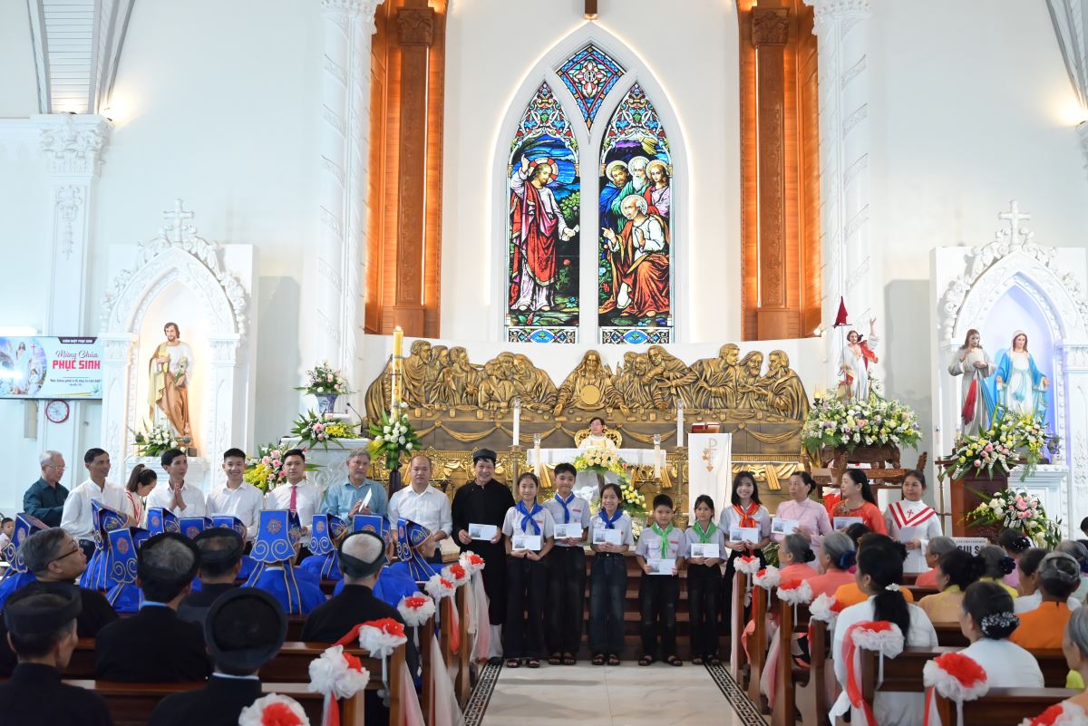WGPHH - Sáng Chúa Nhật Phục Sinh, ngày 05.4.2026, tại giáo xứ Cát Ngòi, cha Giuse Nguyễn Minh Hoàng, OP (Dòng Đaminh) đã chủ sự cuộc rước Chúa Phục Sinh xung quanh ao làng Cát Ngòi và long trọng cử hành Thánh lễ mừng Chúa Phục Sinh, trao quà cho lớp, các cá nhân đạt thành tích cao trong kỳ thi kinh nguyện, giáo lý mùa Chay năm 2026.