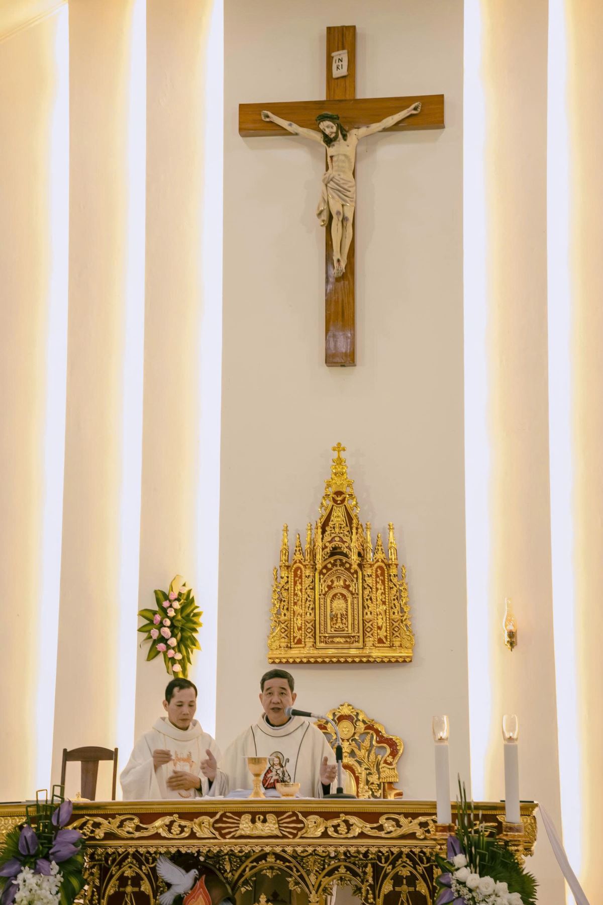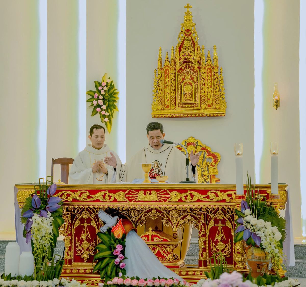 Thánh Lễ được cử hành lúc 15g30 trong bầu khí trang nghiêm và sốt sắng. Đồng tế với Đức Cha có Cha xứ Giuse.