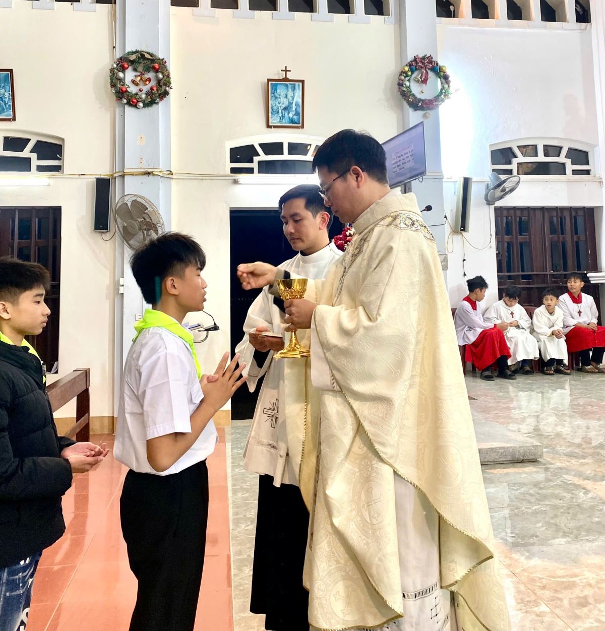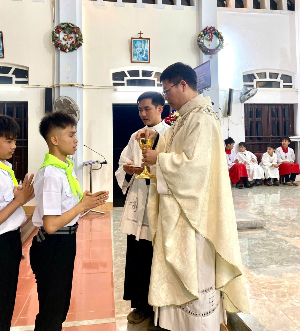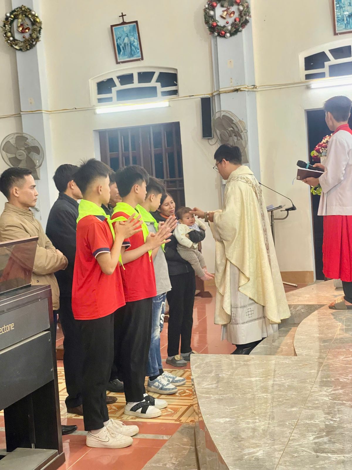 Lãnh nhận hồng ân trong ngày hôm nay, có ba em lớn và một em nhỏ. Trải qua một hành trình dài tham gia sinh hoạt giáo lý, siêng năng tham dự Thánh lễ và sống đời sống đức tin, các em đã từng bước được biến đổi, ngày càng trở nên những thiếu nhi ngoan hiền, biết yêu mến Thiên Chúa và cộng đoàn. Chính ngôi nhà của Chúa là nơi ươm mầm và nuôi dưỡng những hạt giống đức tin tốt lành, để từ đó cha mẹ các em xác tín rằng đây thực sự là một môi trường lành mạnh và thánh thiện, giúp con em mình được lớn lên và phát triển toàn diện. Nhận ra ơn Chúa tuôn đổ trên gia đình và đặc biệt nơi các em, cha mẹ các em đã cho phép các em được chính thức gia nhập Hội Thánh Công Giáo.