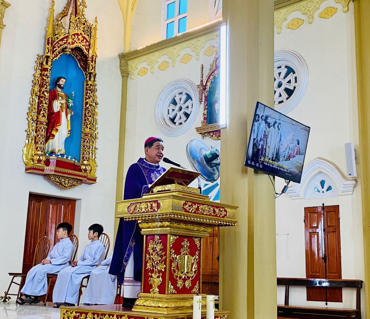 Từ đó, Đức cha dẫn cộng đoàn đến với Tin Mừng Chúa Nhật IV Mùa Chay về người mù bẩm sinh được Chúa Giêsu chữa lành. Nhờ vâng lời Chúa, người mù không chỉ được sáng mắt thể xác mà còn nhận ra Đức Giêsu là Đấng đến từ Thiên Chúa. Qua đó, Đức cha mời gọi mỗi người trong Mùa Chay biết nhìn lại chính mình, khiêm tốn nhận ra những giới hạn và yếu đuối của bản thân, để chạy đến với Chúa qua lời cầu nguyện, các bí tích và Thánh lễ. Chỉ khi sống theo ý Chúa, đôi mắt tâm hồn chúng ta mới thực sự được mở ra để nhận biết điều thiện và tránh xa điều xấu.