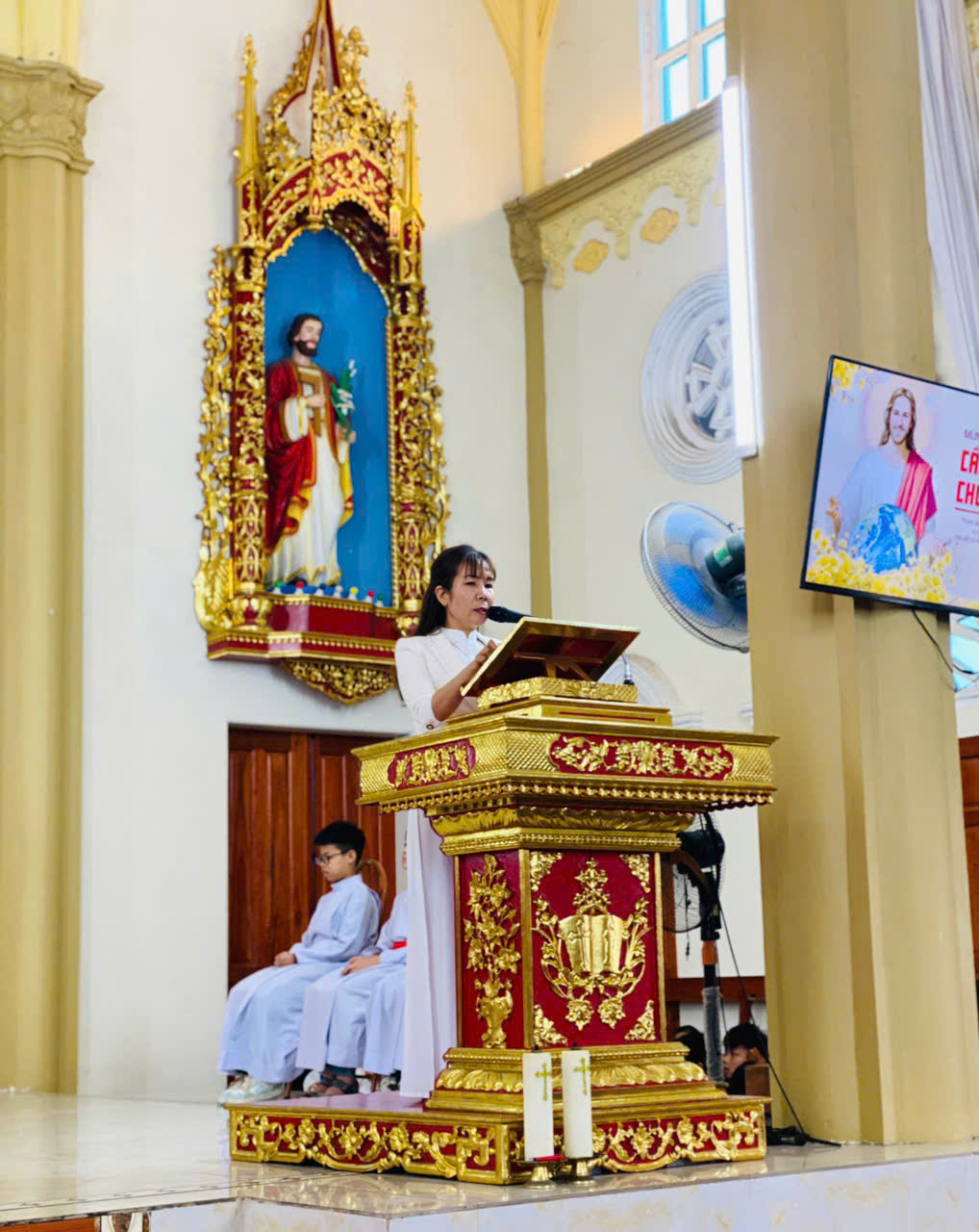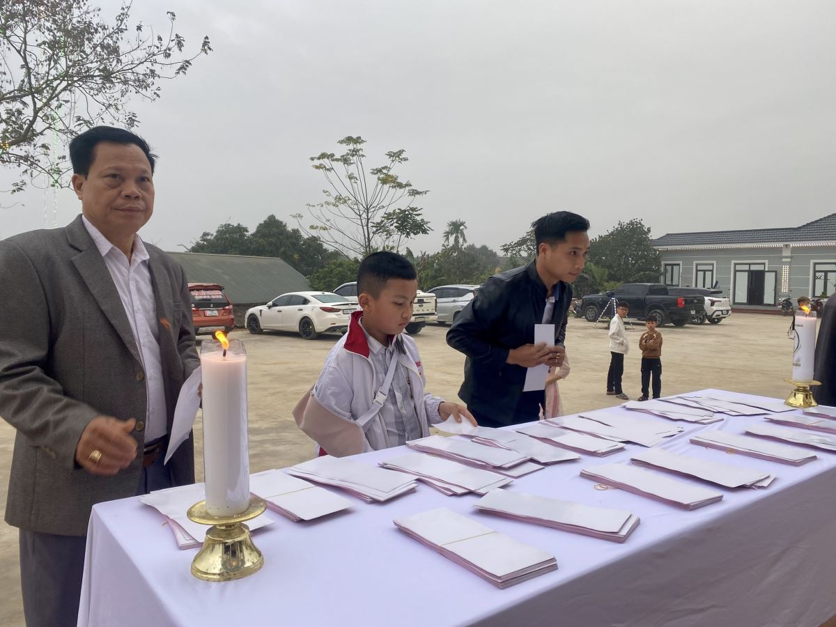 Trong phần hiệp lễ, giữa bầu khí thánh thiêng của cộng đoàn rước Mình Thánh Chúa, cha xứ đã chúc lành và trao lì xì đầu năm cho các em thiếu nhi. Những phong bao nhỏ bé đầu xuân trở thành dấu chỉ của lời chúc bình an và tình thương mục tử, đem lại niềm vui ấm áp cho các em trong ngày đầu năm mới.