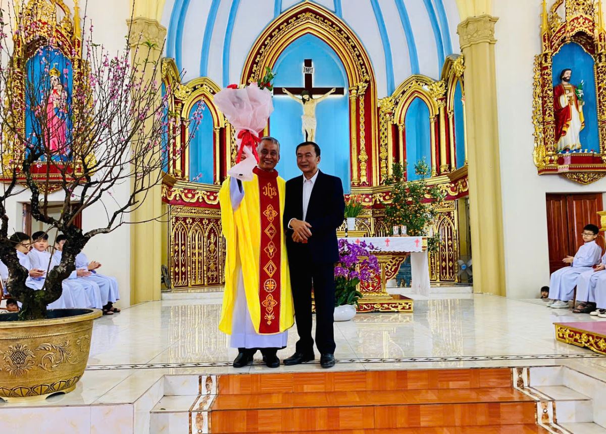 Sau lời nguyện hiệp lễ, ông Giacôbê Đặng Minh Lộc - Chủ tịch Hội đồng Giáo xứ, đại diện cộng đoàn dâng lời chúc mừng năm mới tới cha xứ, quý tu sĩ và toàn thể cộng đoàn. Đáp từ, cha xứ bày tỏ lòng tri ân và tiếp tục cầu chúc các gia đình một năm mới dồi dào sức khỏe, bình an, hiệp nhất và vững mạnh trong đời sống đức tin.