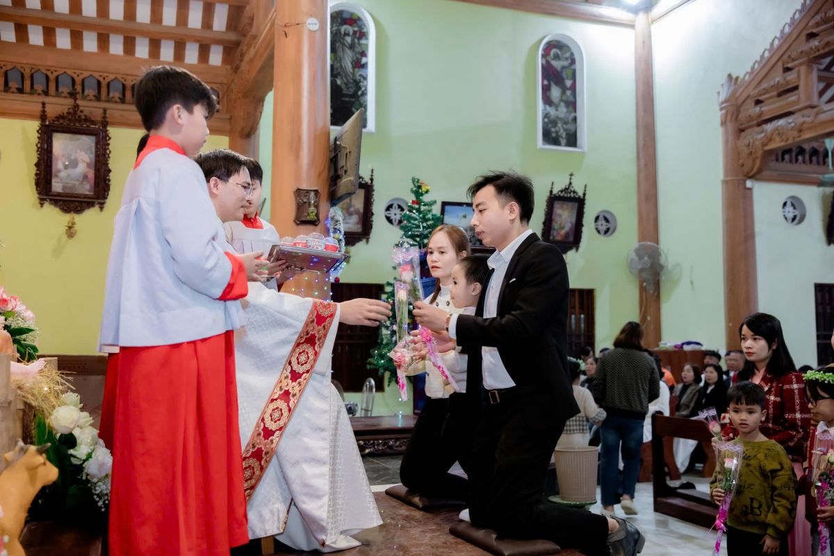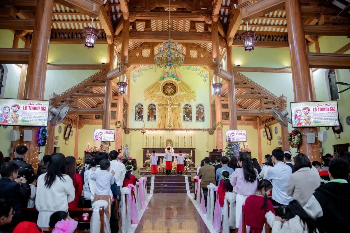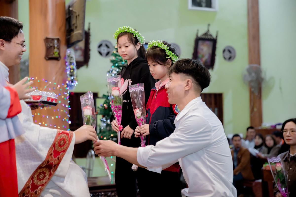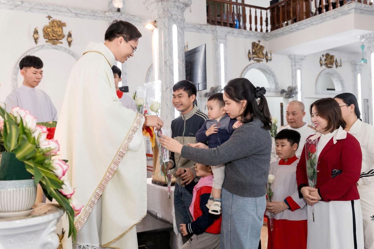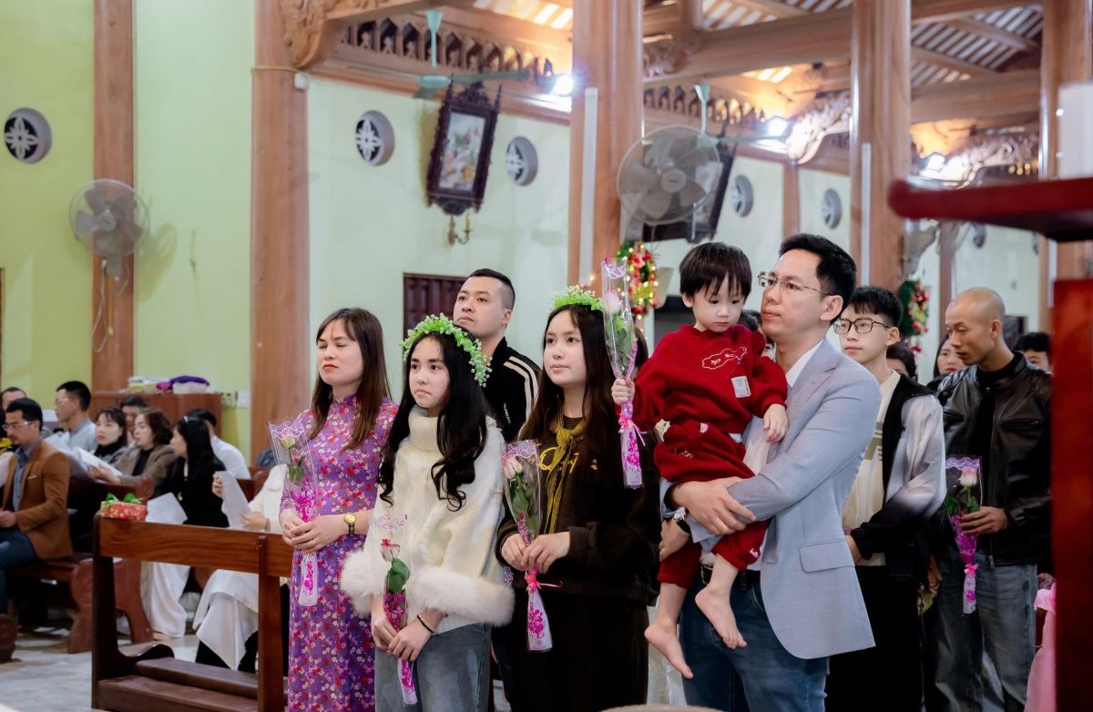 Trước khi bước vào Thánh lễ, các gia đình nắm tay nhau tiến bước vào nhà thờ trong bầu khí đầm ấm và linh thiêng. Những người con được cha mẹ dắt tay tiến vào nhà thờ thật là một hình ảnh đầy cảm động và ý nghĩa.