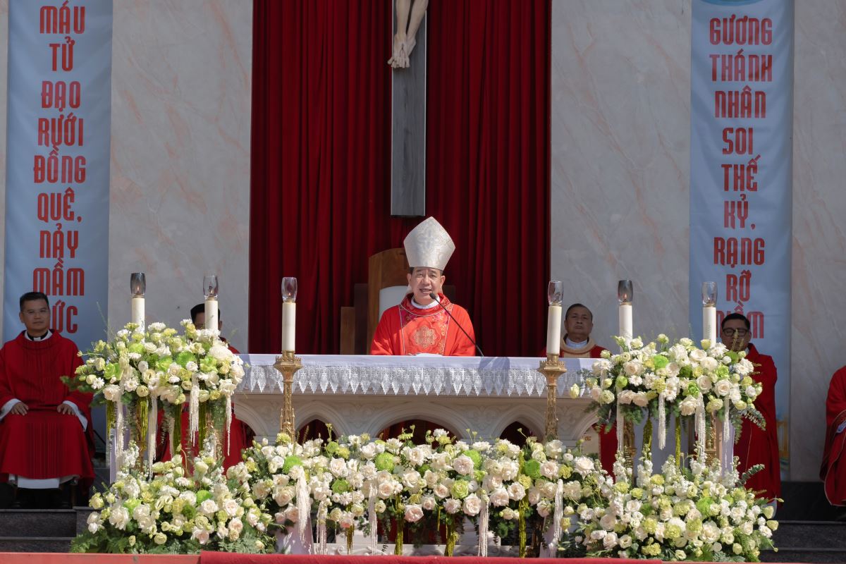 Trong bài giảng, Đức cha Đaminh nhắc lại lịch sử hình thành và phát triển của Giáo xứ Nỗ Lực – một trong những cộng đoàn đón nhận đức tin sớm nhất của Giáo phận Hưng Hóa và có vị thế quan trọng trong hành trình truyền giáo vùng Tây Bắc. Ngài đặc biệt nhấn mạnh dấu ấn các thánh tử đạo từng phục vụ tại đây và vai trò chiến lược của giáo xứ, từng là trạm dừng chân của các nhà truyền giáo và điểm hội tụ văn hóa, đức tin vùng thượng du, trở thành cầu nối quan trọng trong công cuộc loan báo Tin Mừng của Giáo phận.