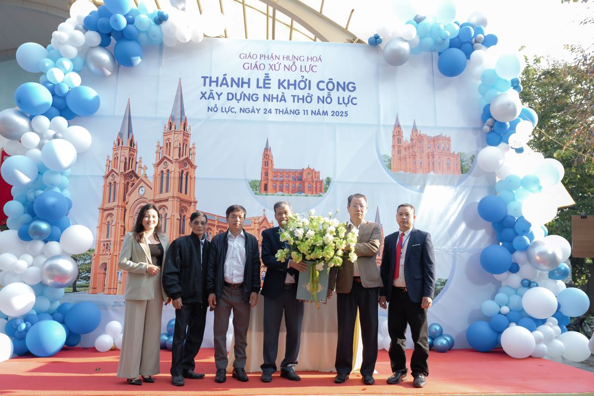 WGPHH – Trong bầu khí trang trọng và tràn đầy niềm vui, sáng ngày 24.11.2025, giáo xứ Nỗ Lực hân hoan cử hành Thánh lễ khởi công xây dựng nhà thờ mới. Thánh lễ do Đức cha Đaminh Hoàng Minh Tiến – Giám mục Giáo phận Hưng Hóa chủ sự. Đồng tế với ngài có quý cha Quản hạt, quý cha bản hương và quý cha trong giáo phận. Tham dự Thánh lễ còn có quý tu sĩ nam nữ, quý khách tôn giáo bạn, quý đại diện chính quyền cùng đông đảo cộng đoàn dân Chúa.