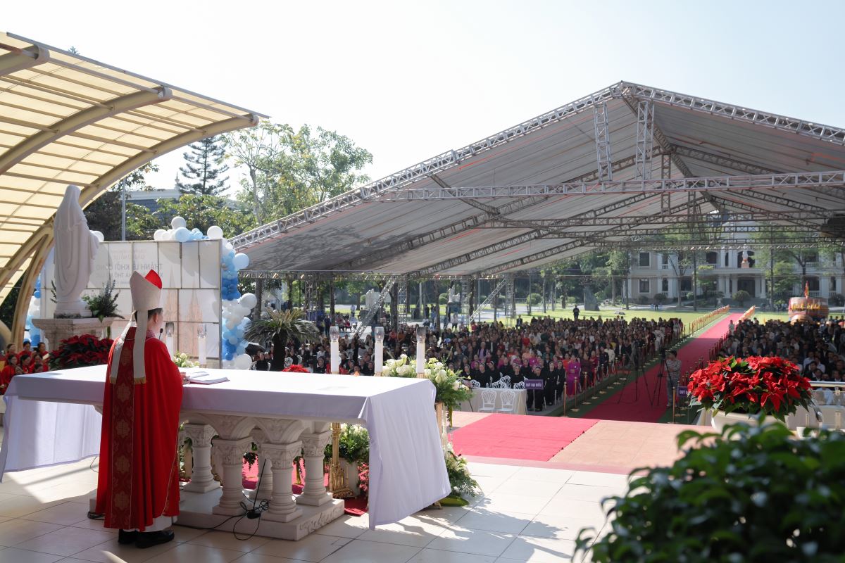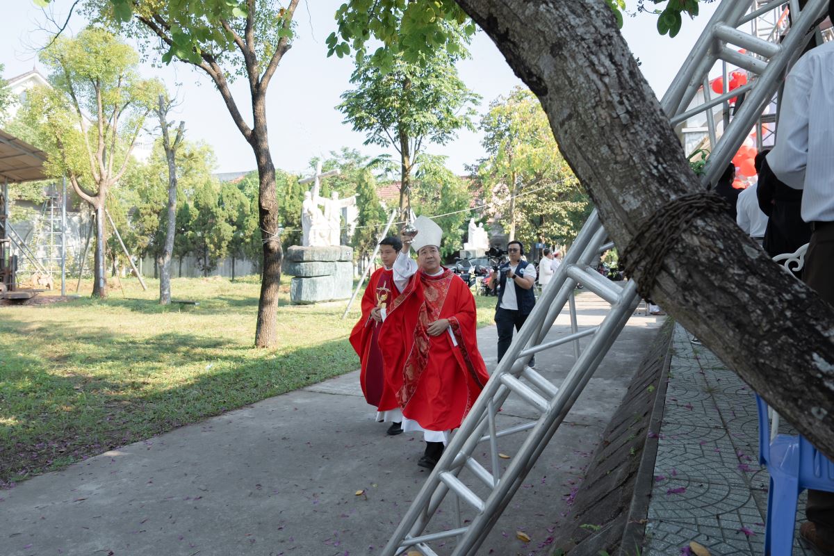 Trong niềm vui ngày khởi công, Đức cha không quên mời gọi cộng đoàn hướng về đồng bào miền Trung đang gặp thiên tai, bằng lời cầu nguyện và những nghĩa cử sẻ chia cụ thể, đồng thời xin Chúa qua lời chuyển cầu của Đức Mẹ và các Thánh Tử đạo Việt Nam chúc lành cho công trình và cộng đoàn được bình an.