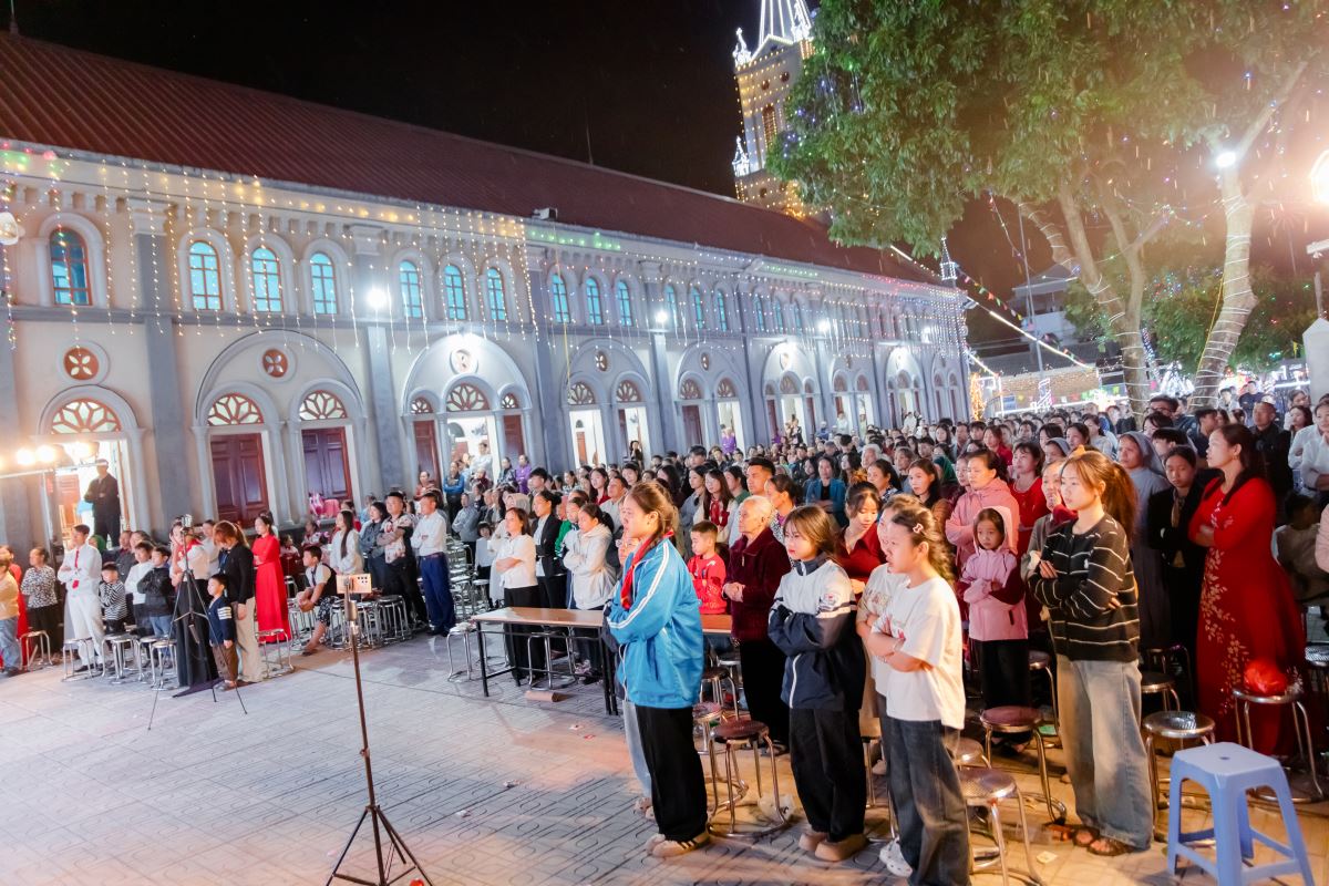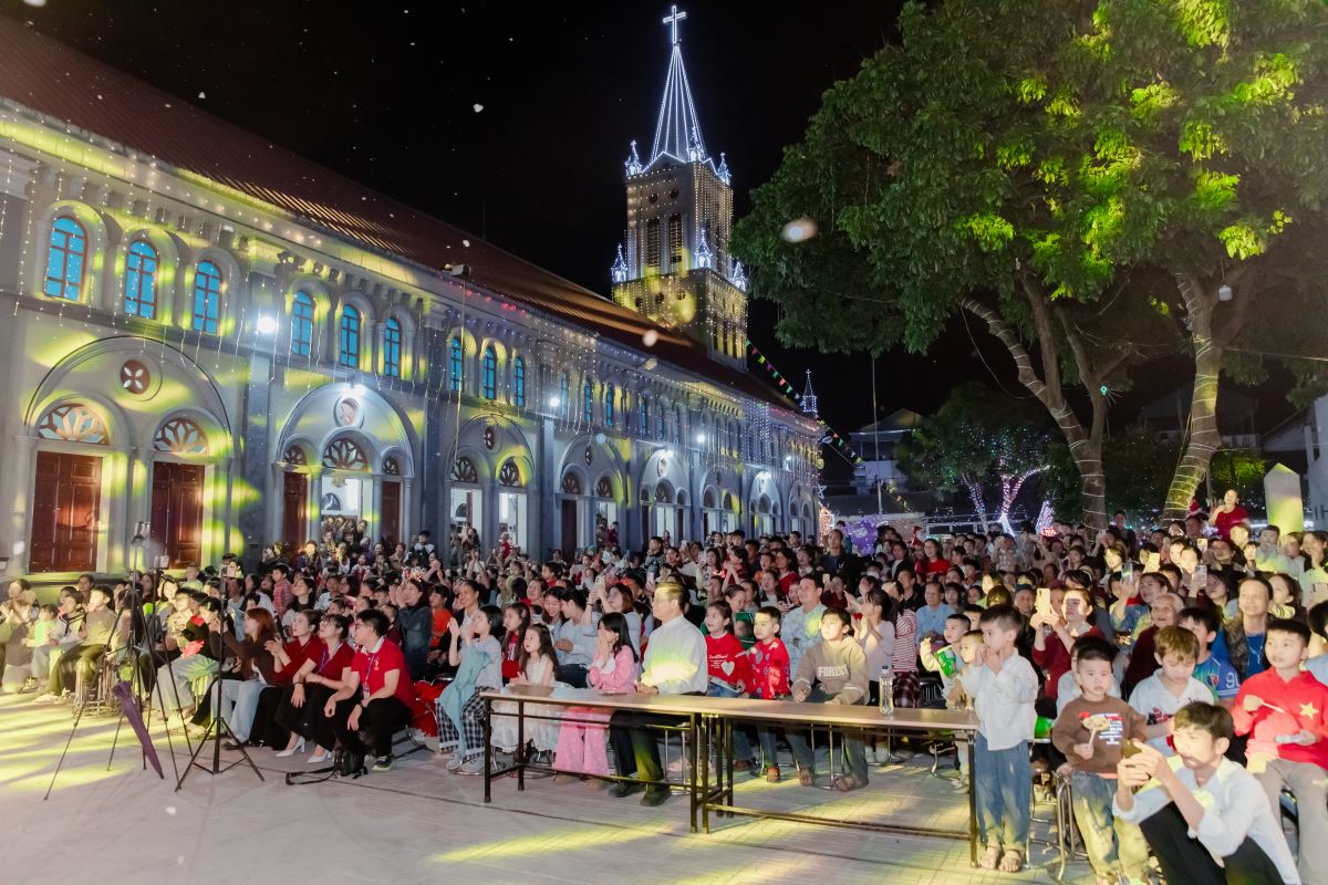 Góp phần làm nên sức sống cho đêm Hoan ca còn là không gian trang trí Giáng Sinh lung linh quanh khuôn viên nhà thờ. Những ánh đèn rực rỡ, tiểu cảnh sinh động đã trở thành điểm nhấn thu hút đông đảo giáo dân và bà con lương dân đến tham quan, chụp hình, lưu giữ những khoảnh khắc ấm áp bên gia đình và người thân.
