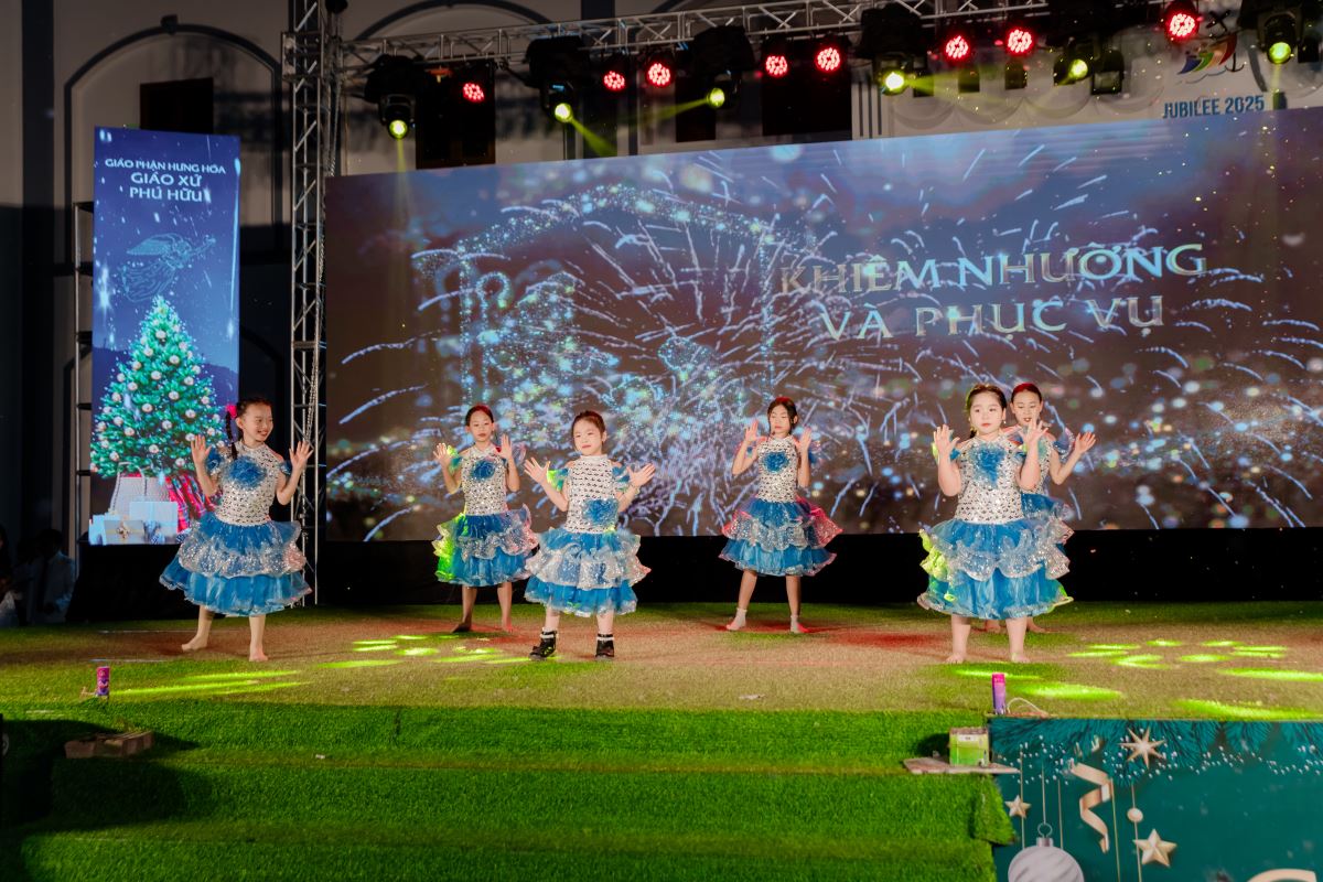 Chương trình Hoan ca – Diễn nguyện được dàn dựng công phu với những tiết mục ca múa, hoạt cảnh mang đậm ý nghĩa thần học và tâm tình đức tin. Qua những giai điệu rộn ràng, lời ca sâu lắng và phần trình diễn sinh động của các em thiếu nhi, huynh trưởng, giới trẻ cùng các hội đoàn, cộng đoàn được dẫn vào hành trình chiêm ngắm Hài Nhi Giêsu – Đấng Emmanuel, Thiên Chúa ở cùng chúng ta. Những nốt nhạc đơn sơ hòa quyện thành bản thánh ca cảm tạ và chúc tụng, diễn tả niềm vui, bình an mà Con Thiên Chúa mang đến cho nhân loại.