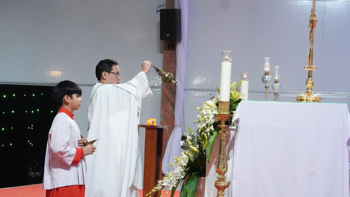 Đỉnh cao của ngày chầu lượt là Thánh lễ mừng Chúa Hiển Linh lúc 19g30 do Cha xứ Giuse chủ tế. Mở đầu Thánh lễ, Cha mời gọi cộng đoàn hiệp lời tạ ơn Thiên Chúa đã ban cho giáo xứ một ngày chầu lượt tràn đầy ơn thánh. Ngài nhấn mạnh: “Ngày hôm nay, dưới hình bánh đơn sơ trong Mặt Nhật, chính Chúa Giêsu Thánh Thể đang hiển linh và tỏa sáng để mời gọi mỗi Kitô hữu đến chiêm ngắm và tôn thờ. Đây là cơ hội để mỗi người dừng lại mọi lo toan, bước vào không gian của thinh lặng và kết hiệp mật thiết với Đấng là nguồn sống.”