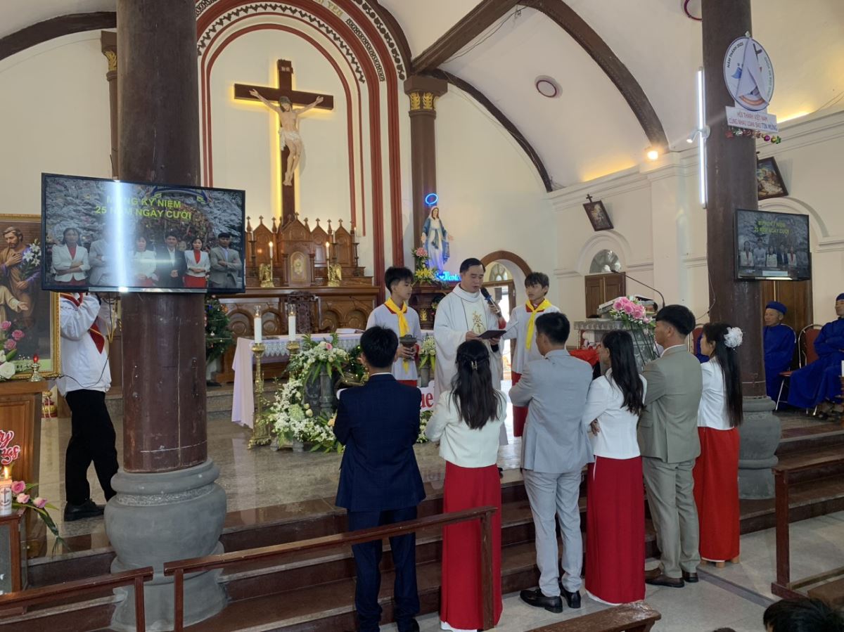 Trong Thánh lễ, ba đôi hôn phối kỷ niệm 25 năm ngày cưới đã tiến lên trước bàn thờ Chúa để dâng lời tạ ơn vì hồng ân hôn phối mà Thiên Chúa đã thương ban. Cha Antôn Maria đã chúc phúc cho ba gia đình, cầu xin Thiên Chúa tuôn đổ muôn ơn lành, để các đôi hôn phối luôn trung tín với giao ước, tiếp tục sống yêu thương, chung thủy và trở nên chứng tá sống động cho ơn gọi gia đình Kitô hữu giữa đời.