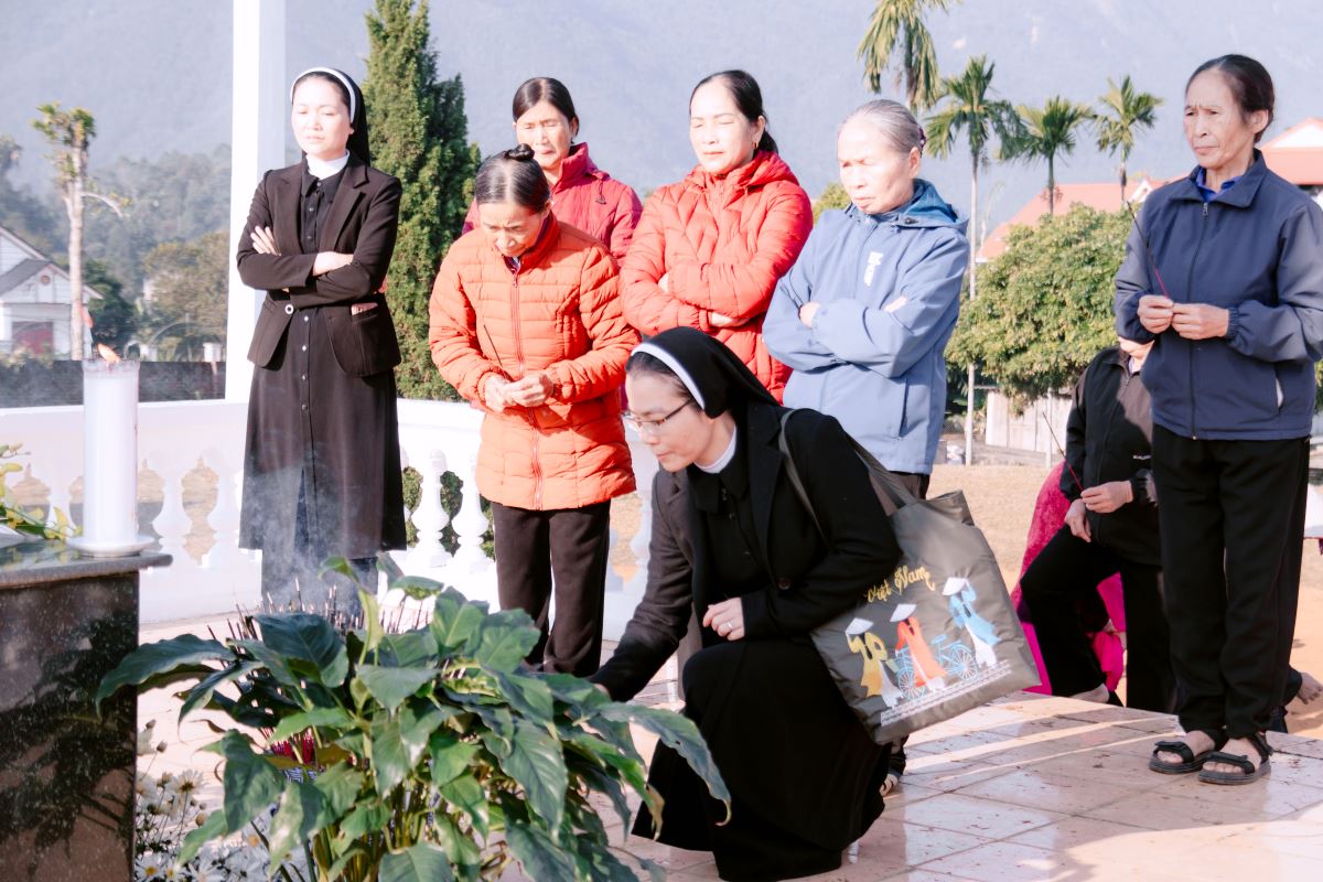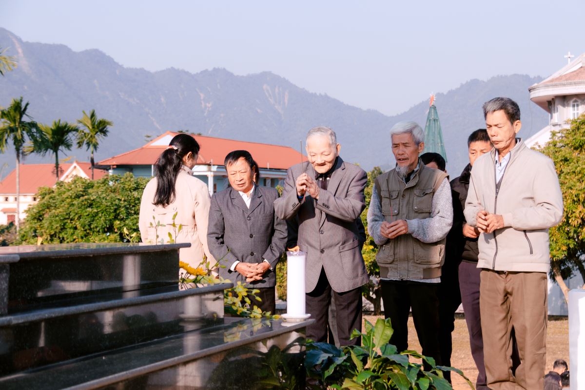 Ngay từ sáng sớm, từng nhóm giáo dân đã về bên mộ phần Cha cố, đọc kinh, thắp hương và tưởng nhớ vị cha chung, người đã trải qua một hành trình dài đầy hy sinh để gieo trồng bao hạt giống đức tin trên vùng đất Ro Lục ngày nay.