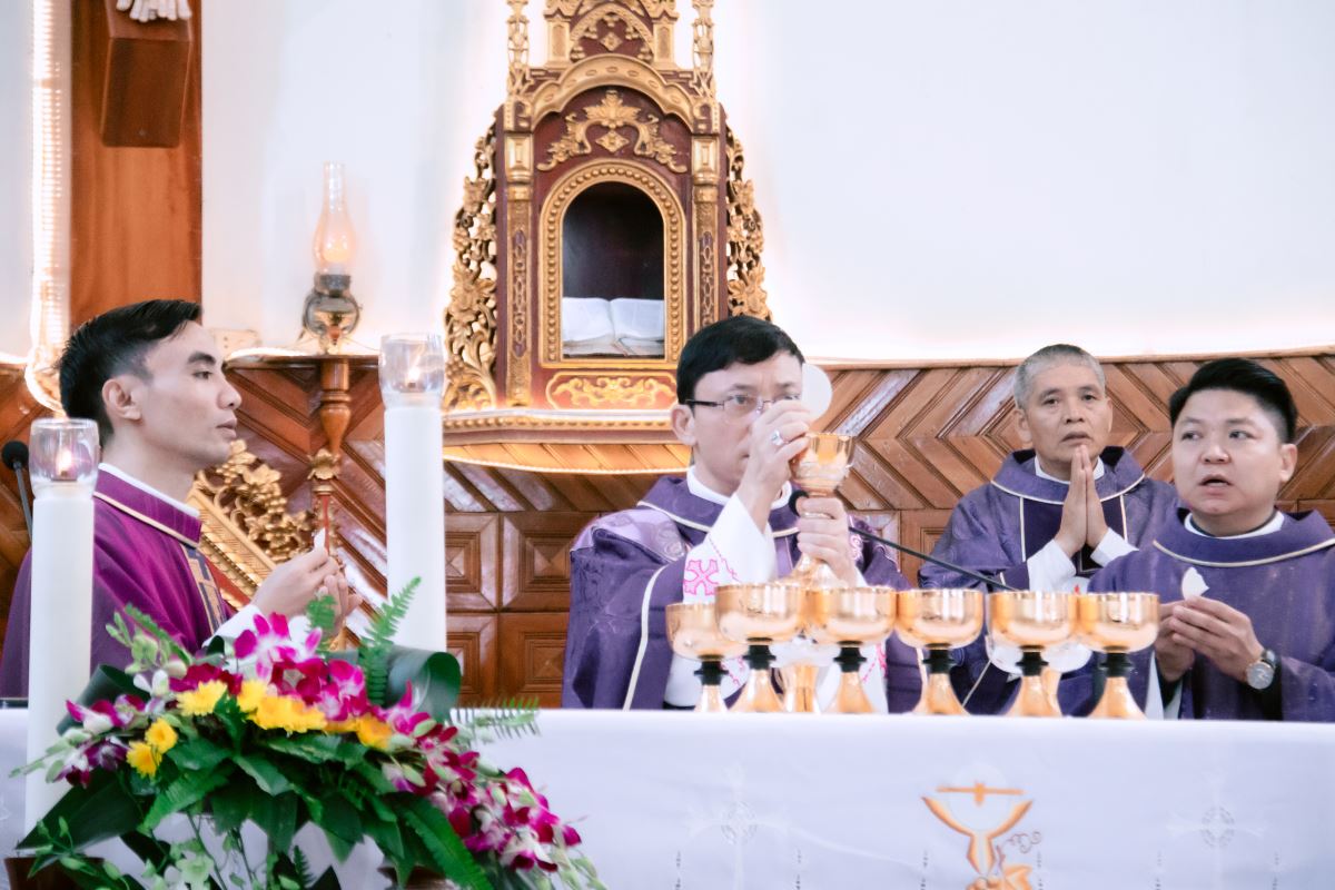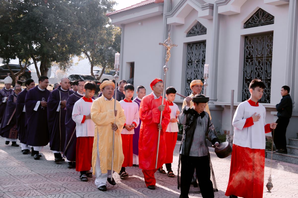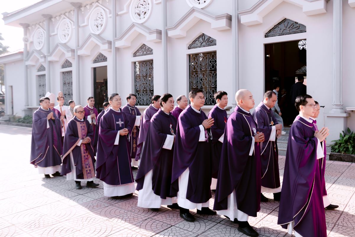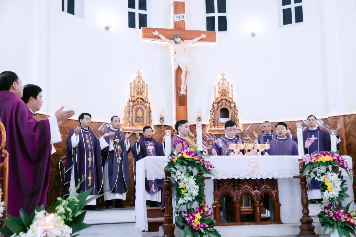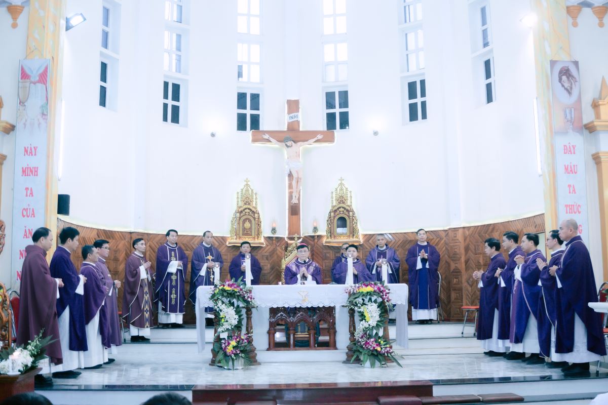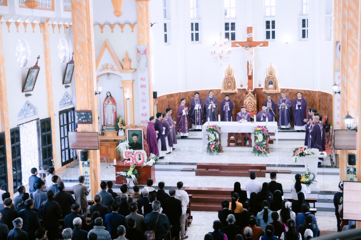 Thánh lễ được cử hành long trọng vào 8h30 sáng ngày 27 tháng 11 năm 2025, trong bầu khí linh thiêng và chan hòa tâm tình tri ân. Đồng tế với Đức cha Phaolô có quý Cha trong và ngoài Giáo hạt, cùng sự hiện diện của các tu sĩ nam nữ, thân nhân của Cha cố và đông đảo cộng đoàn dân Chúa.