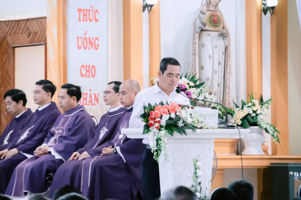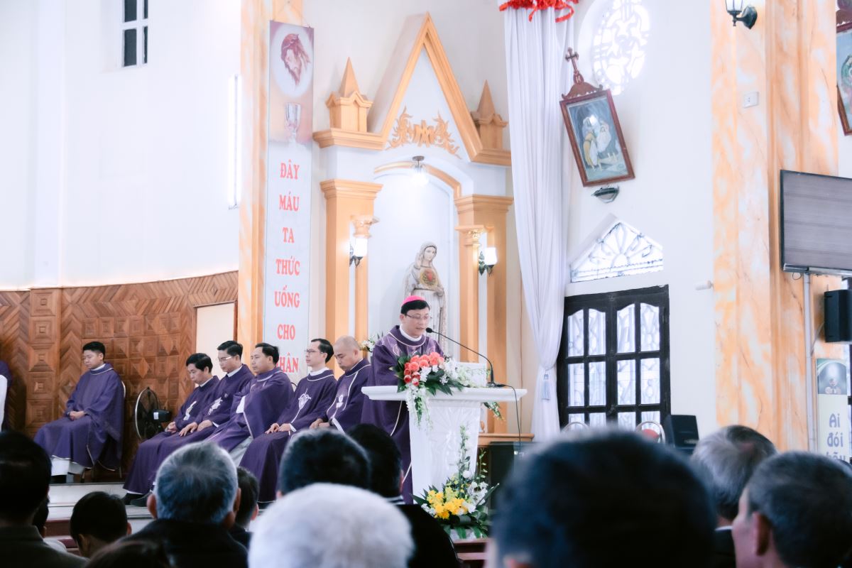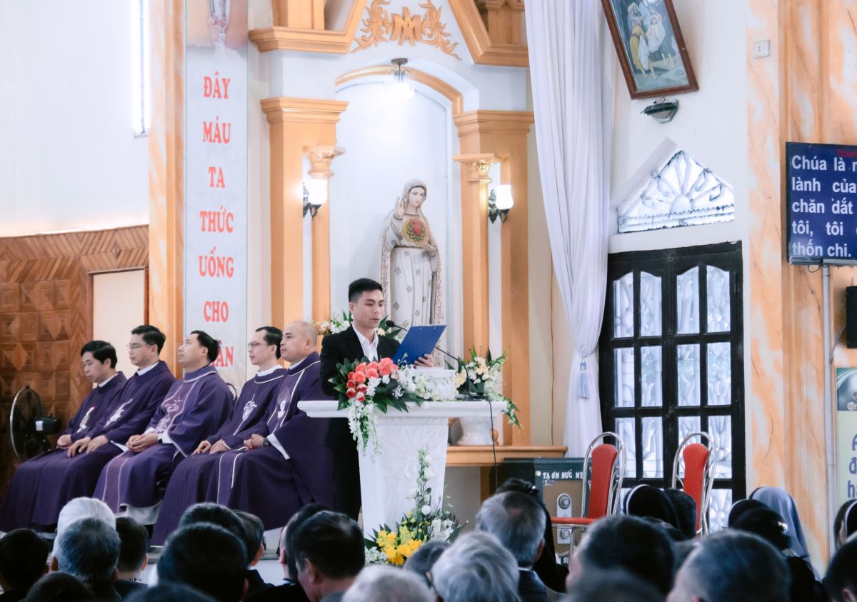 Ngay khi mở đầu Thánh lễ, Đức cha Phụ tá Phaolô đã trang trọng mời gọi cộng đoàn hướng lòng mình về Cha cố Giuse. Ngài nhắc rằng hôm nay, cộng đoàn quy tụ nơi đây trước hết để tưởng nhớ đến Cha cố Giuse, người đã sống những năm tháng đầy thử thách và đã hiến dâng tất cả cho đoàn chiên. Trong những hoàn cảnh khó khăn nhất, Cha cố như hạt lúa mì chịu mục nát để trở thành tấm bánh nuôi dưỡng đời sống đức tin của biết bao người. Những hạt giống mà ngài âm thầm gieo trồng ngày ấy đã nảy nở thành những bông hạt đức tin vững bền của cộng đoàn hôm nay.