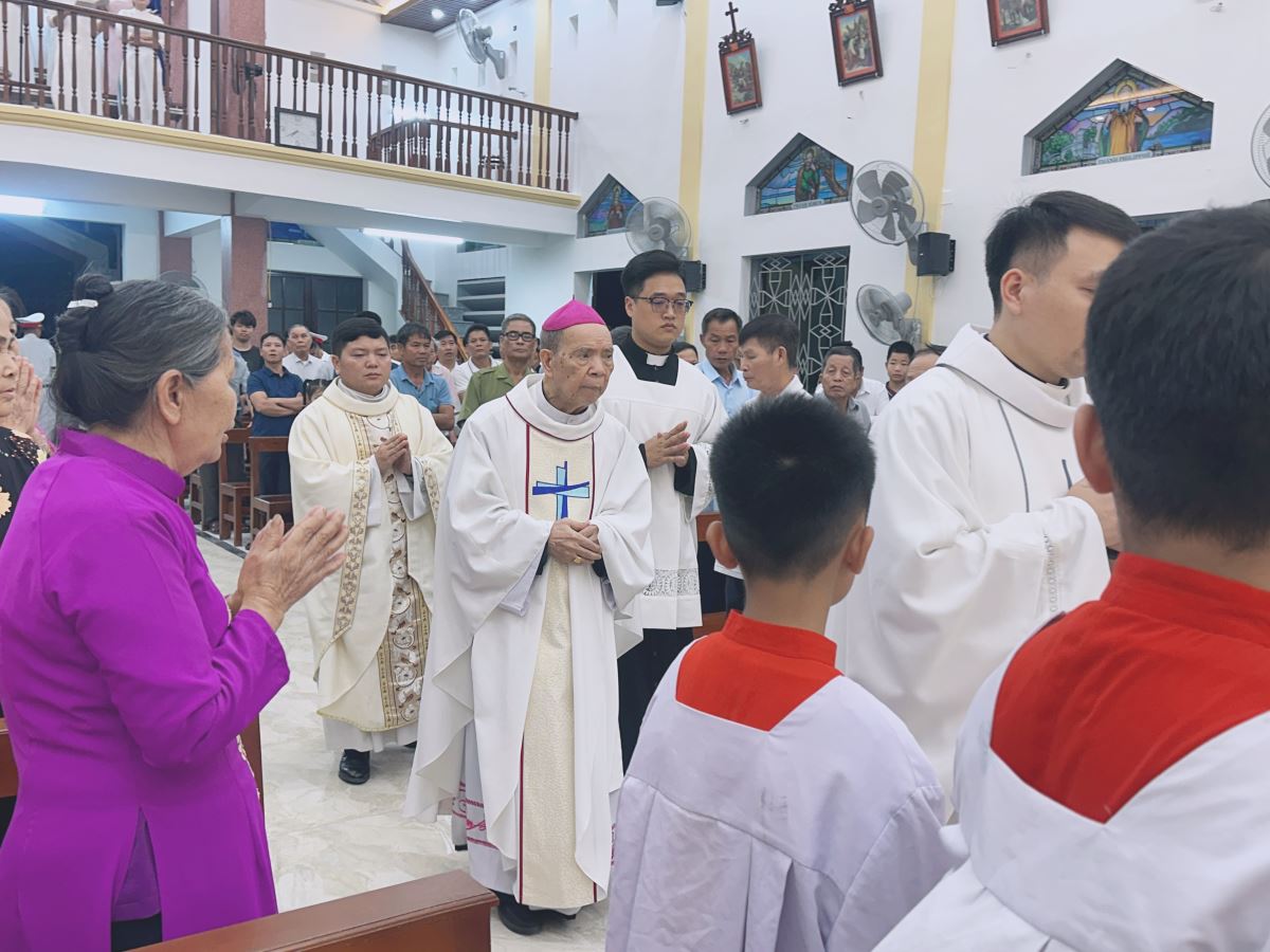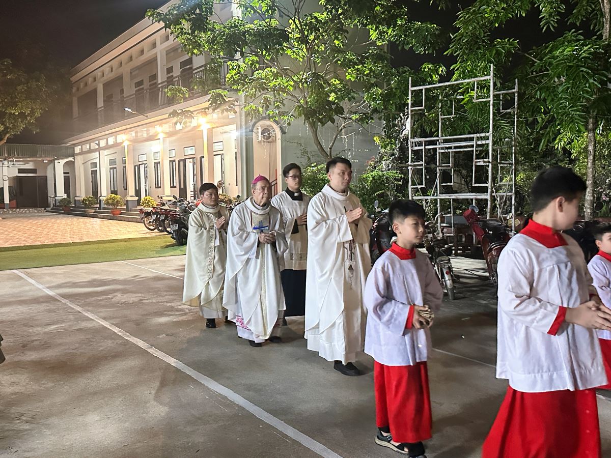 WGPHH - Vào lúc 19g30 thứ Bảy, ngày 25/4/2026, tại nhà thờ Giáo xứ Sơn Đông, cộng đoàn tín hữu hân hoan quy tụ tham dự Thánh lễ Chúa Nhật IV Phục Sinh, ngày cầu nguyện đặc biệt cho ơn gọi linh mục và tu sĩ. Thánh lễ do Cha Giuse Dư Văn Từ - quản lý Tòa Giám mục chủ tế, với sự hiện diện quý báu của Đức Cha Gioan Maria Vũ Tất - nguyên Giám mục Giáo phận Hưng Hoá, và Cha phó Vinh Sơn Bùi Mạnh Cừ.