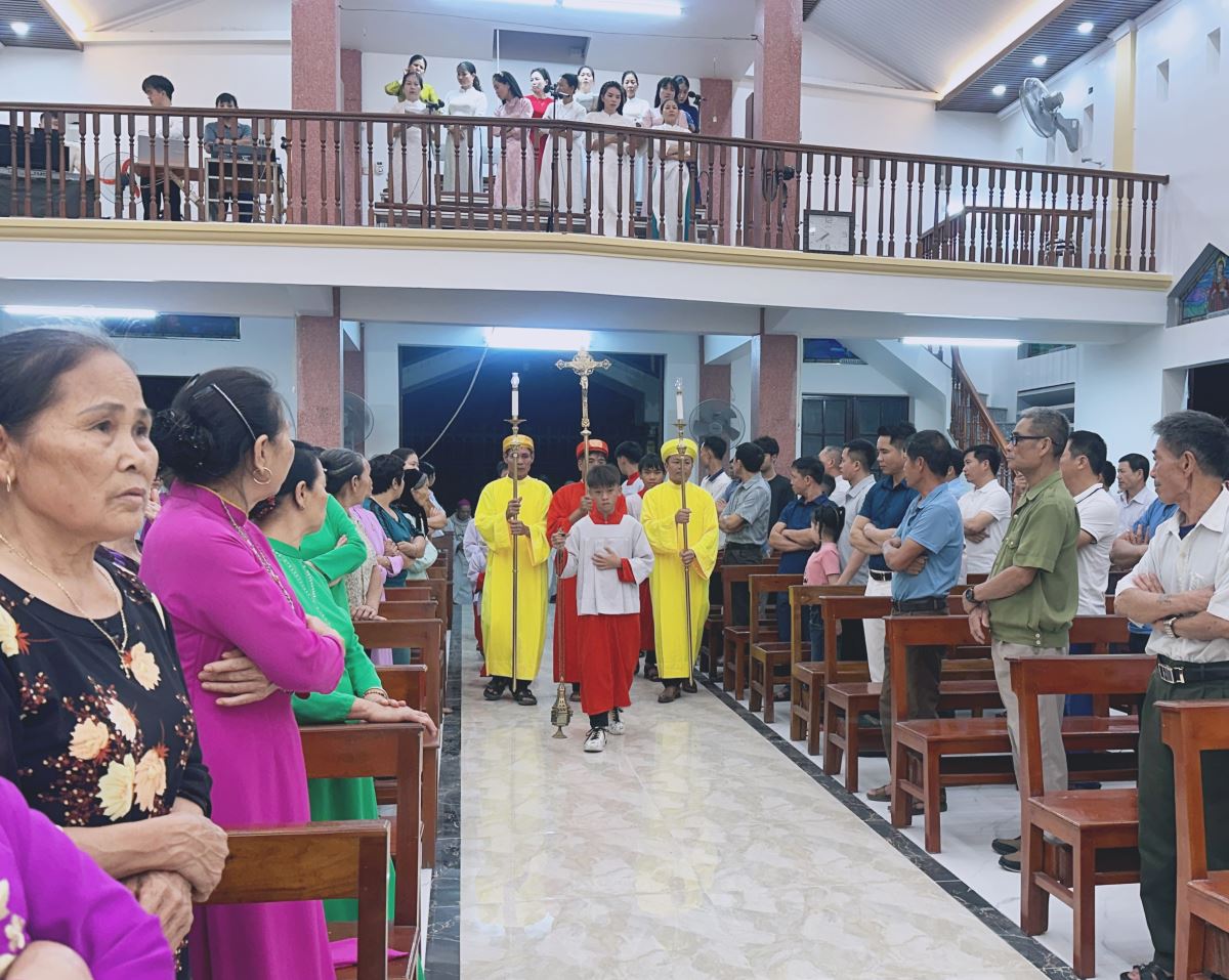 Thánh lễ bắt đầu với đoàn rước trang nghiêm tiến vào thánh đường, hòa cùng tiếng ca nhập lễ rộn rã vang lên, hướng tâm hồn cộng đoàn về Thiên Chúa, Đấng là nguồn mạch mọi ơn gọi thánh thiêng.