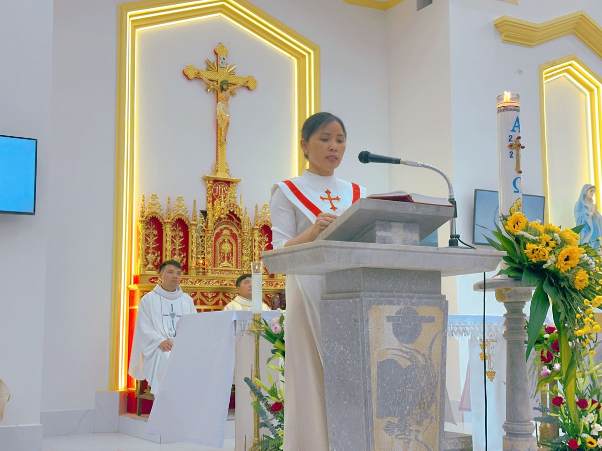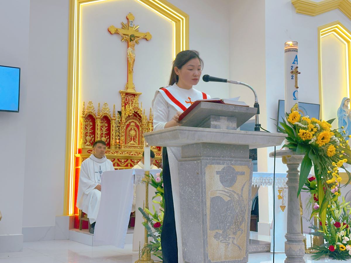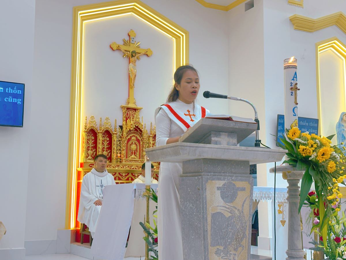 Qua phần Phụng vụ Lời Chúa, cộng đoàn sốt sắng lắng nghe các bài đọc Kinh Thánh và bài giảng lễ, giúp mỗi người thêm thấm thía ý nghĩa ơn gọi sống yêu thương, hiệp nhất và phục vụ trong đời sống Kitô hữu.