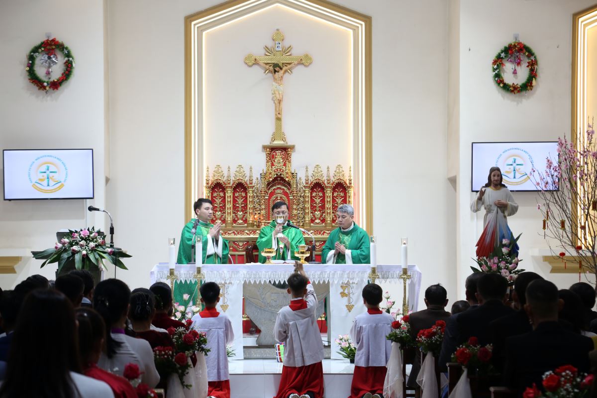 WGPHH - Tối thứ Bảy, ngày 14/02/2026 – đúng ngày lễ Valentine, tại Giáo xứ Sơn Đông, Đức cha Phaolô Nguyễn Quang Đĩnh, Giám mục Phụ tá Giáo phận Hưng Hóa, đã chủ sự Thánh lễ Tạ ơn mừng kỷ niệm hôn nhân cho 30 đôi vợ chồng trong giáo xứ. Đồng tế với Đức cha có cha xứ Giuse Nguyễn Đình Tuyến và cha phó Vinh Sơn Bùi Mạnh Cừ. Hiệp dâng Thánh lễ còn có quý thầy, thân nhân các gia đình cùng đông đảo cộng đoàn dân Chúa.