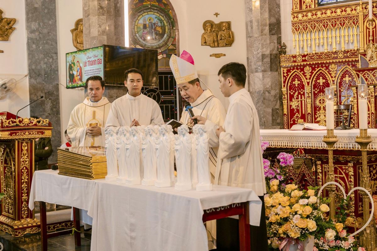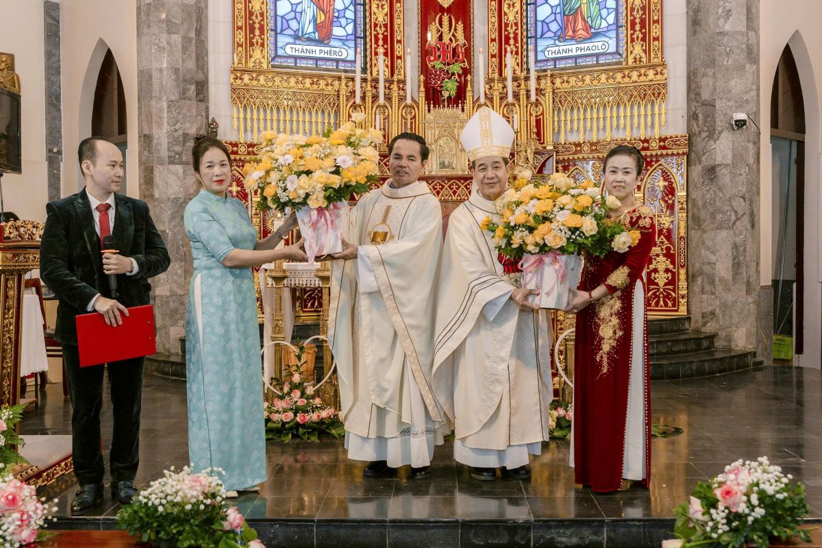 Thánh lễ do Đức cha Đaminh Hoàng Minh Tiến-Giám mục Chính toà Giáo phận Hưng Hoá chủ tế. Đồng tế với ngài có cha quản xứ Phêrô Lê Quốc Hưng. Hiệp thông trong thánh lễ có quý thầy, quý dì, quý thân nhân, bạn hữu của 15 gia đình cùng đông đảo cộng đoàn dân Chúa.