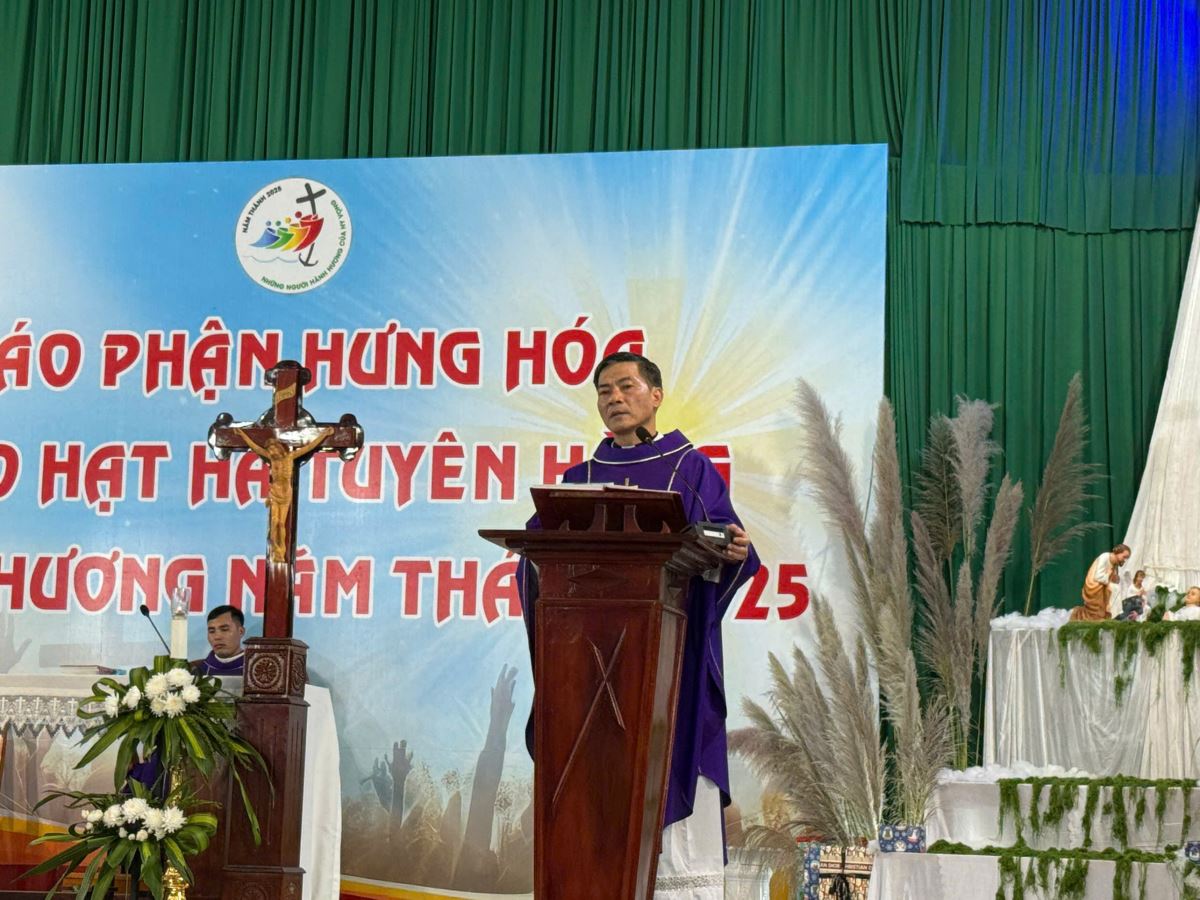 Trong Thánh lễ, cha chủ tế Phêrô Mai Văn Thủy mời gọi cộng đoàn đón nhận ánh sáng từ nơi Đức Kitô, noi gương Cha Thánh Phêrô Trương Văn Thi – người đã đón nhận ánh sáng Tin Mừng và trở nên ánh sáng cho cộng đoàn giáo xứ Sông Chảy.