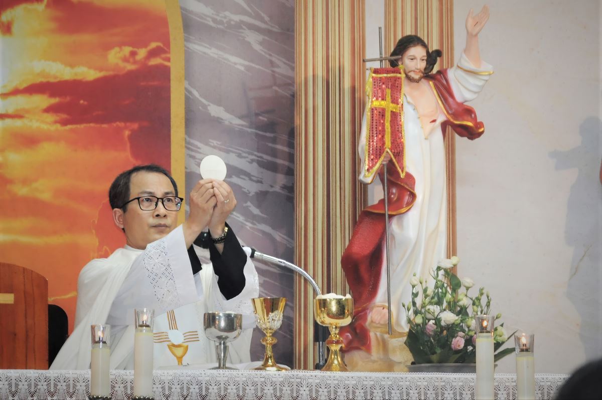 Thánh lễ do Cha phó đặc trách Vinh Sơn Vũ Văn Nguyện chủ sự, cùng với sự tham dự đông đảo và sốt sắng của toàn thể cộng đoàn giáo xứ.