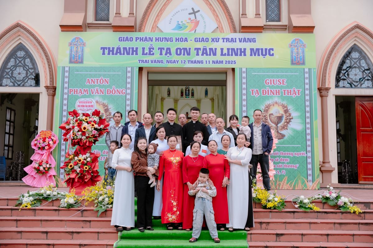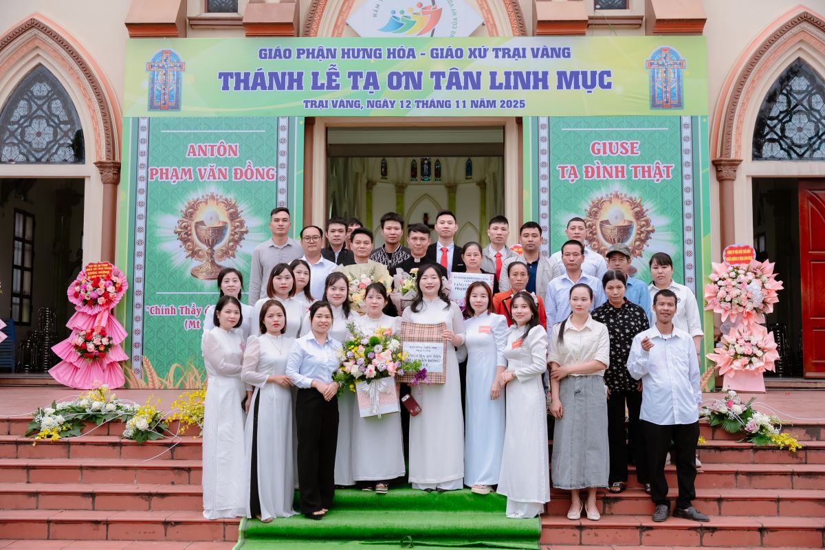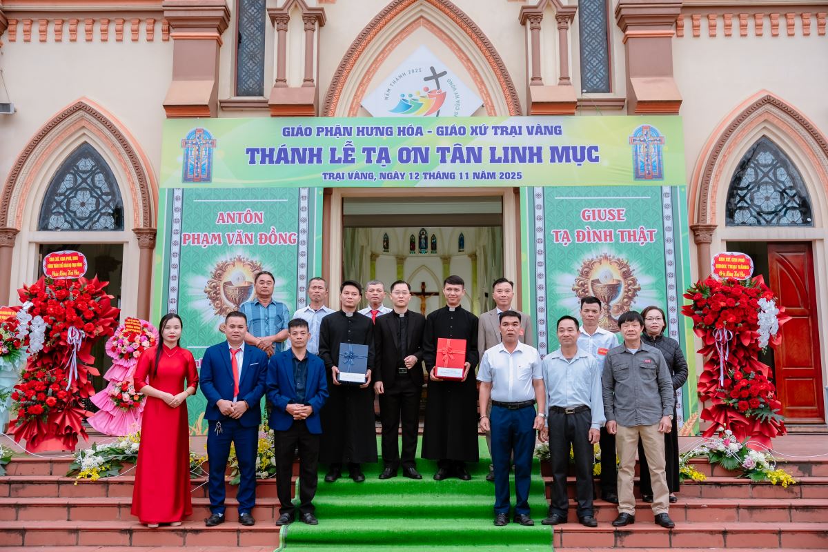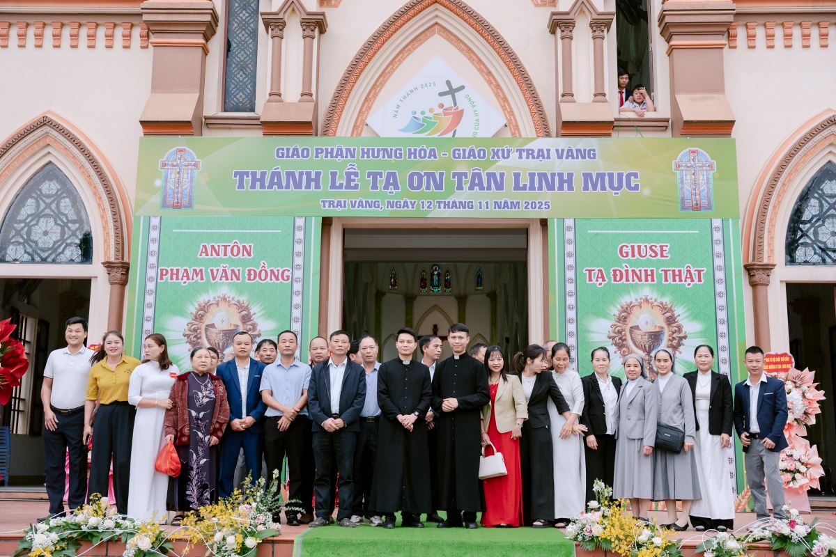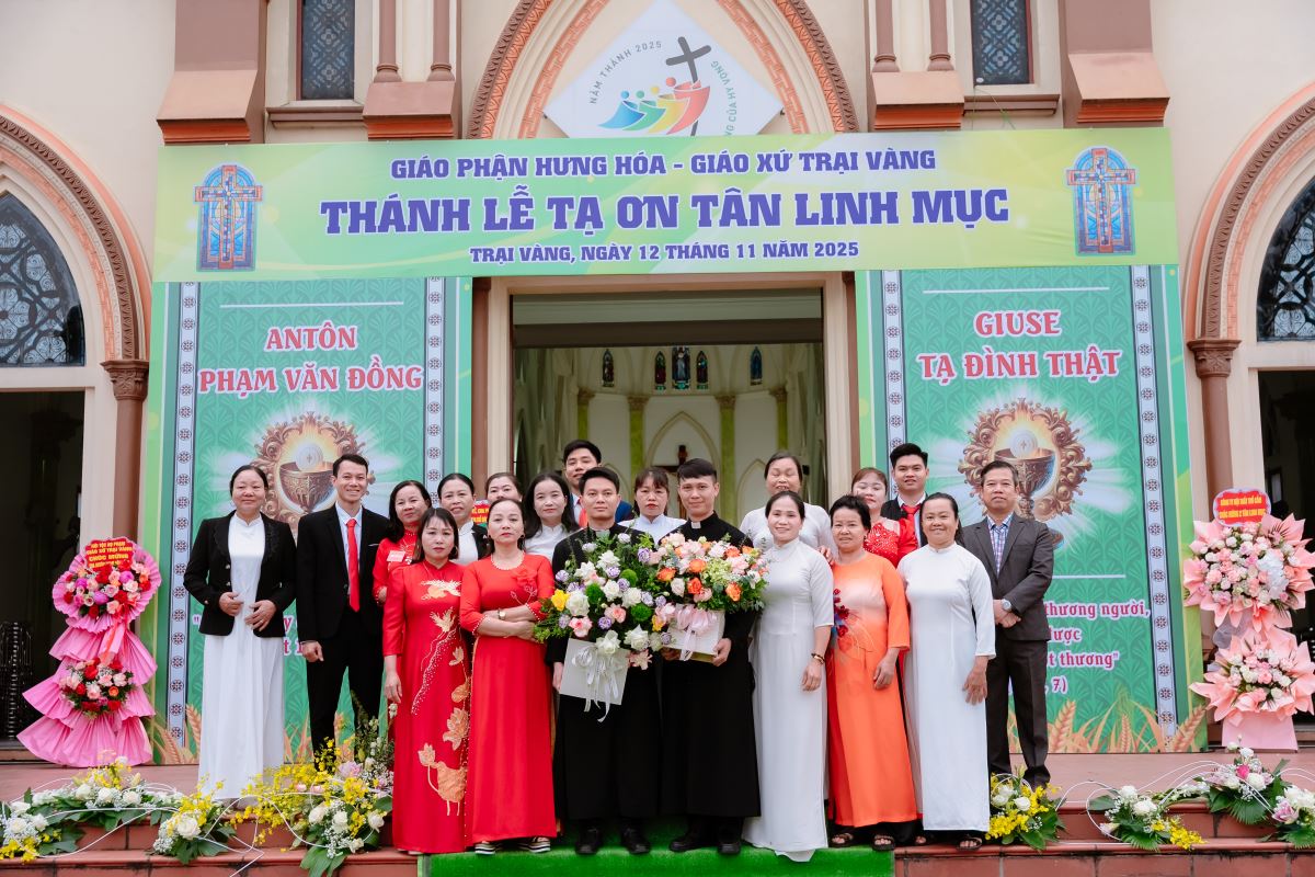 WGPHH - Trong bầu khí linh thiêng của Năm Thánh Hy Vọng và trong hành trình Hội Thánh đang nỗ lực củng cố tinh thần Hiệp Hành, giáo xứ Trại Vàng hân hoan chào đón hai tân linh mục quê hương: cha Antôn Phạm Văn Đồng và cha Giuse Tạ Đình Thật. Sau nhiều năm miệt mài tu luyện và bước theo tiếng gọi của Thiên Chúa, hai thầy đã được Đức cha Đa-Minh Hoàng Minh Tiến – Giám mục Giáo phận Hưng Hóa – truyền chức linh mục cùng với 17 tiến chức khác vào ngày 11/11/2025.