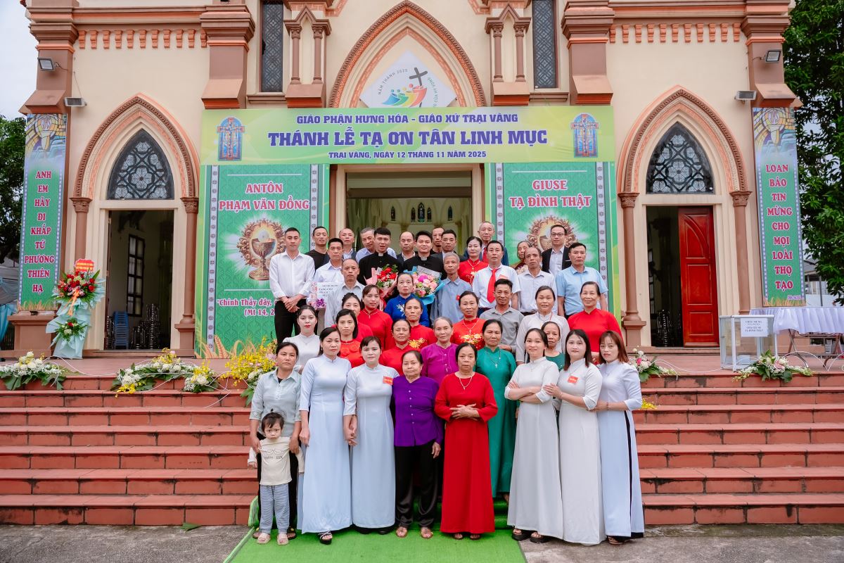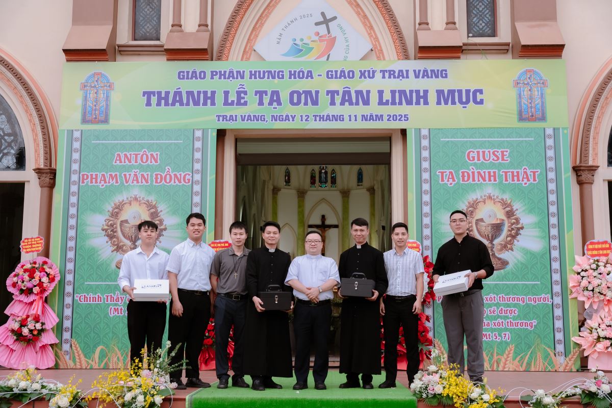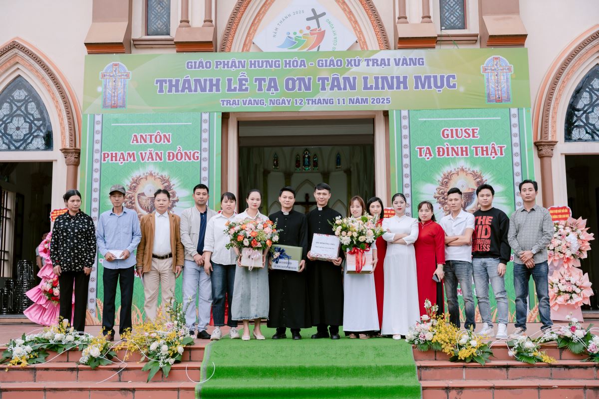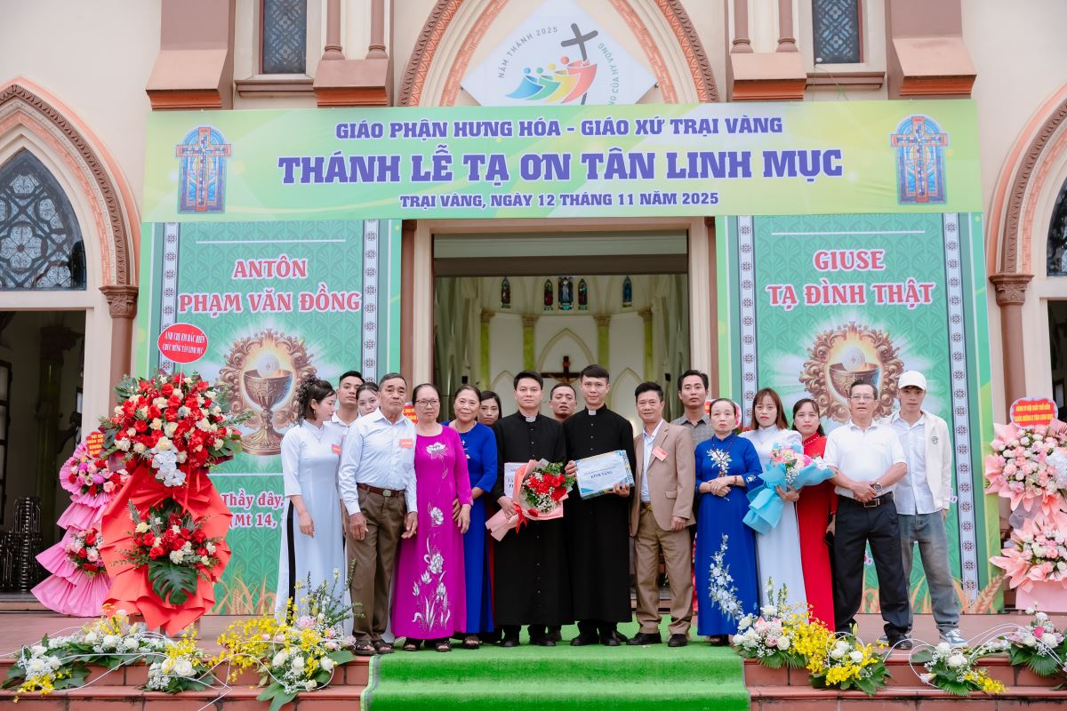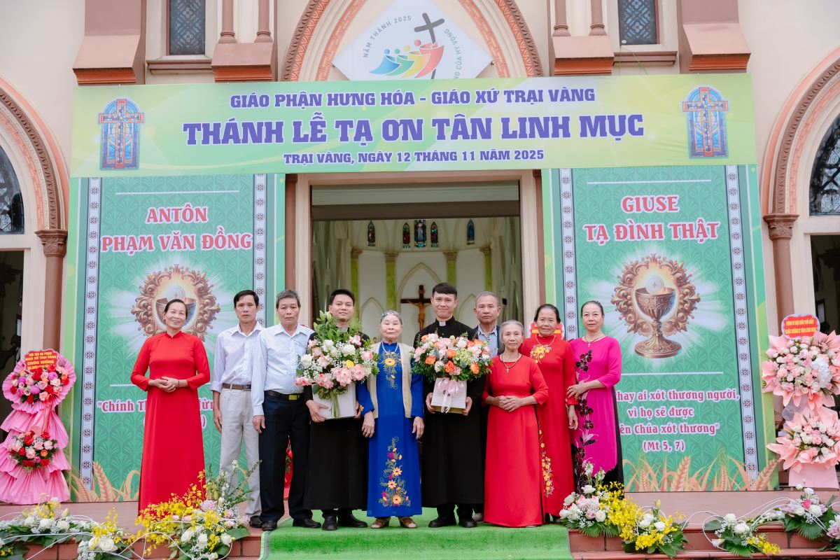 WGPHH - Trong bầu khí linh thiêng của Năm Thánh Hy Vọng và trong hành trình Hội Thánh đang nỗ lực củng cố tinh thần Hiệp Hành, giáo xứ Trại Vàng hân hoan chào đón hai tân linh mục quê hương: cha Antôn Phạm Văn Đồng và cha Giuse Tạ Đình Thật. Sau nhiều năm miệt mài tu luyện và bước theo tiếng gọi của Thiên Chúa, hai thầy đã được Đức cha Đa-Minh Hoàng Minh Tiến – Giám mục Giáo phận Hưng Hóa – truyền chức linh mục cùng với 17 tiến chức khác vào ngày 11/11/2025.