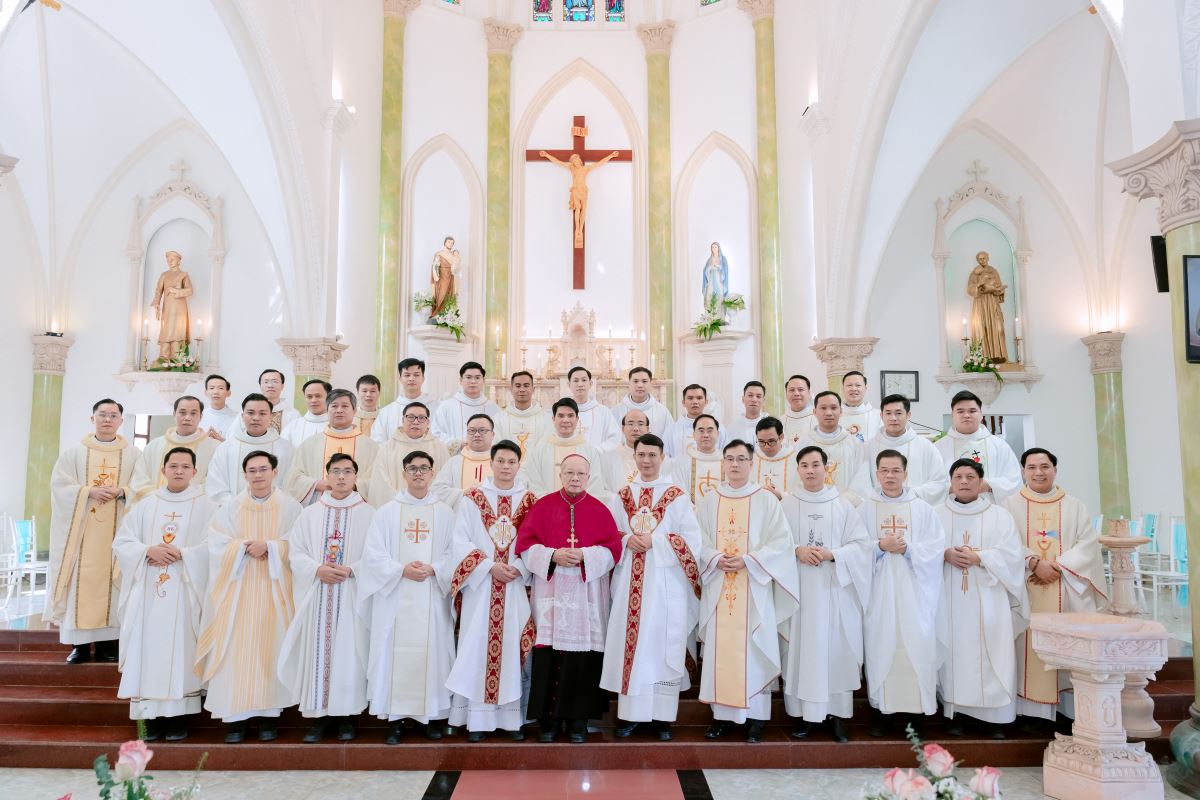 Thánh lễ có sự hiện diện đặc biệt của Đức cha Antôn Vũ Huy Chương, nguyên Giám mục Giáo phận Hưng Hóa và Đà Lạt, cùng quý cha trong và ngoài giáo phận, quý tu sĩ, chủng sinh, thân nhân, ân nhân và đông đảo cộng đoàn dân Chúa.