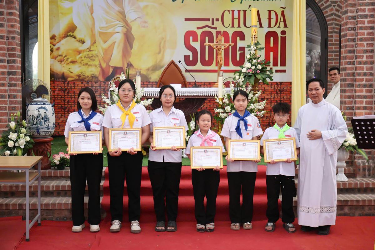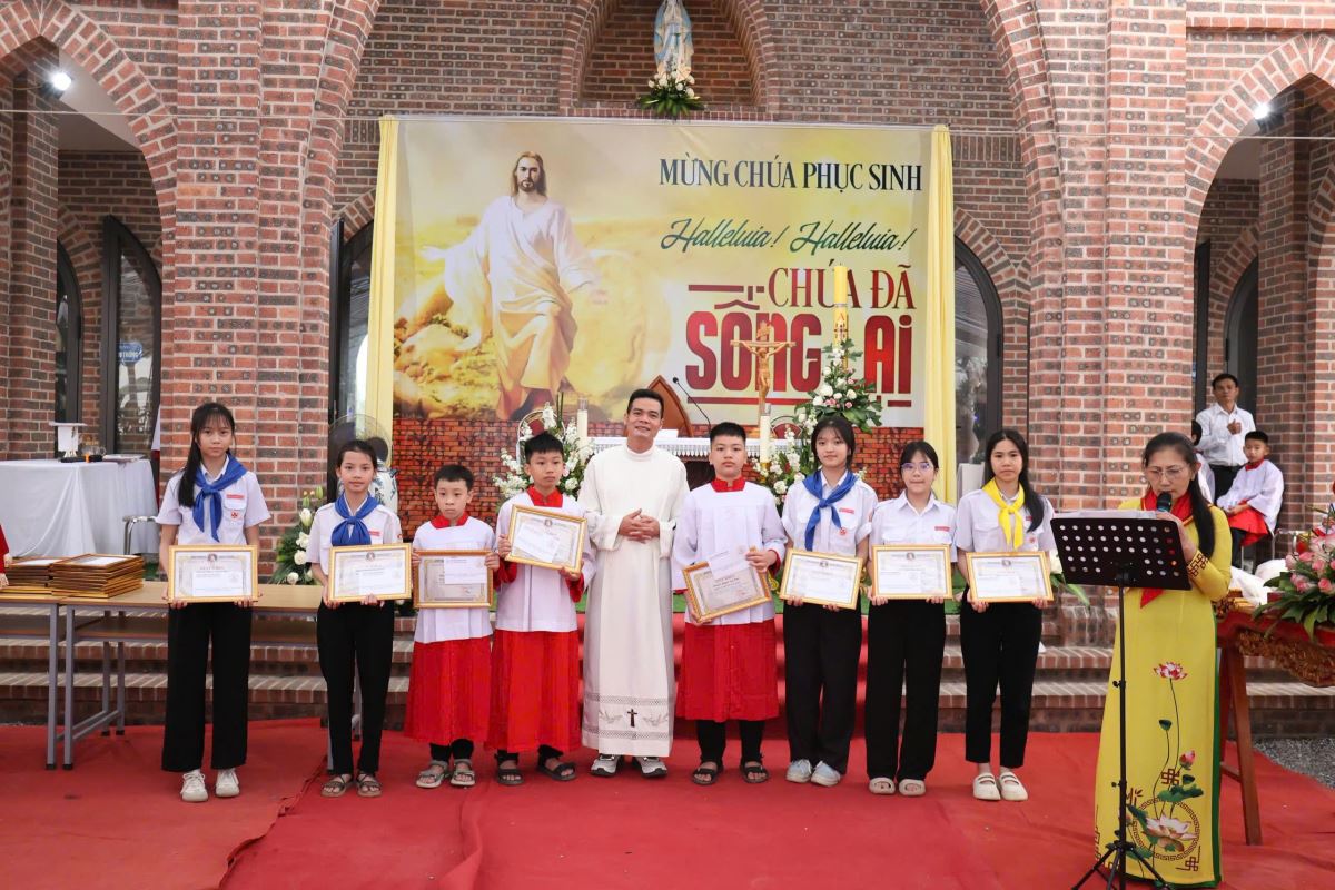 Trước khi kết thúc Thánh lễ, cha xứ Giuse đã gửi lời chúc mừng Phục Sinh đến toàn thể cộng đoàn. Ngài cũng bày tỏ lòng tri ân tới cha phó, cha khách đã giúp Tuần Thánh, quý Dì, Ban Hành giáo, Ban Giáo vụ cùng các hội đoàn…. đã nhiệt thành cộng tác trong suốt Tuần Thánh và trong việc tổ chức kỳ thi Mùa Chay, góp phần làm nên một mùa Phụng vụ sốt sắng và ý nghĩa. Bên cạnh đó, cha xứ cũng chia sẻ về tiến trình xây dựng nhà thờ và kế hoạch hoàn thành vào năm 2027, đồng thời kêu gọi cộng đoàn tiếp tục hiệp ý cầu nguyện và chung tay cộng tác để công trình sớm được hoàn tất theo thánh ý Thiên Chúa.