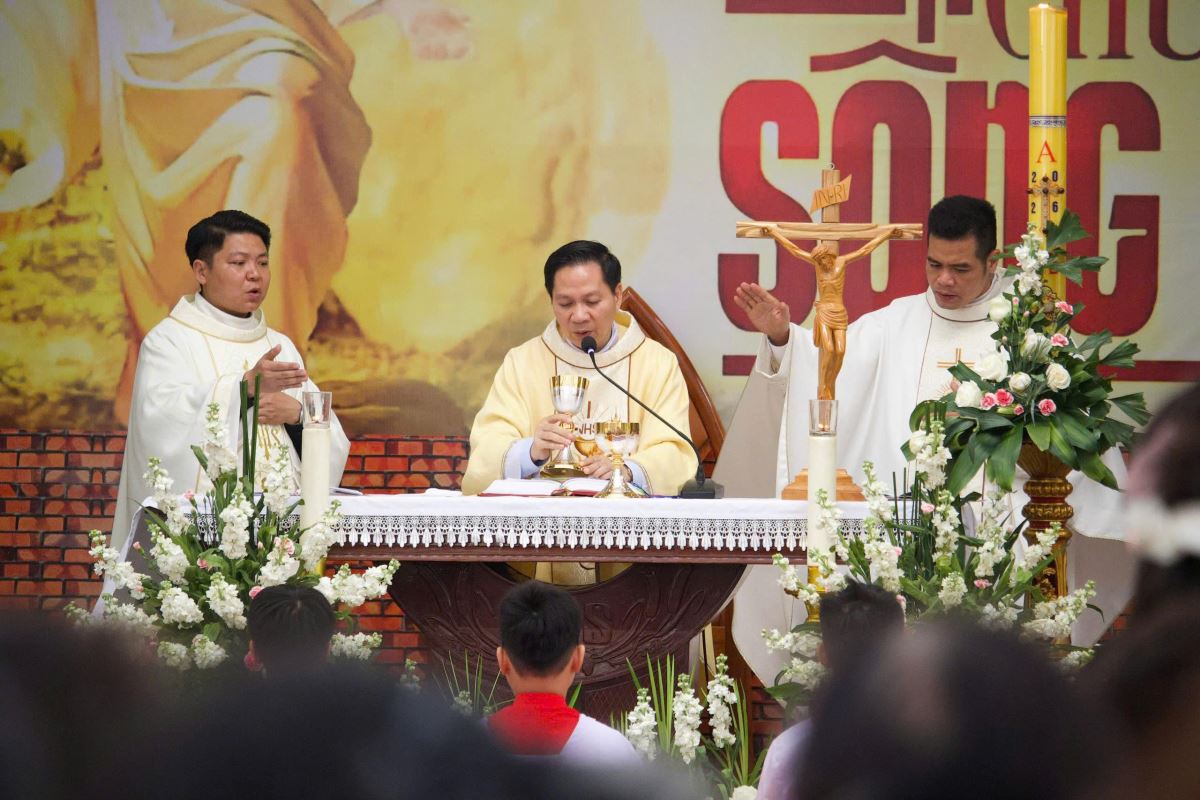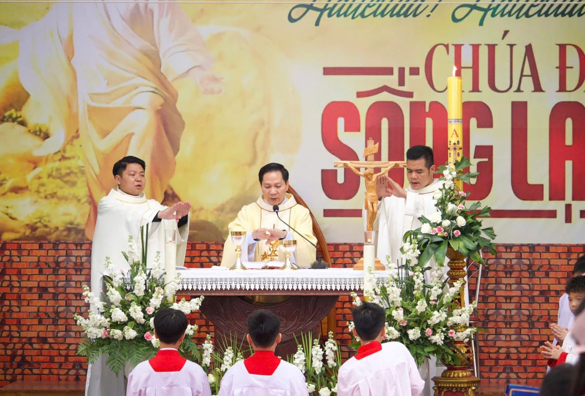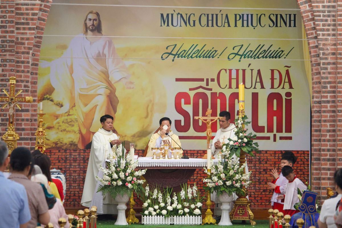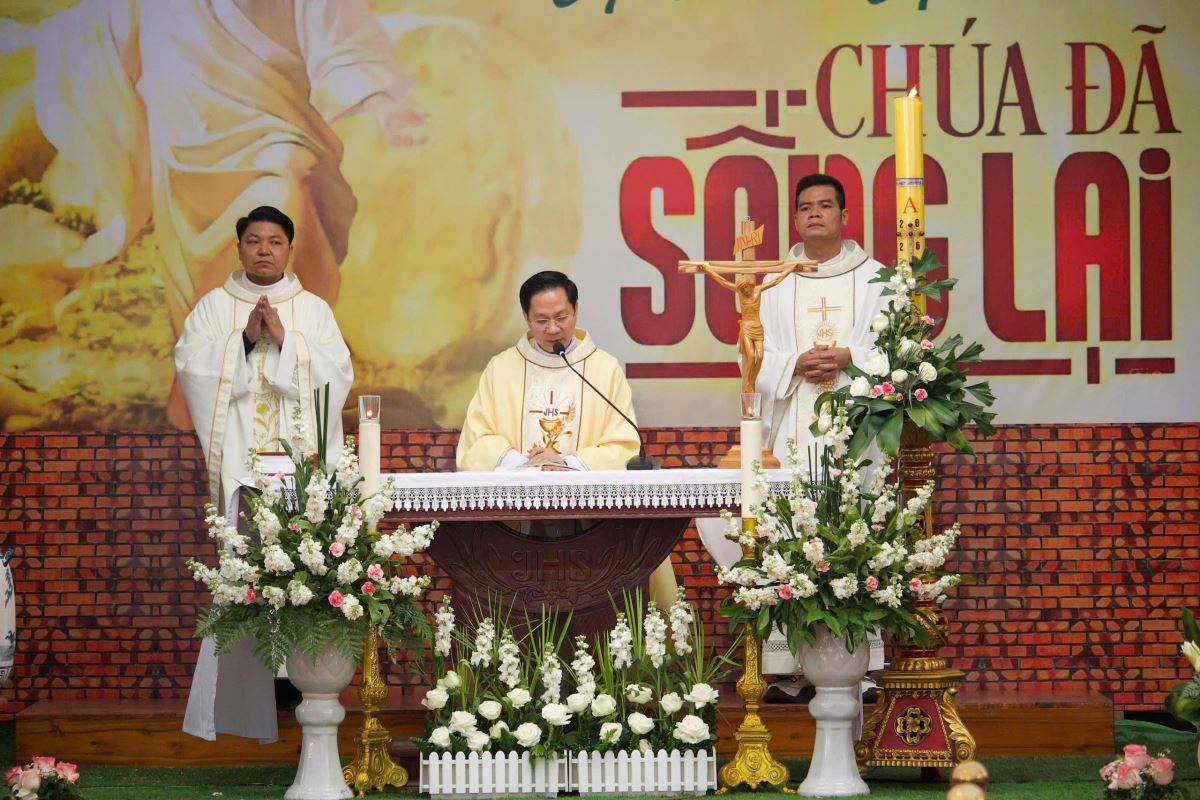 Tiếp đó là Thánh lễ Mừng Chúa Phục Sinh được cử hành cách sốt sắng.