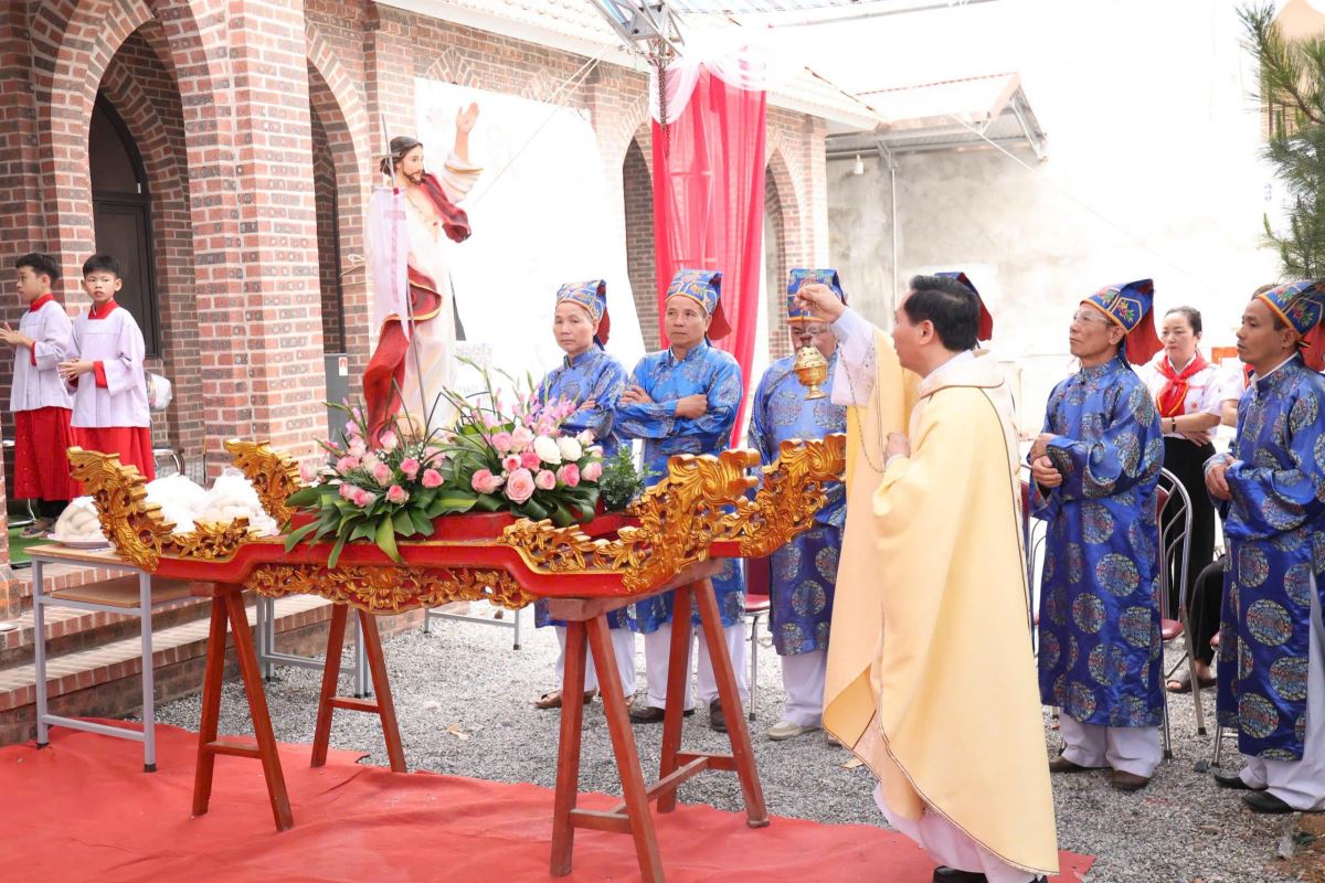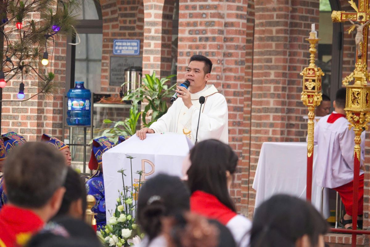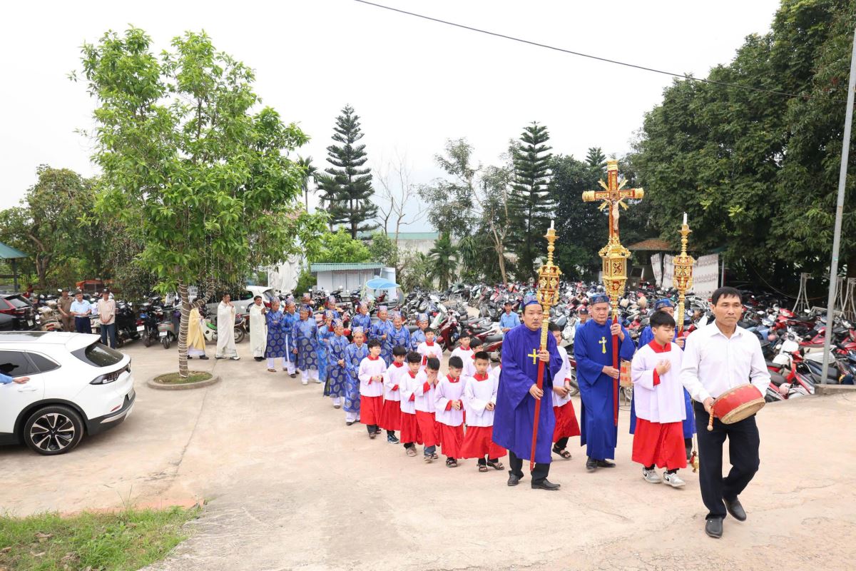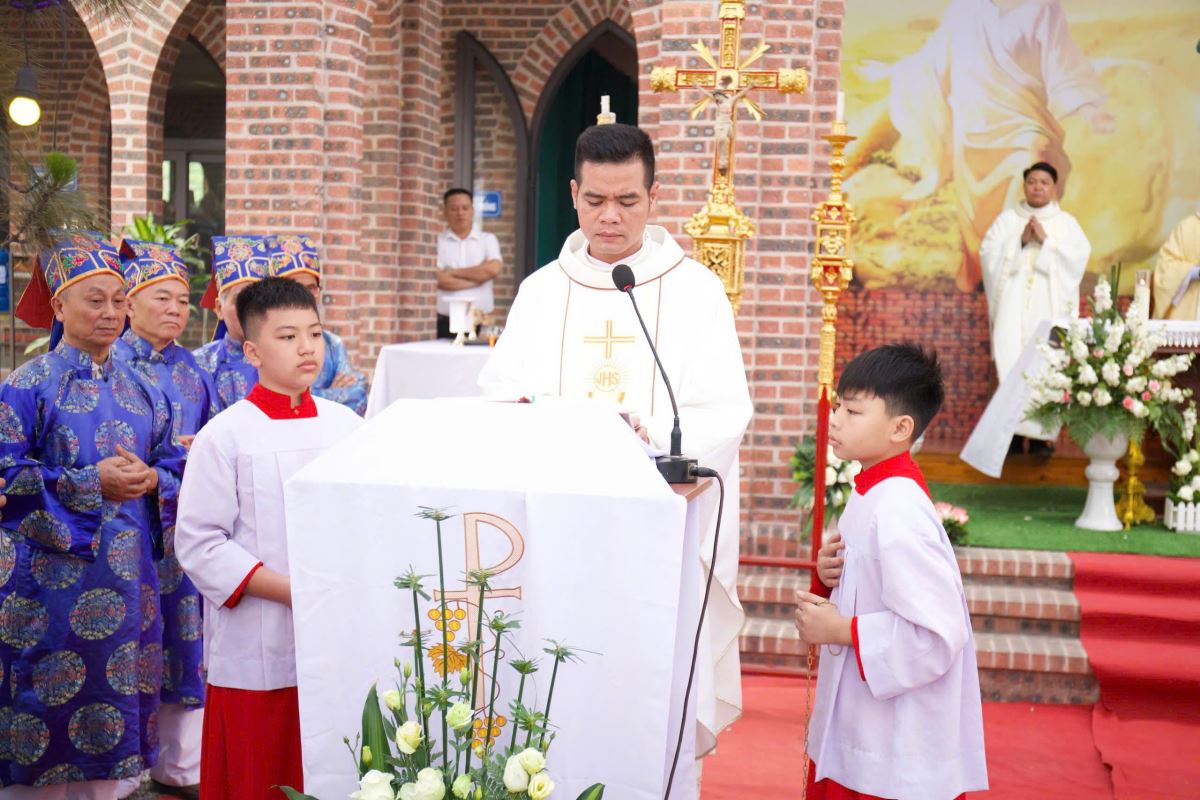 Thánh lễ do cha xứ Giuse Nguyễn Viết Hiệp chủ tế, đồng tế với ngài có cha phó Phêrô Nguyễn Xuân Điệp và cha khách Giuse Nguyễn Văn Quân- Dòng Thừa Sai Tôi Tớ Lời Chúa, cùng sự hiện diện đông đảo giáo dân trong giáo xứ.