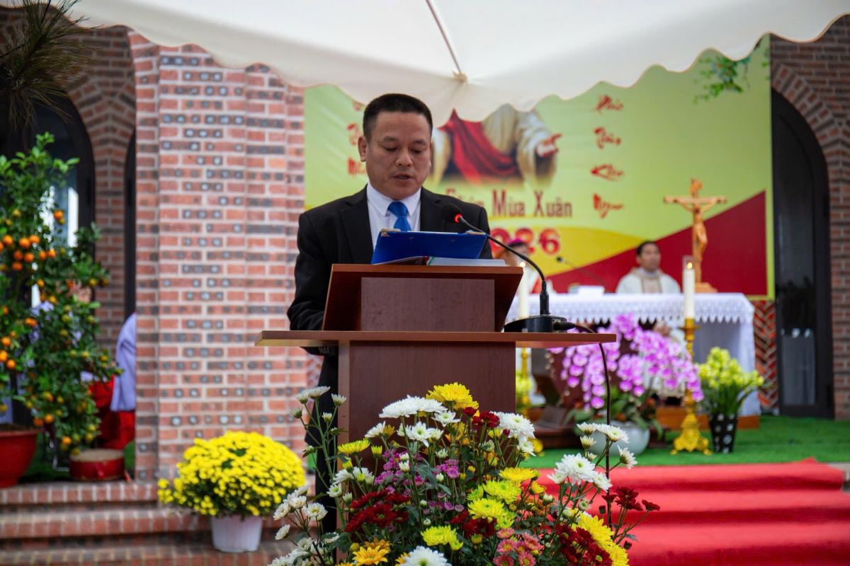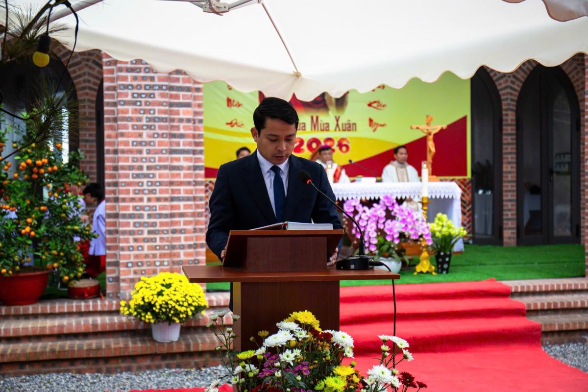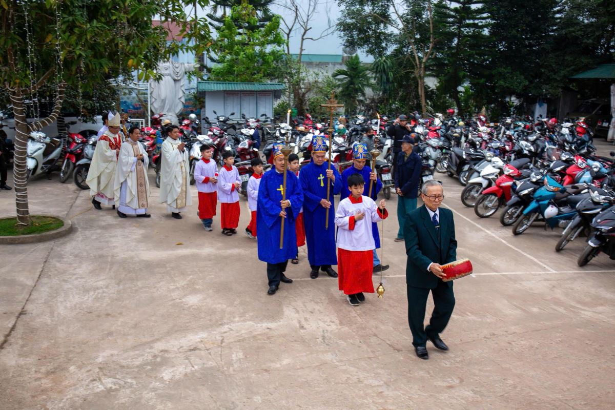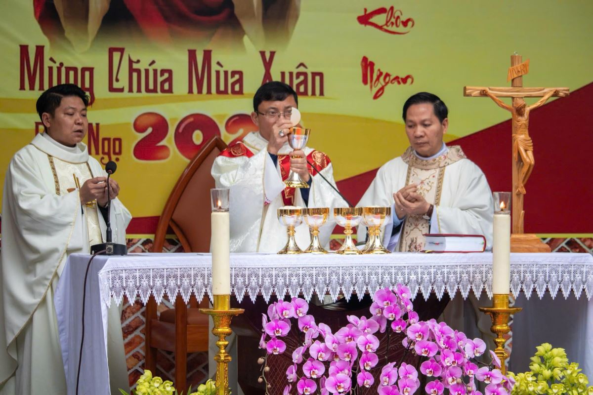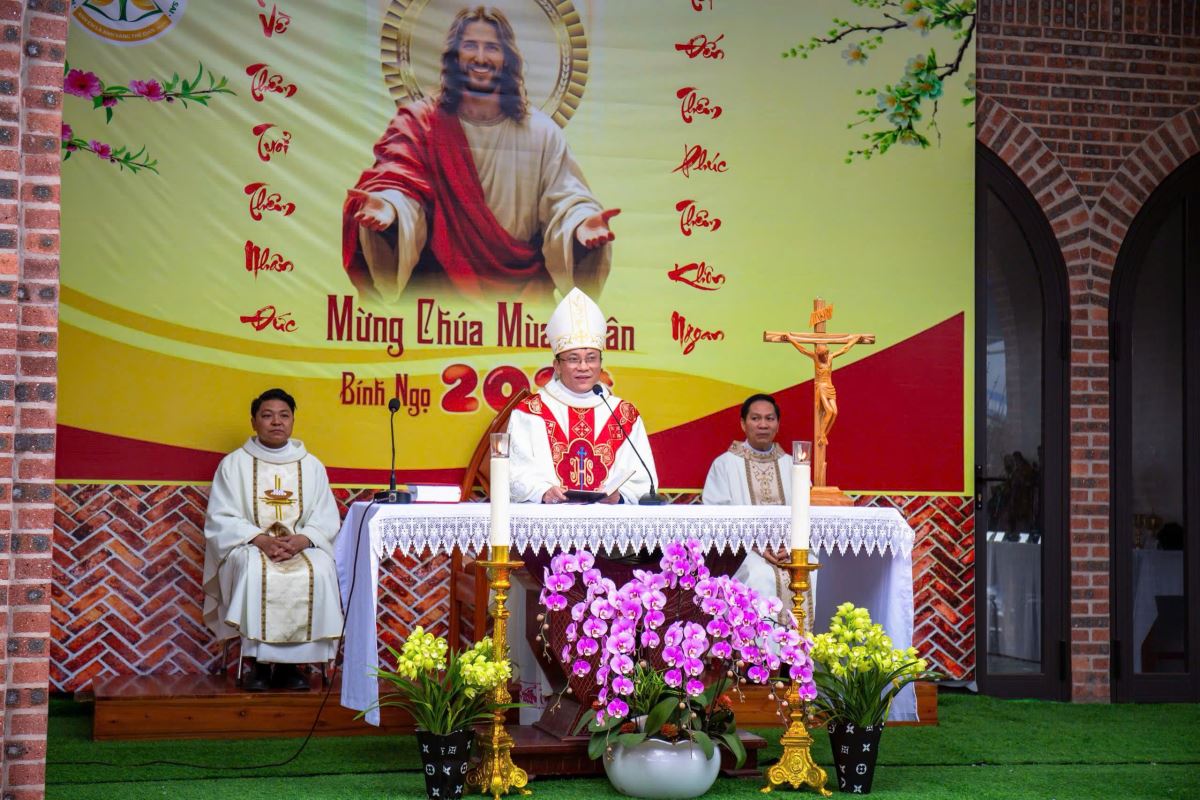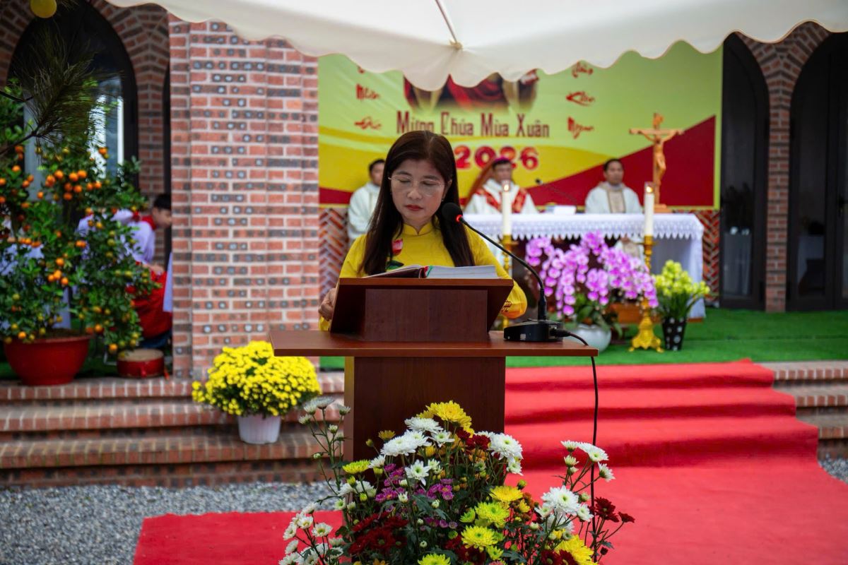 Thánh lễ do Đức cha Phụ tá Phaolô Nguyễn Quang Đĩnh chủ tế. Đồng tế với ngài có Cha xứ Giuse Nguyễn Viết Hiệp và Cha phó Phêrô Nguyễn Xuân Điệp, cùng sự hiện diện đông đảo của cộng đoàn tín hữu trong và ngoài giáo xứ. Trong bầu khí linh thiêng và sốt sắng của những ngày đầu xuân, mọi người cùng dâng lên Thiên Chúa lời tạ ơn vì muôn hồng ân năm cũ, đồng thời khiêm tốn phó dâng năm mới với biết bao dự định, ước mong và thao thức.