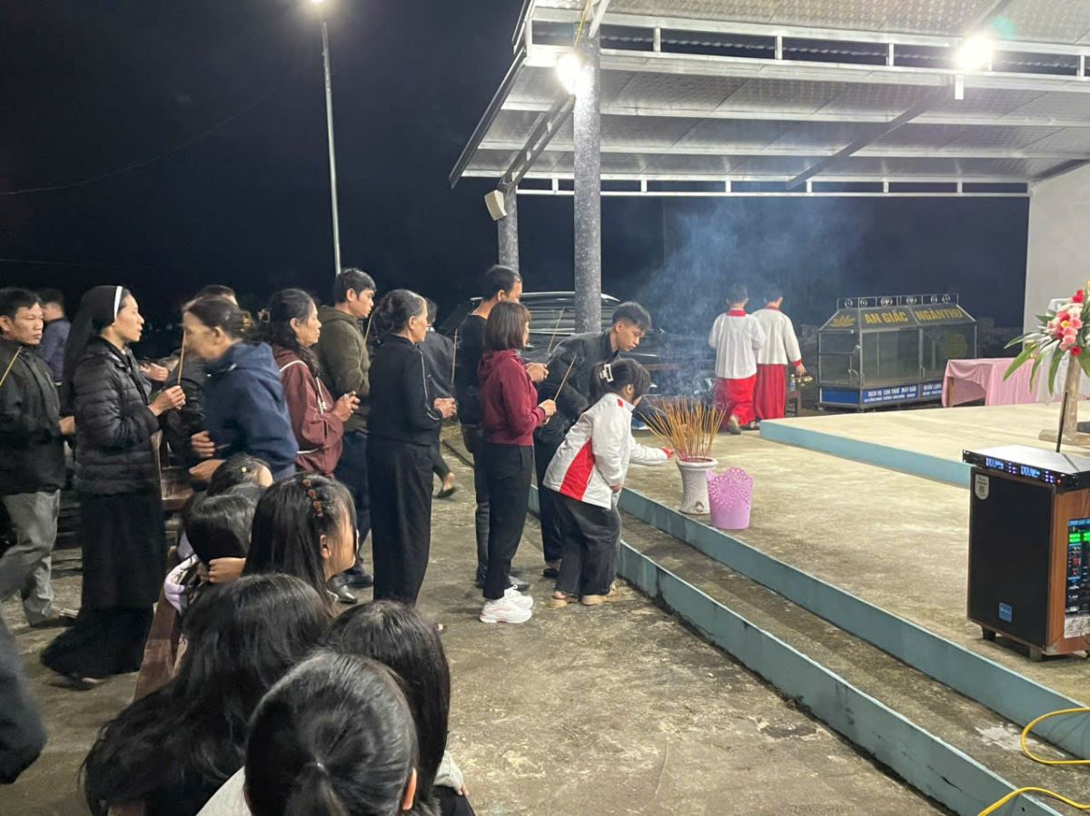 Đúng 19g30, cộng đoàn hiện diện trang nghiêm tiến lên thắp hương trước bàn thờ Chúa. Sau đó, cha xứ Giuse chính thức cử hành Thánh lễ.