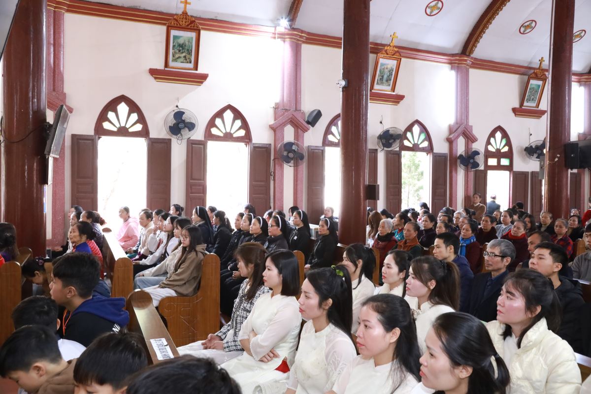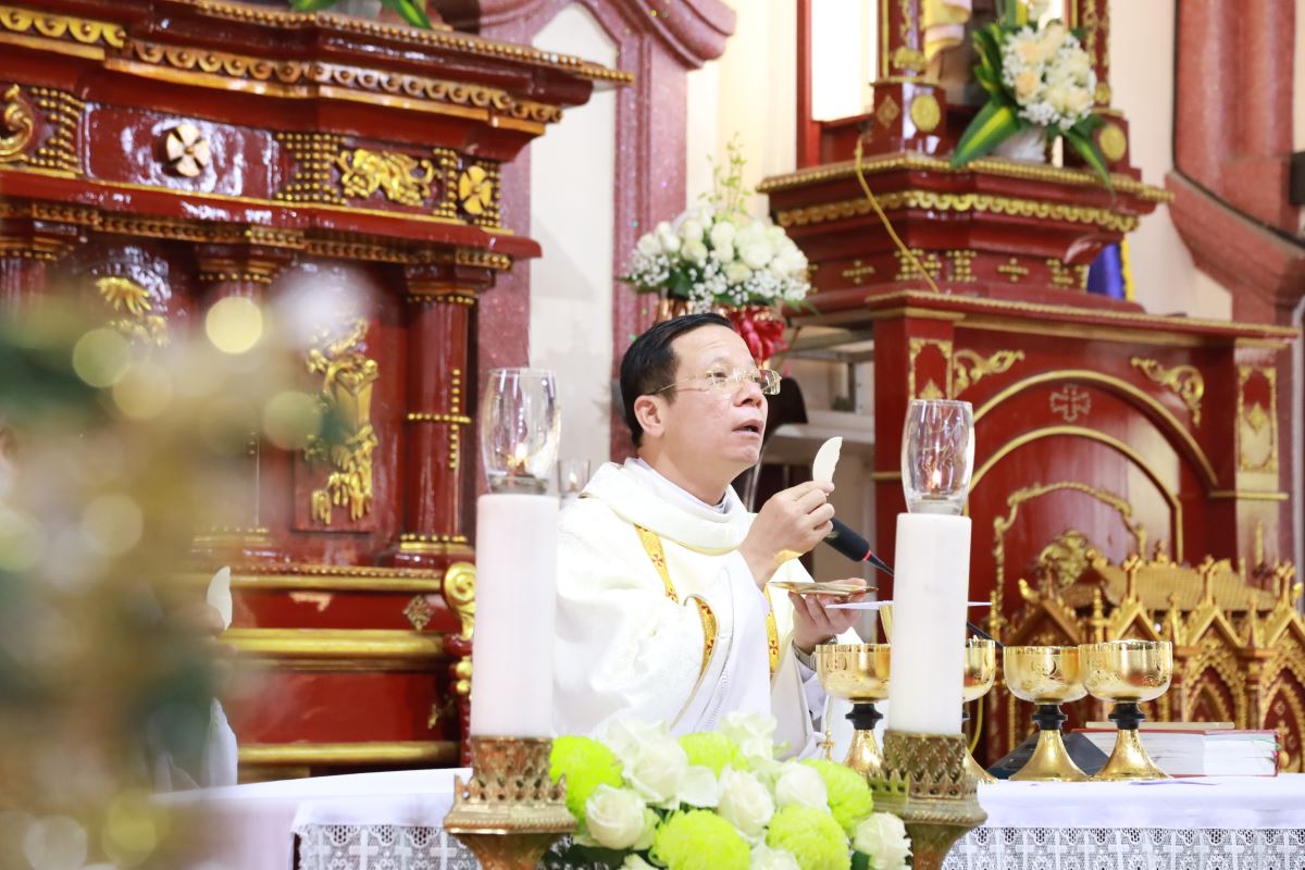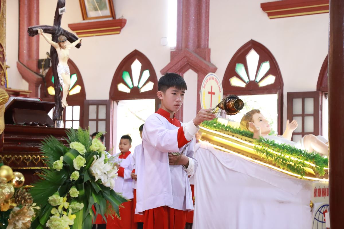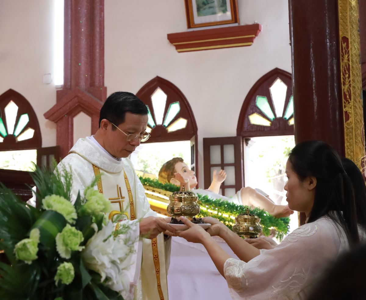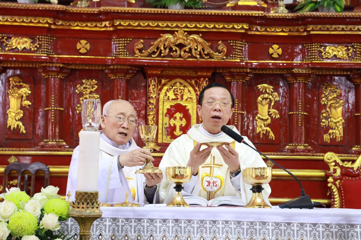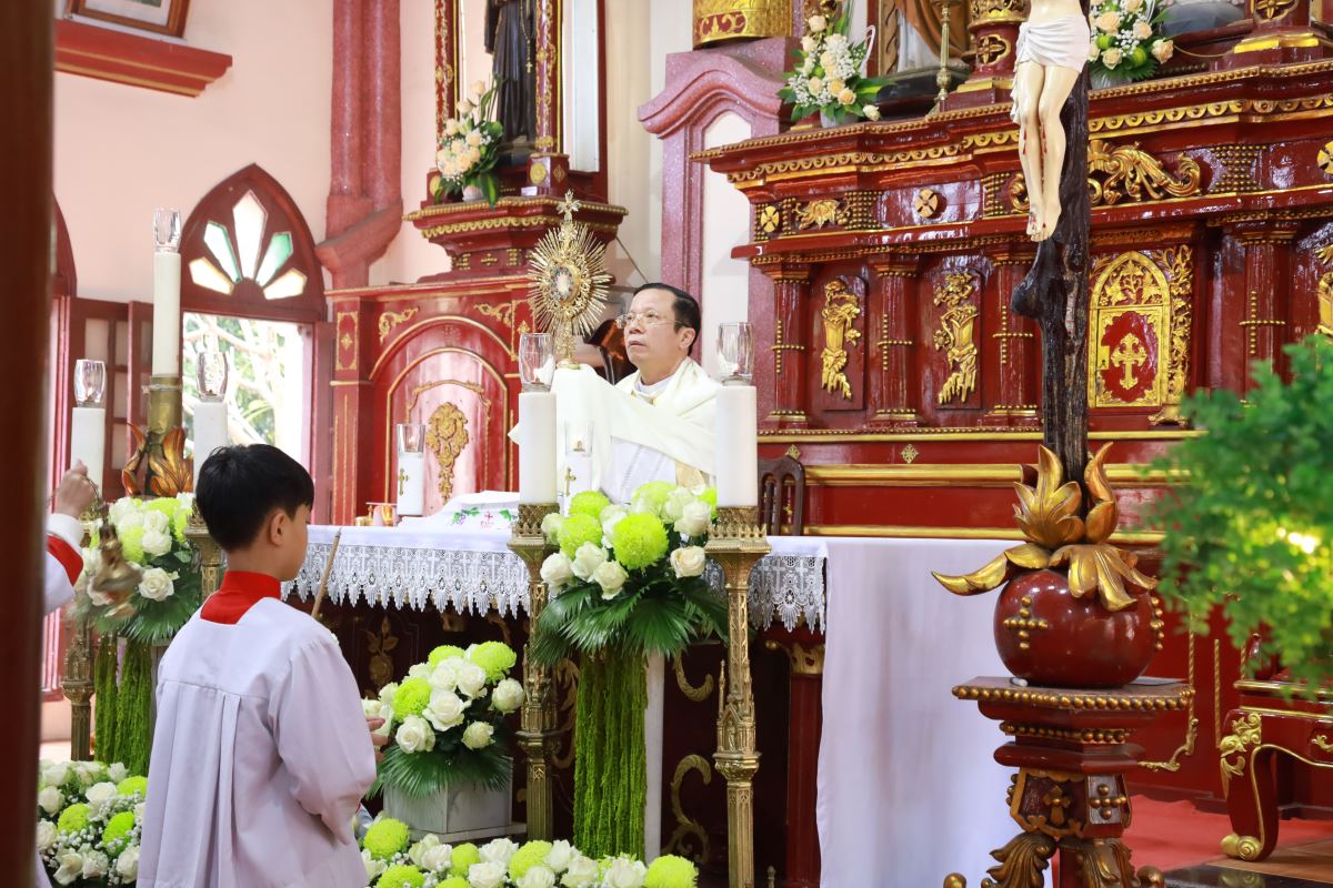Đỉnh cao của ngày chầu là Thánh lễ đồng tế được cử hành vào lúc 09g45. Cha xứ Giuse Nguyễn Trọng Dưỡng chủ tế Thánh lễ; đồng tế với ngài có cha cố Antôn Maria Dương Phú Oanh. Hiệp dâng Thánh lễ có quý dì, quý ban hành giáo, các hội đoàn và đông đảo bà con giáo dân trong và ngoài giáo xứ, cùng quy tụ trong tâm tình tạ ơn và hiệp nhất.