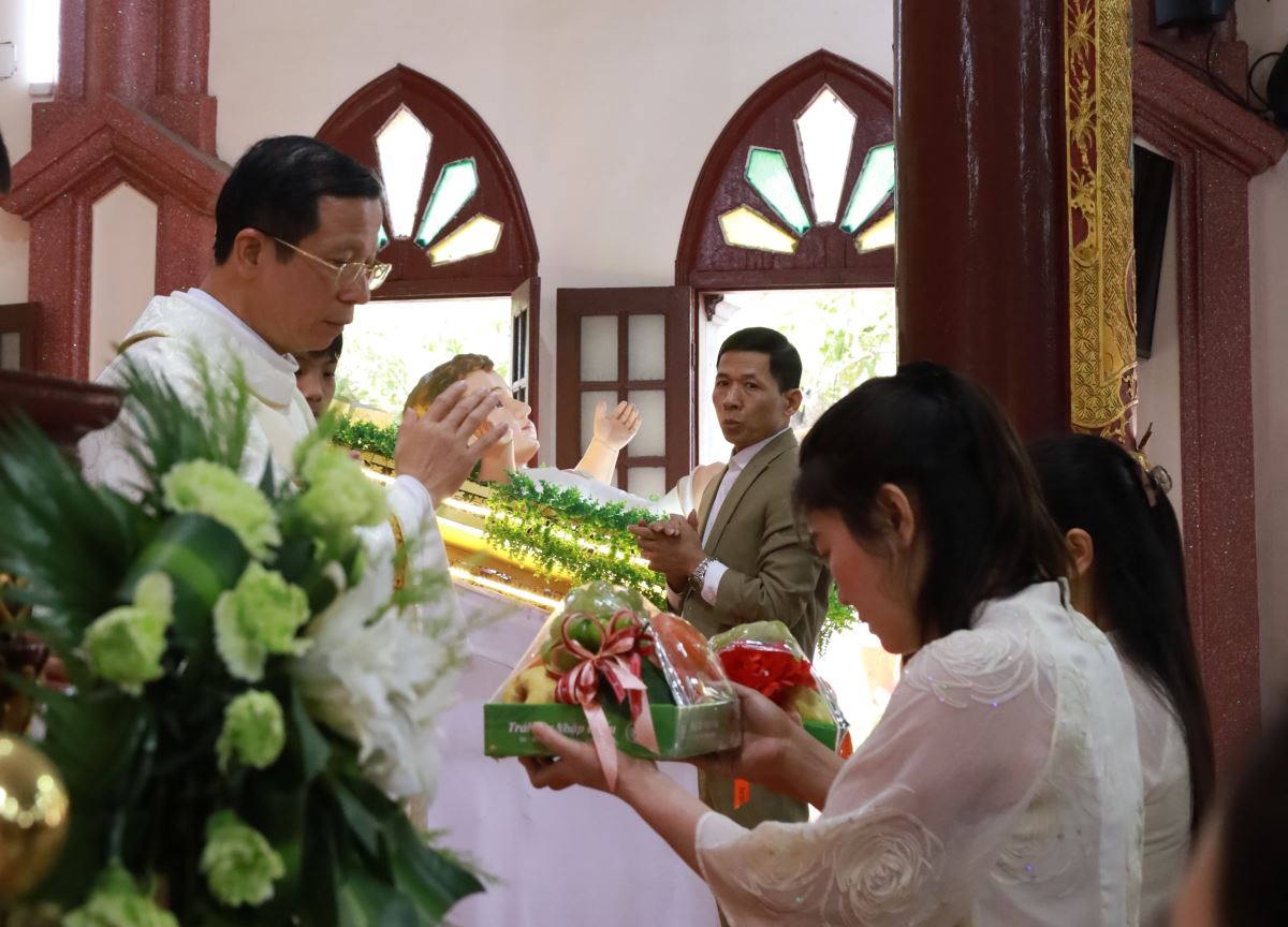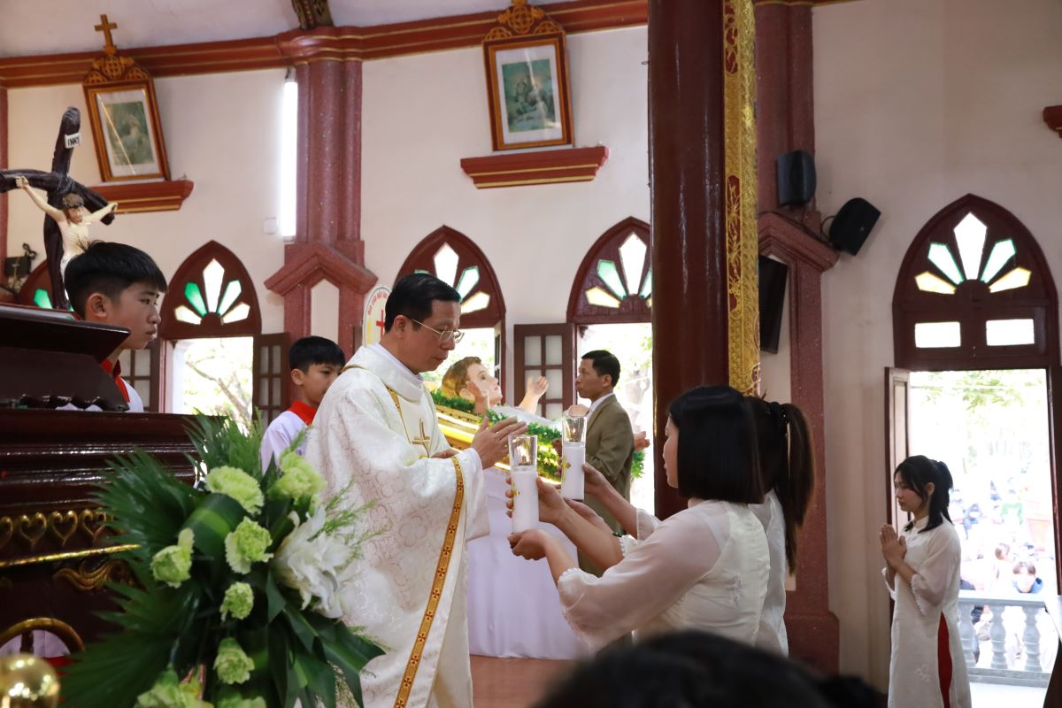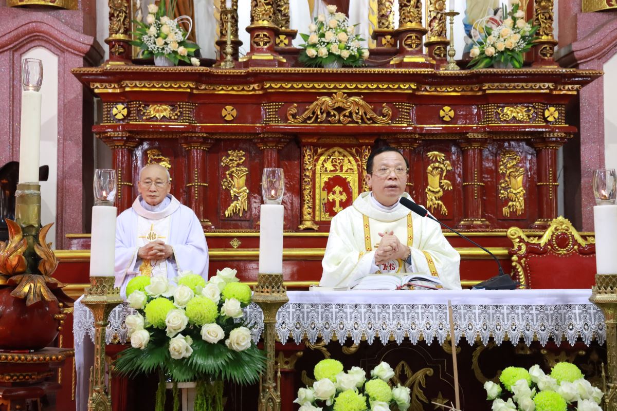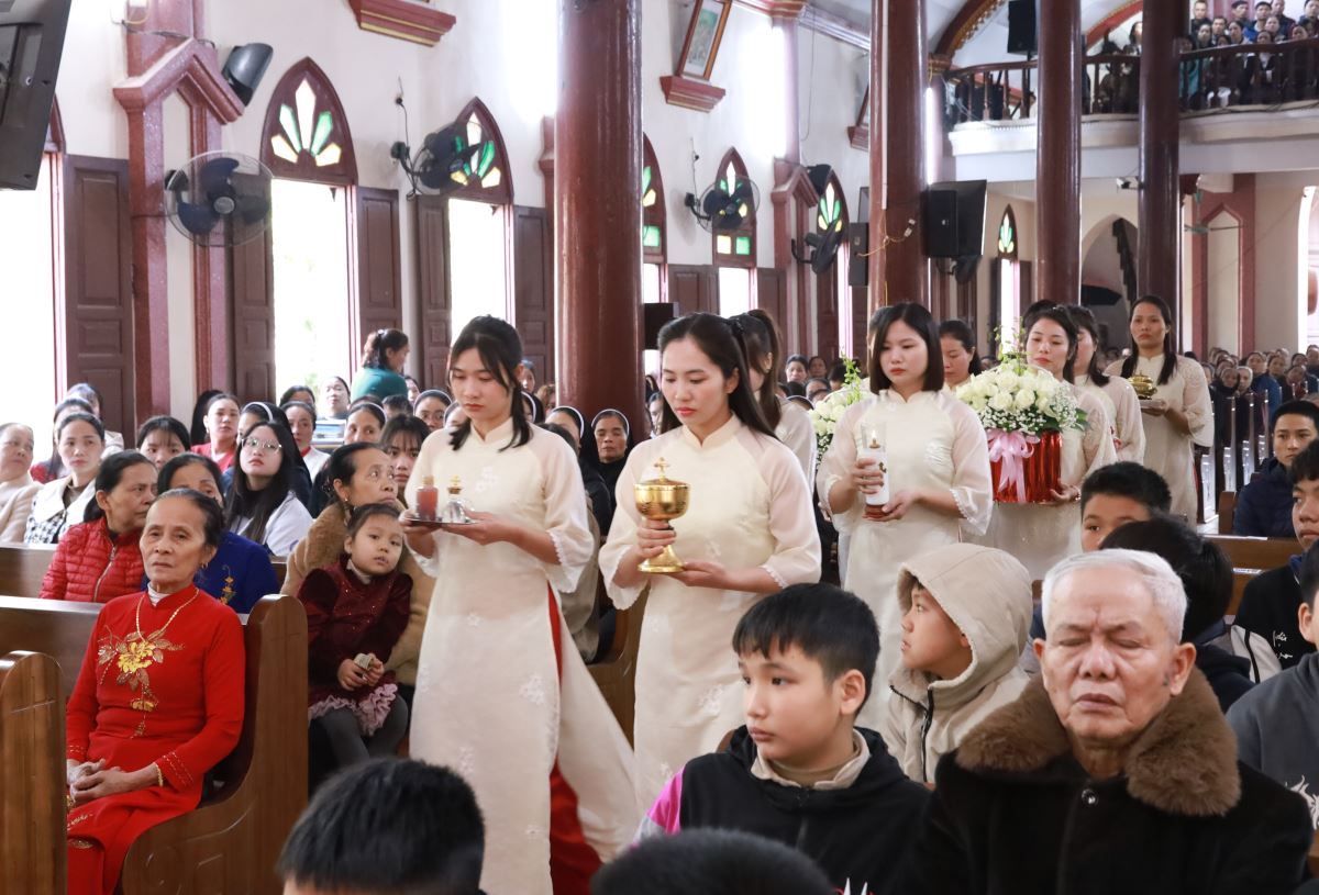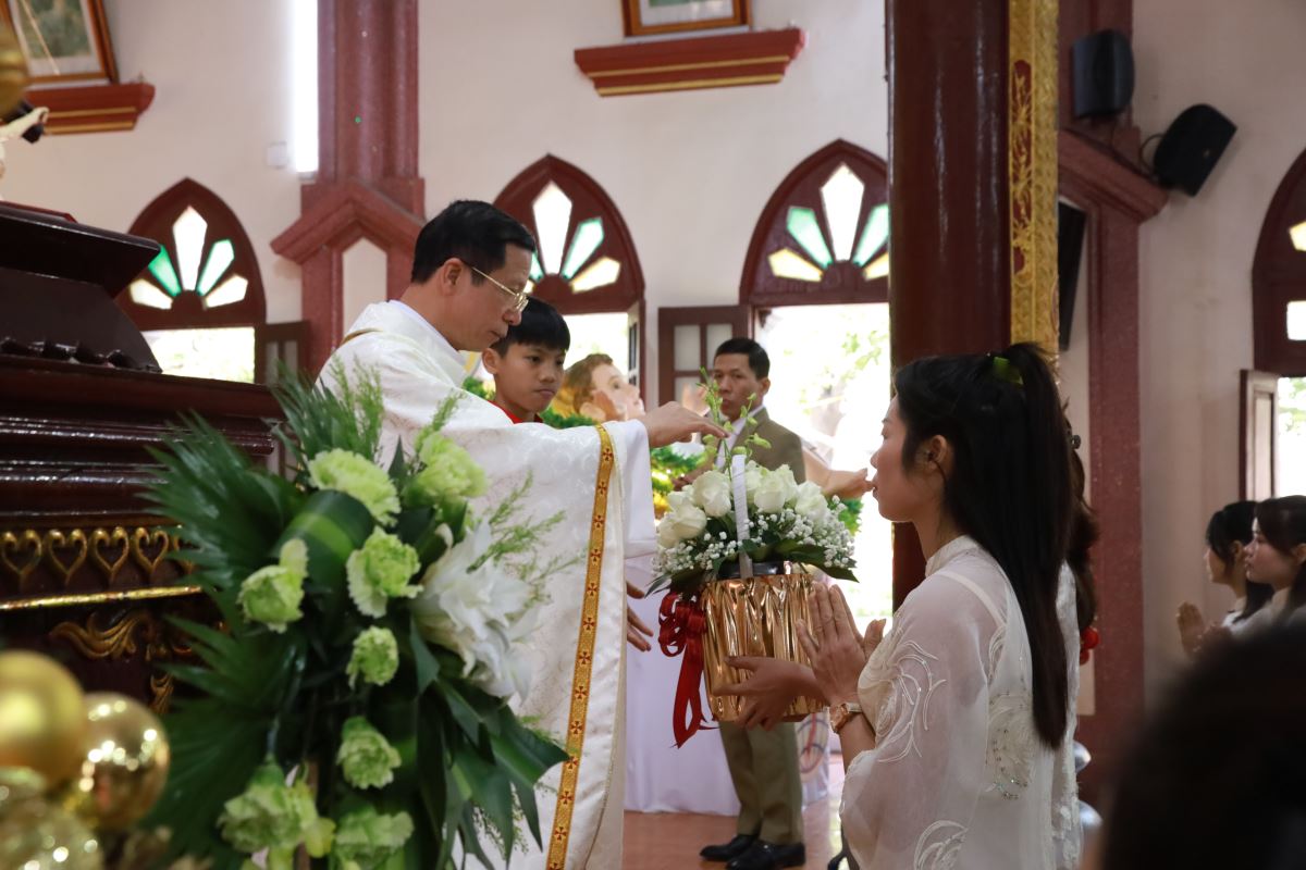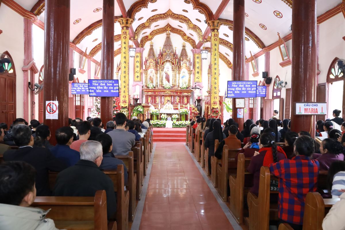 Đỉnh cao của ngày chầu là Thánh lễ đồng tế được cử hành vào lúc 09g45. Cha xứ Giuse Nguyễn Trọng Dưỡng chủ tế Thánh lễ; đồng tế với ngài có cha cố Antôn Maria Dương Phú Oanh. Hiệp dâng Thánh lễ có quý dì, quý ban hành giáo, các hội đoàn và đông đảo bà con giáo dân trong và ngoài giáo xứ, cùng quy tụ trong tâm tình tạ ơn và hiệp nhất.