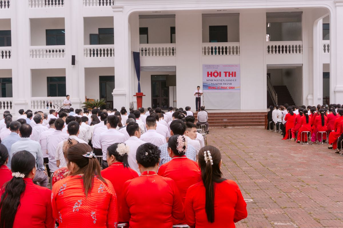 Các thí sinh sau đó trở về vị trí, bước vào phần thi chính thức trong bầu khí nghiêm túc và trật tự. Theo tổng hợp từ Ban Tổ chức, thành phần tham gia năm nay đa dạng về độ tuổi, trong đó các lớp đại nam, đại nữ (là nhóm tuổi trẻ, đang trong độ tuổi lao động) chiếm tỷ lệ lớn. Đây là tín hiệu tích cực, cho thấy các thành viên không chỉ tích cực trong đời sống xã hội mà còn ý thức học hỏi, gắn bó với đời sống đức tin. Bên cạnh đó, hội thi ghi nhận sự hiện diện của các cụ cao niên và các thành phần giới trẻ, tạo nên sự nối kết giữa các thế hệ trong cộng đoàn.