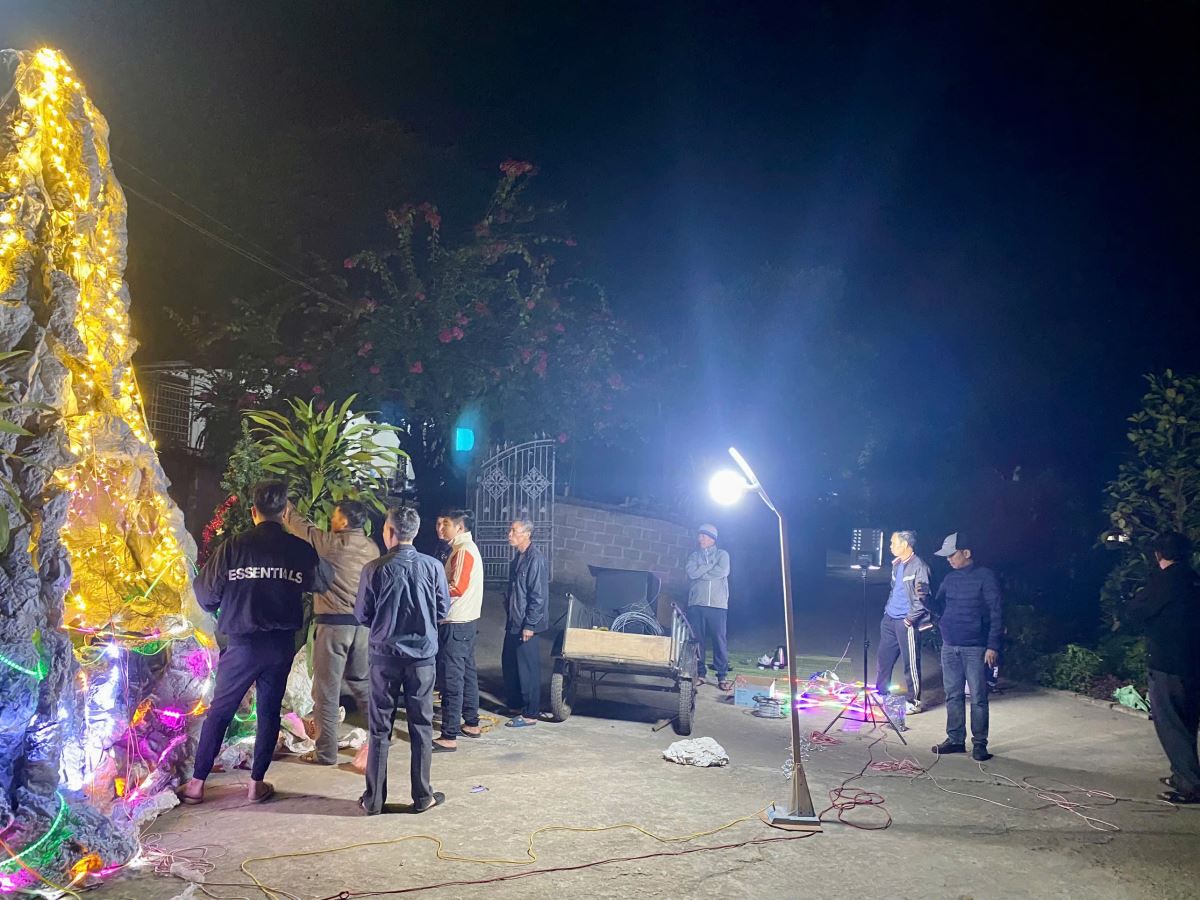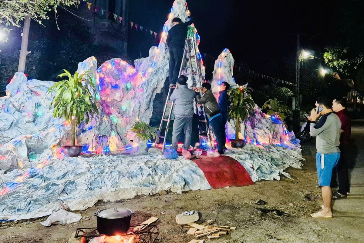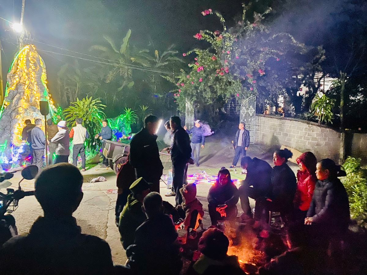 Mỗi buổi tối, sau những giờ lao động vất vả, bà con giáo dân lại cùng nhau tụ họp: người chuẩn bị khung, người mang bao tải, người mắc đèn… ai nấy đều hăng say với phần việc của mình. Bên bếp lửa bập bùng trong cái lạnh mùa đông, những câu chuyện cuộc sống được sẻ chia, những nụ cười rạng rỡ sáng lên trong ánh lửa, và niềm vui cộng đoàn cứ thế lớn dần, lan tỏa sự ấm áp nơi mỗi người.