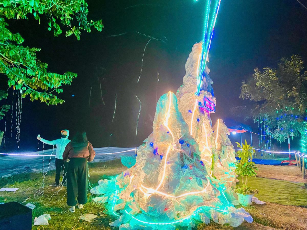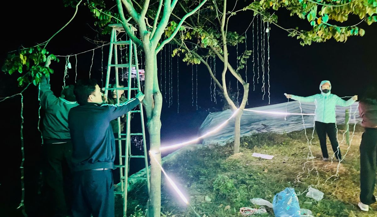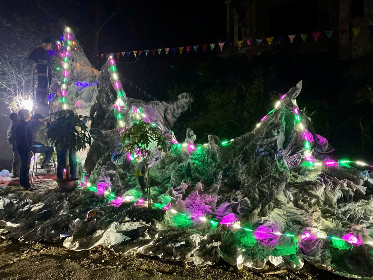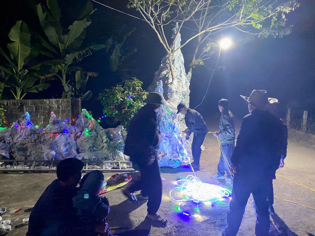 Mỗi buổi tối, sau những giờ lao động vất vả, bà con giáo dân lại cùng nhau tụ họp: người chuẩn bị khung, người mang bao tải, người mắc đèn… ai nấy đều hăng say với phần việc của mình. Bên bếp lửa bập bùng trong cái lạnh mùa đông, những câu chuyện cuộc sống được sẻ chia, những nụ cười rạng rỡ sáng lên trong ánh lửa, và niềm vui cộng đoàn cứ thế lớn dần, lan tỏa sự ấm áp nơi mỗi người.