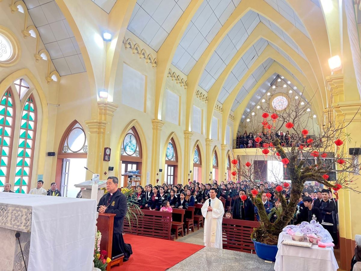 Trong bầu khí rộn ràng và hân hoan của những ngày cuối năm, Chuẩn xứ Hầu Thào và cha Đặc trách Giuse Hồ Chí Nhân (Nguyên), OMI. tràn ngập niềm vui khi long trọng đón tiếp Đức Cha Đaminh Hoàng Minh Tiến – Giám mục Giáo phận Hưng Hóa về thăm mục vụ và chủ sự thánh lễ. Sự hiện diện của vị chủ chăn nơi vùng cao này là dấu chỉ sống động của tình yêu mục tử, của Hội Thánh luôn lên đường và ở lại với đoàn con mình, đặc biệt là những cộng đoàn còn nhiều khó khăn nơi miền sơn cước.