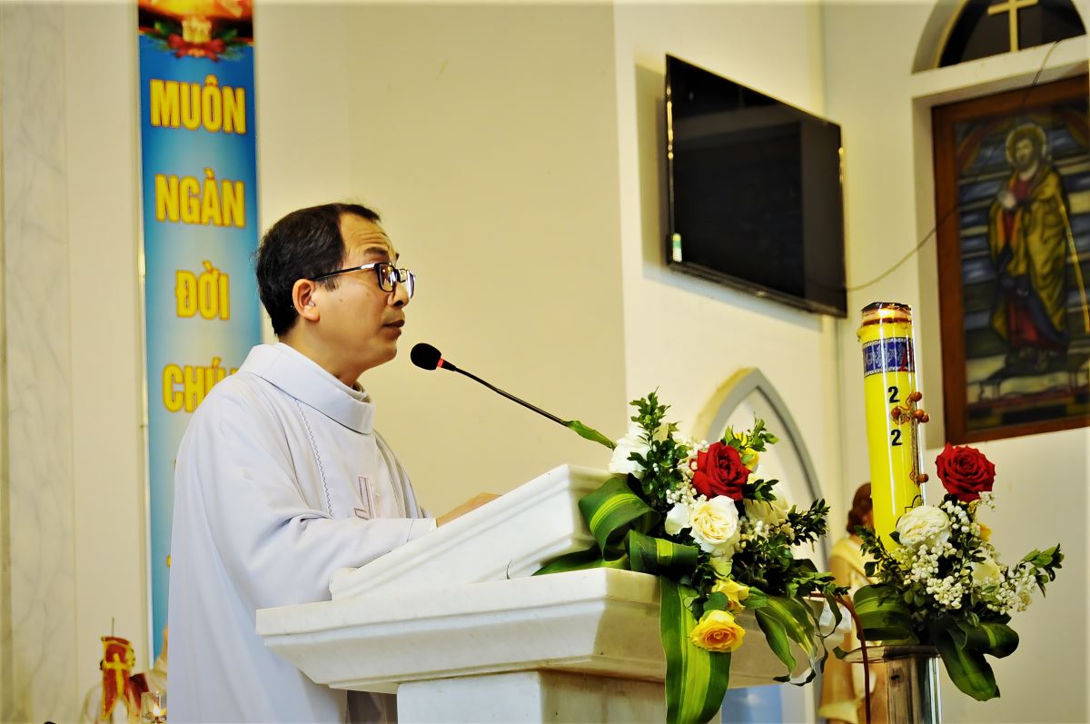 Trong phần mở đầu Thánh lễ Chúa nhật IV Phục Sinh, cha chủ tế Vinh Sơn Vũ Văn Nguyện đã gửi lời chúc mừng tới toàn thể Hội Doanh Trí nhân ngày mừng Quan thầy, đồng thời giới thiệu Hội Doanh Trí là nơi quy tụ những người có tinh thần trách nhiệm, biết dùng khả năng và lòng yêu mến để phục vụ Giáo hội và cộng đoàn.