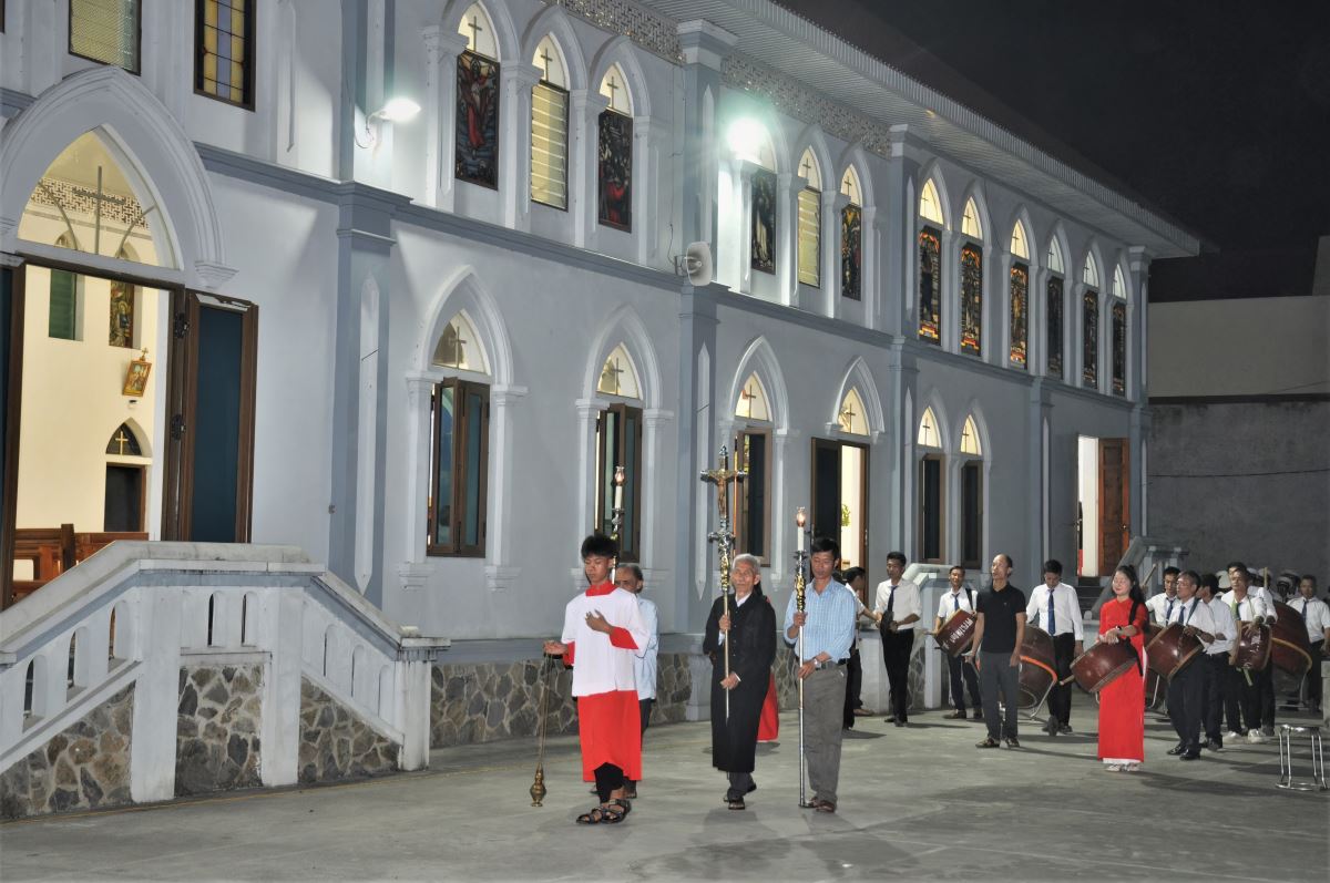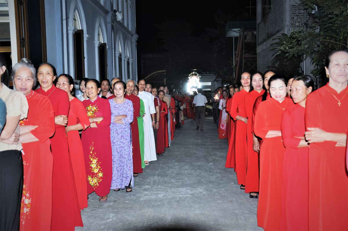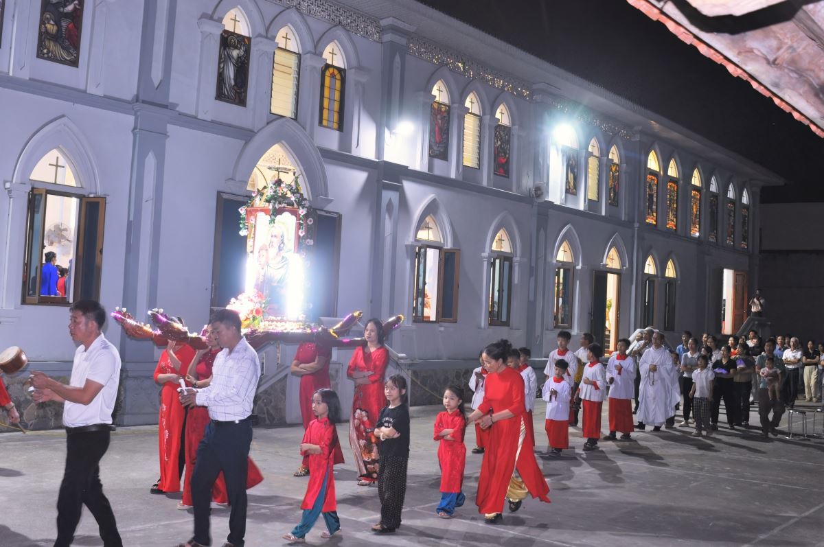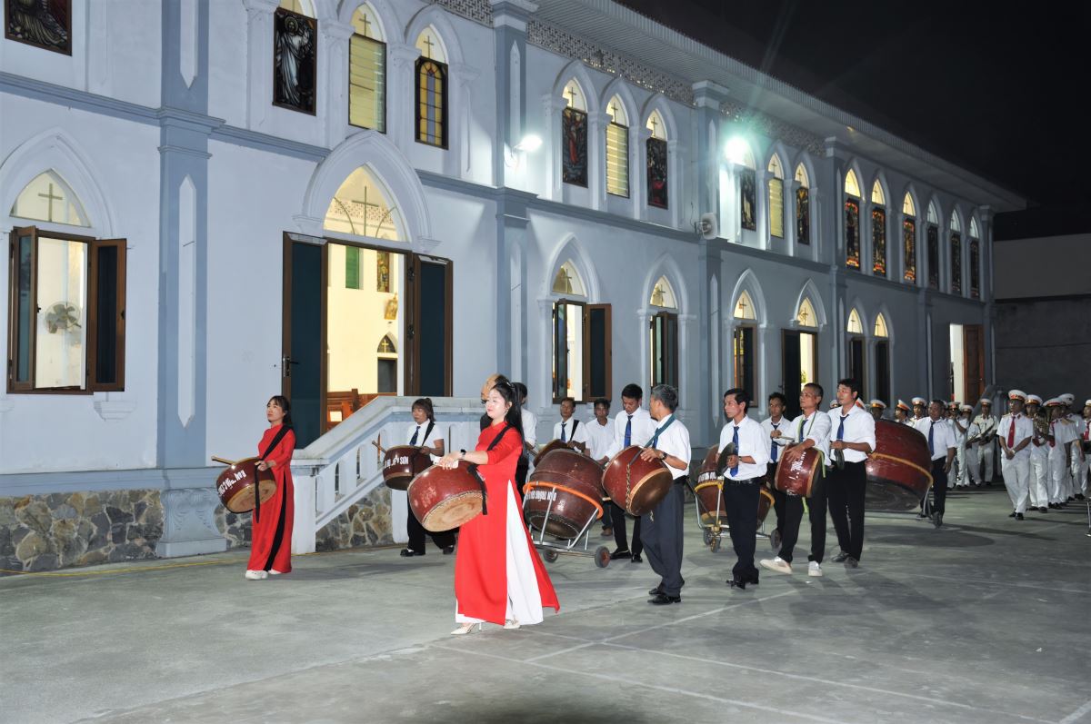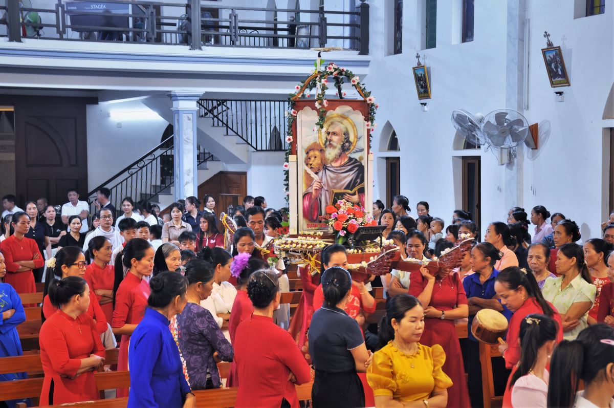 Đúng 19g00, trong bầu khí trang nghiêm và sốt sắng, đoàn rước cung nghinh kiệu thánh Mác-cô diễn ra quanh khuôn viên thánh đường trước khi bước vào Thánh lễ.