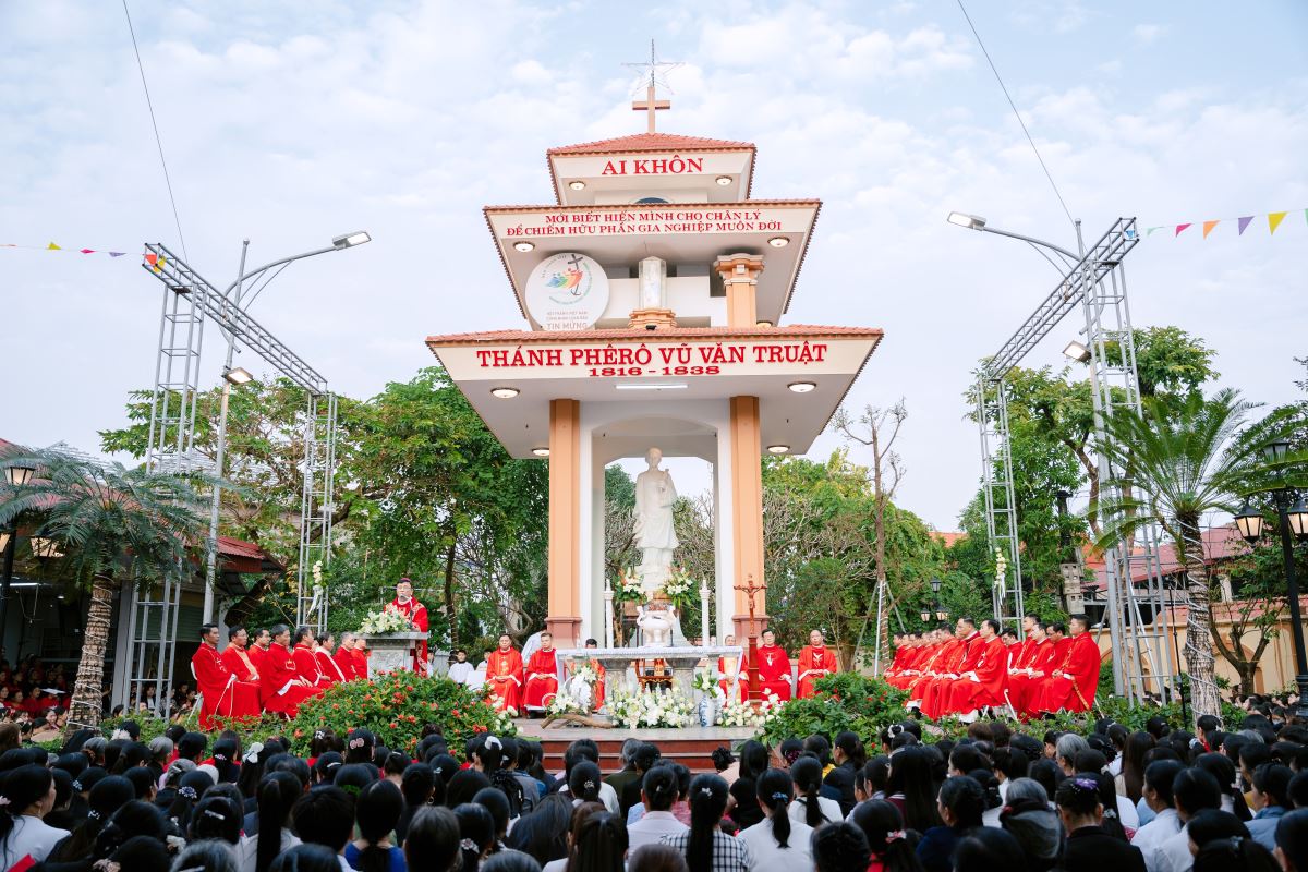 Đỉnh cao của ngày hội là Thánh lễ kính Thánh Phêrô Vũ Văn Truật, được cử hành lúc 16g00, do Đức cha Phaolô Nguyễn Quang Đĩnh chủ tế. Đồng tế với ngài có cha Giuse Nguyễn Văn Úy, Chủ tịch Ủy ban Giáo lý Đức tin, quý cha trong Ban Giáo lý Giáo phận và quý cha thuộc Giáo hạt Đông Nam Phú Thọ. Tham dự Thánh lễ còn có quý thầy, quý tu sĩ và khoảng 8.000 tín hữu.