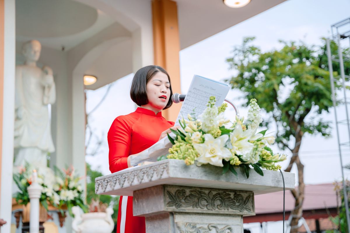 Sau lời nguyện hiệp lễ, cha Giuse Dương Quốc Chí, Phó Chủ tịch UBGLĐT, đại diện bày tỏ tâm tình tri ân quý Đức cha, quý cha, quý tu sĩ và toàn thể cộng đoàn đã luôn quan tâm, đồng hành và nâng đỡ công tác giáo lý của Giáo phận. Cách riêng, cha gửi lời cảm ơn chân thành đến các giáo lý viên, những người đang âm thầm dấn thân và bền bỉ phục vụ trong sứ vụ gieo mầm đức tin nơi các thế hệ trẻ. Cha cũng bày tỏ lòng tri ân đến Giáo hạt và Giáo xứ đăng cai đã chu đáo sắp xếp, tạo điều kiện để ngày hội được diễn ra tốt đẹp và đầy ý nghĩa.
