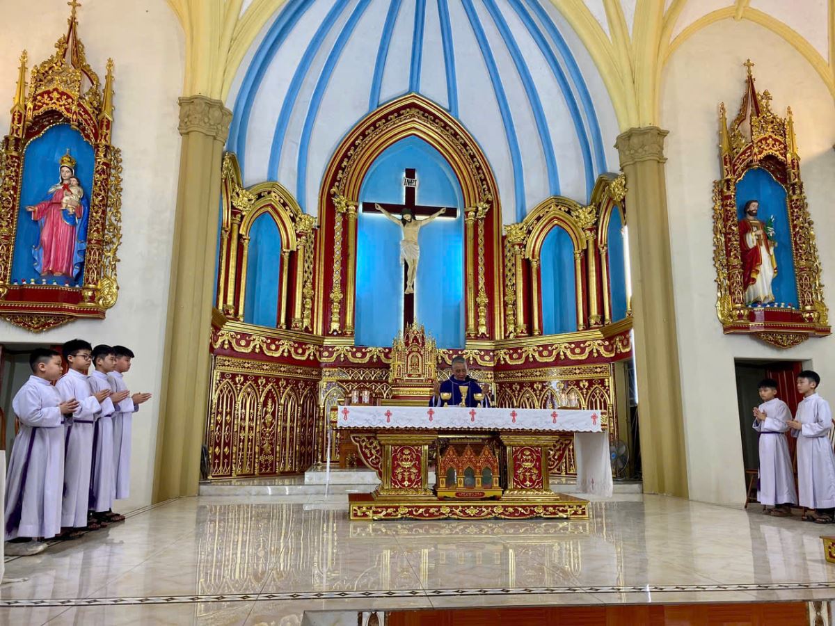 Đến 19g10, Thánh lễ được cử hành do cha xứ Phanxicô Xaviê Nguyễn Văn Thái chủ tế. Ngay đầu Thánh lễ, cha chủ tế mời gọi cộng đoàn ý thức Mùa Chay là mùa chữa lành và mùa biết ơn: con người yếu đuối cần được Thiên Chúa chữa trị, đồng thời việc suy ngắm cuộc Thương Khó giúp mỗi người nhận ra tình yêu cứu độ của Chúa, thêm lòng biết ơn và sống gắn bó với Ngài hơn.